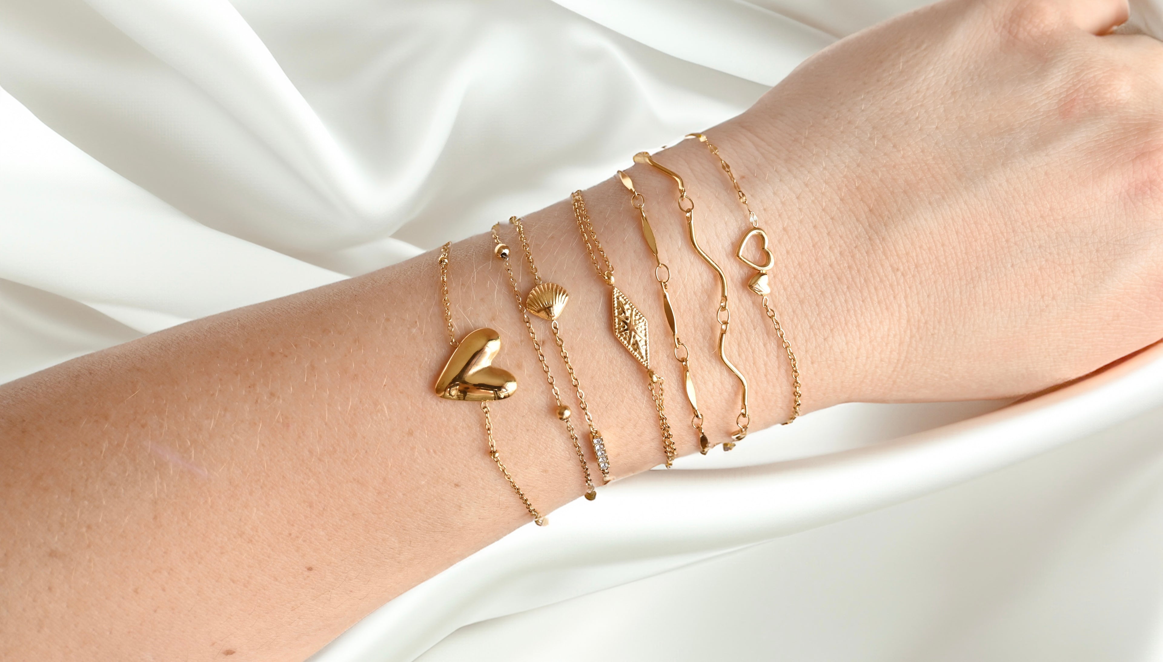Dainty Gold Bracelets, Choice of 9 Styles, Waterproof 18K Gold Plated Stainless Steel Bracelet Stack, 5" to 8"