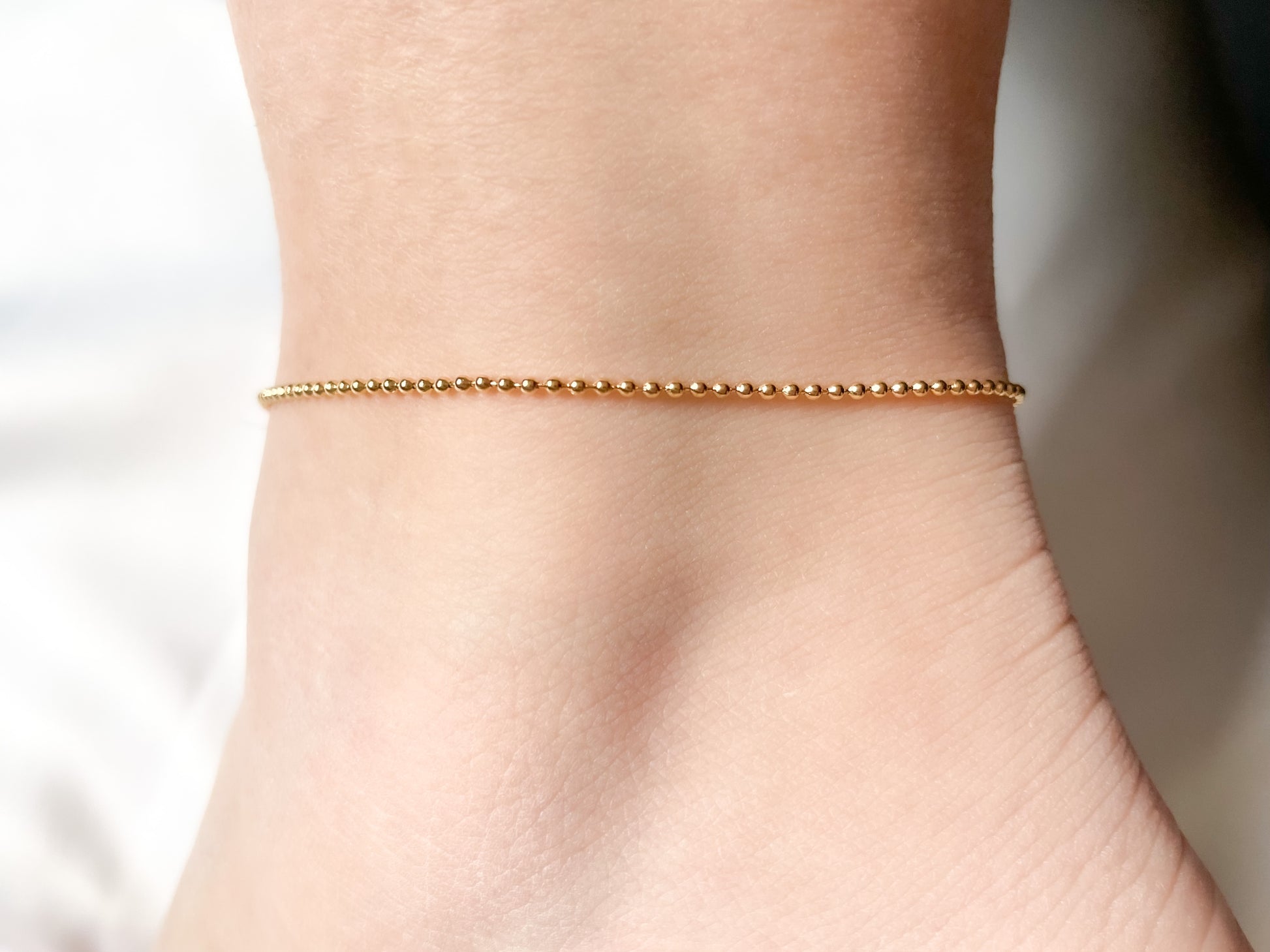 A modern classic design, this simple gold ankle bracelet is a timeless piece. Created in gold plated stainless steel, this thin chain anklet can be personalized with your choice of initial letter and/or tiny heart charms. Perfect summer gift for a loved one. Plus, it is non-tarnish and waterproof.