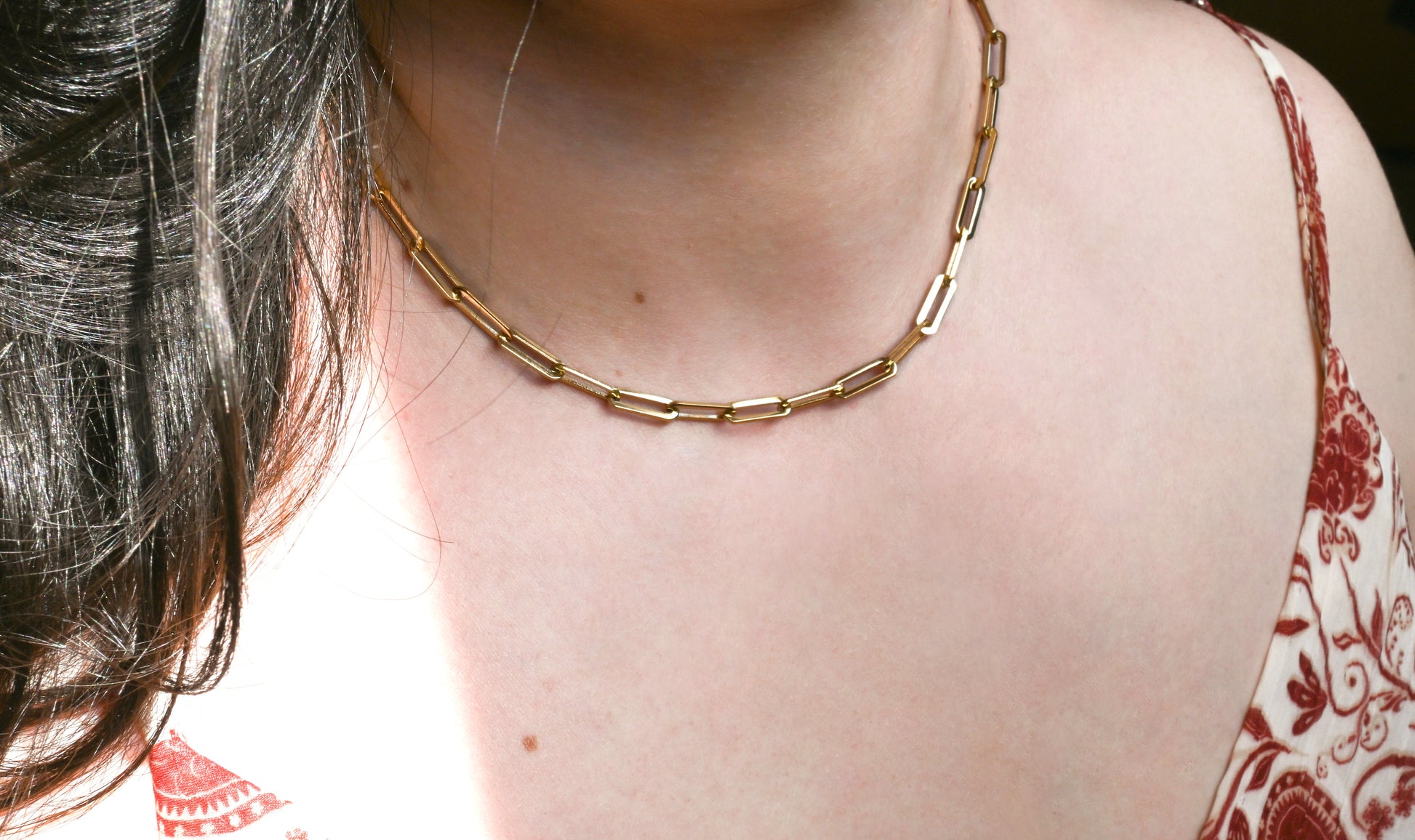 A lovely design perfect for everyday wear or any special occasion! This bold paperclip chain necklace features 4 x16 mm paperclip chain links secured with a lobster claw clasp. Crafted in stainless steel, this chain is waterproof and tarnish resistant. Comes in silver, 18k gold and rose gold finish.