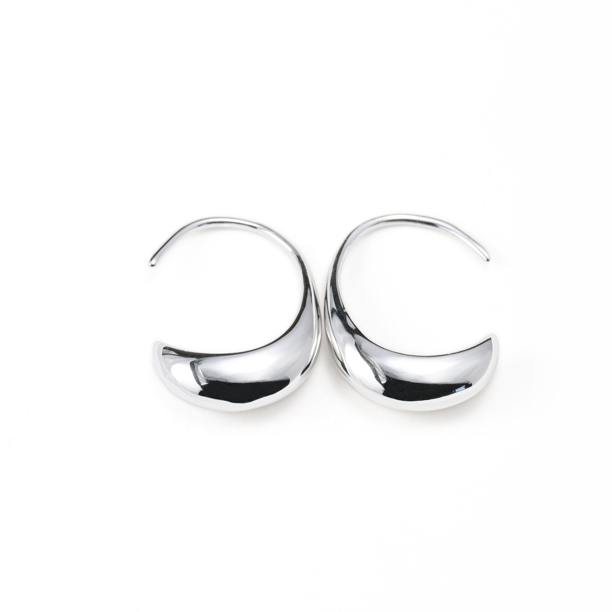 Sleek sterling silver threader tear drop earrings in bold design. Available in silver & gold and two sizes. Versatile statement pieces for any occasion.