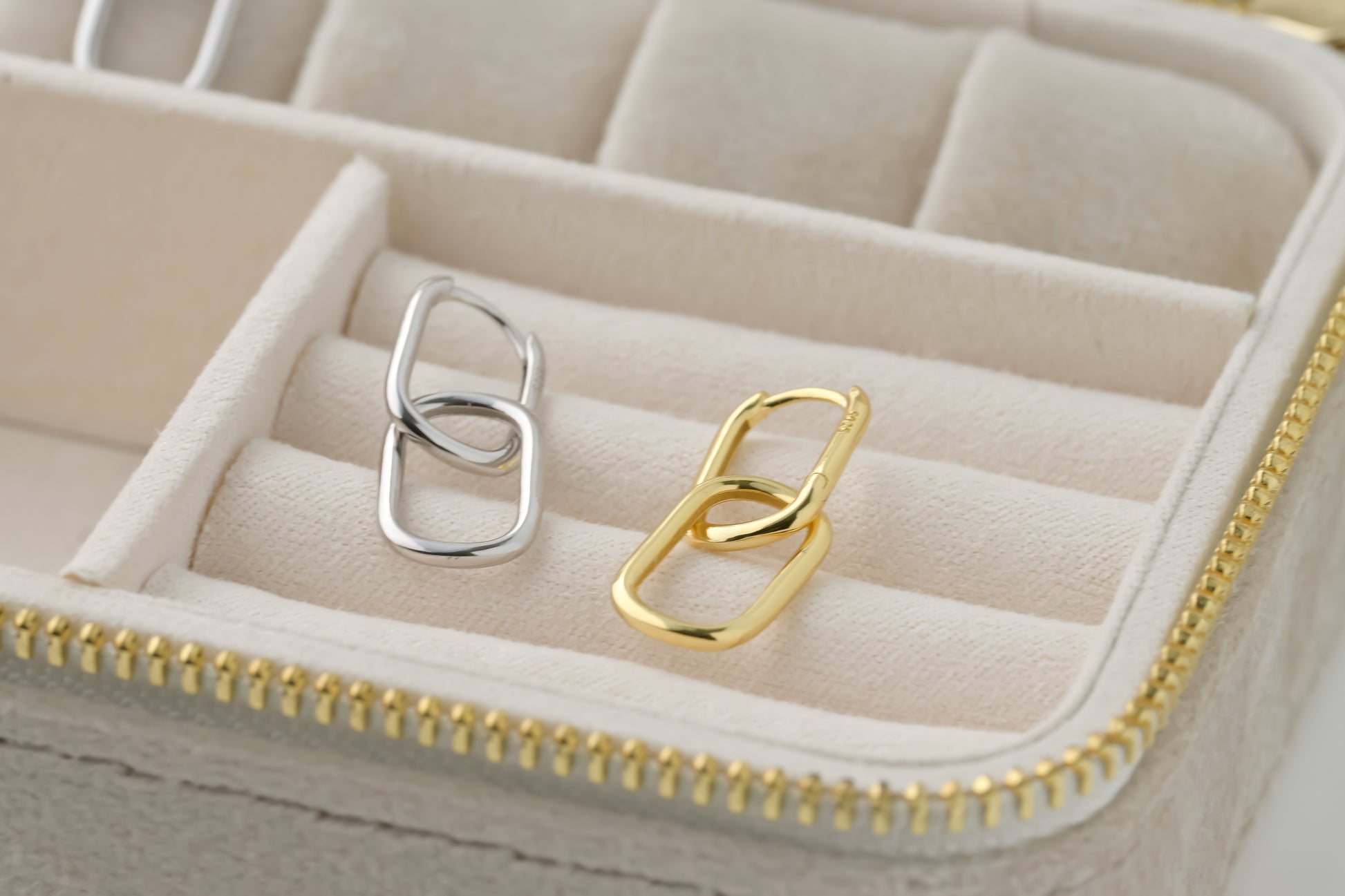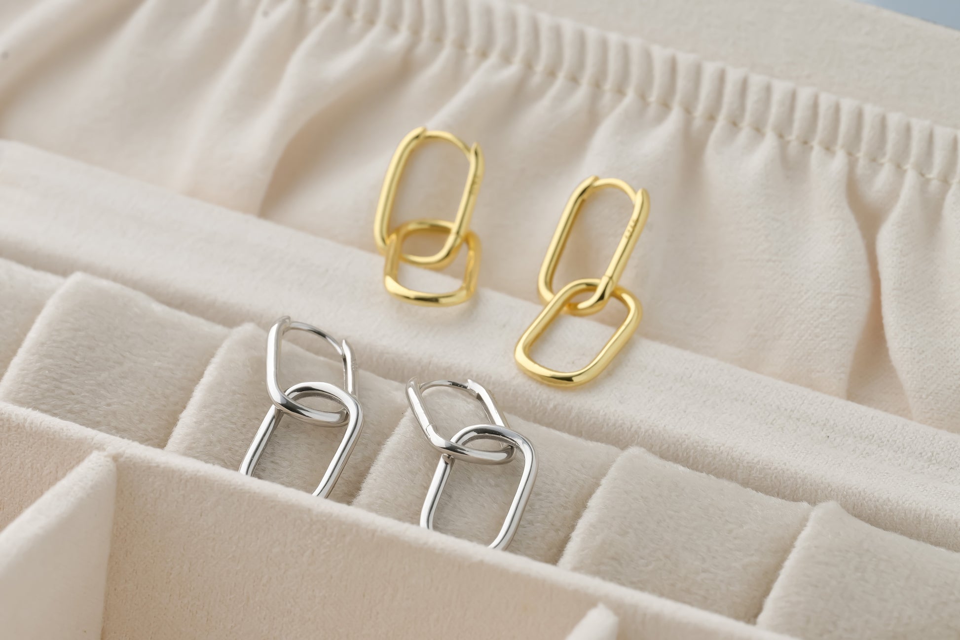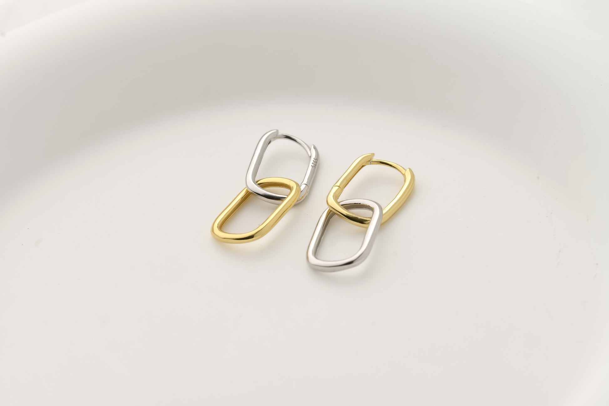 Elevate your style with our versatile double oblong hoops, available in both gold and silver. What sets these hoops apart is the second removable paperclip hoop, offering the choice of wearing them as one hoop or double hoops for a unique look. You can also opt for a playful, mismatched style by choosing one gold and one silver. Embrace the freedom to express your style and create endless combinations with these exquisite earrings. Perfect for any occasion, these hoops are a must-have addition to your jewelry collection. Discover elegance and versatility with every wear. Add a diamond letter charm in sterling silver for a personalized touch.