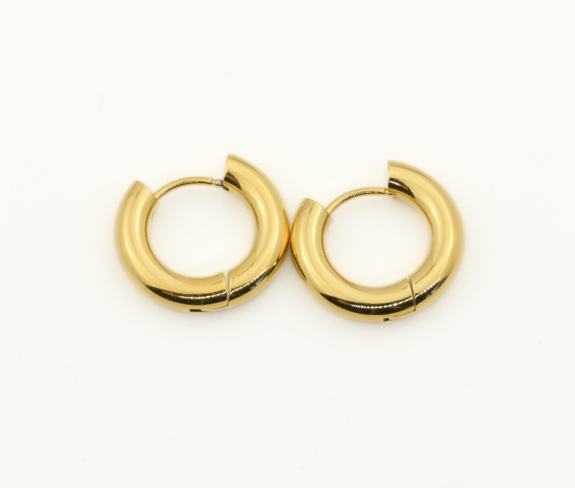 Elevate your style with our convertible pearl hoop earrings. Bold tunnel hoops, 19mm diameter, 4mm thickness in 18k gold PVD plated stainless steel. Add charm with freshwater pearls, easily removable for a versatile look. Make a statement!