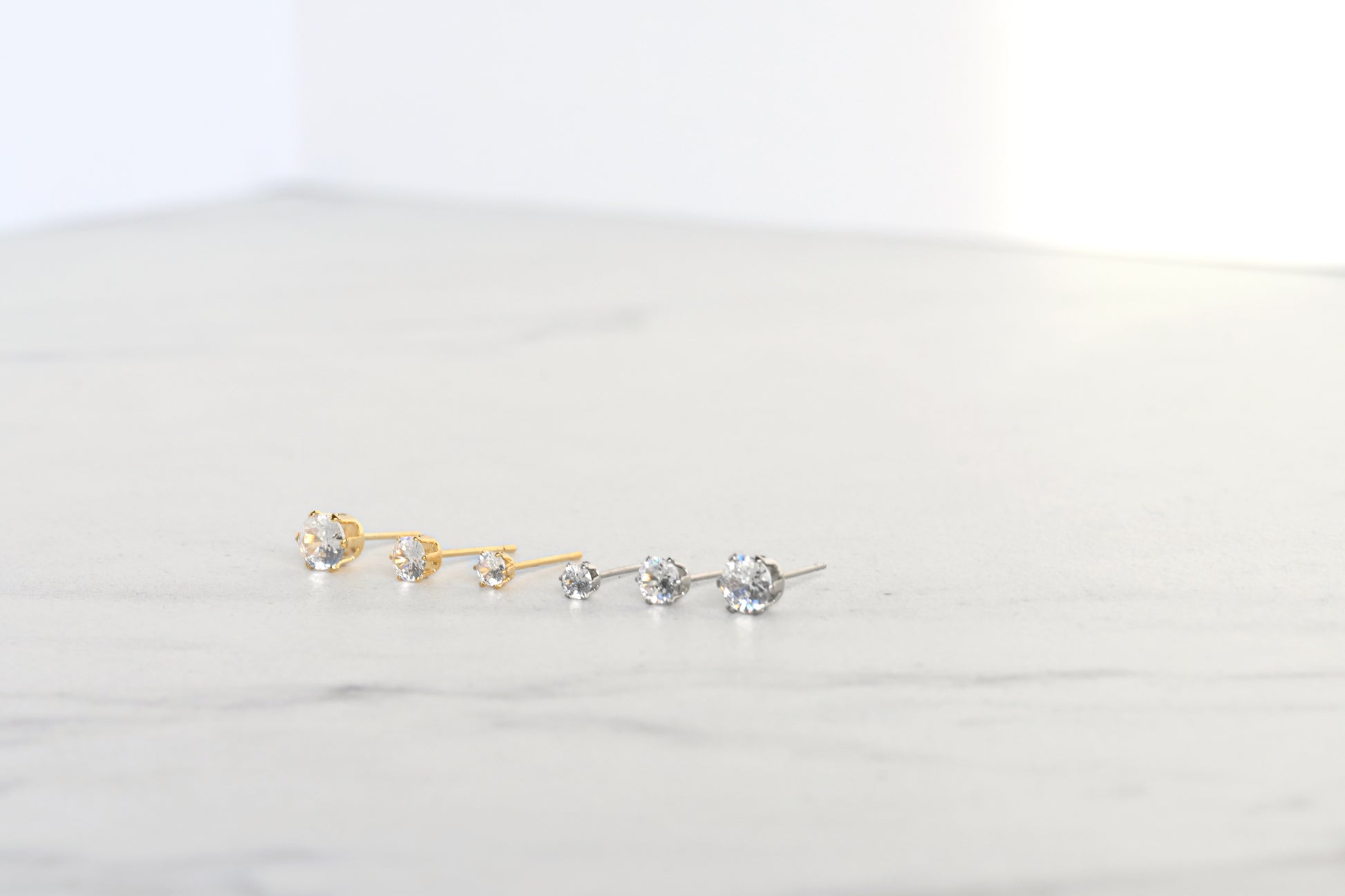 Minimalist in design, these gleaming cubic zirconia studs are crafted with highly polished stainless steel. They come in silver and gold, and 3 different sizes to choose from: 3 mm, 4 mm and 5 mm. These stud earrings will be your everyday essential!
