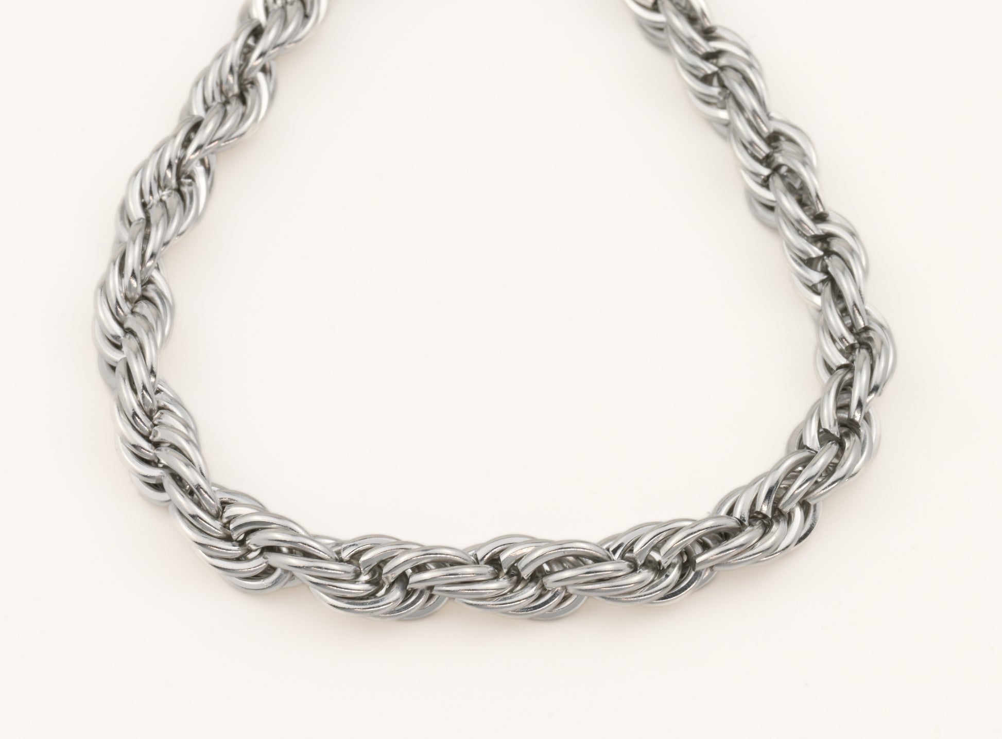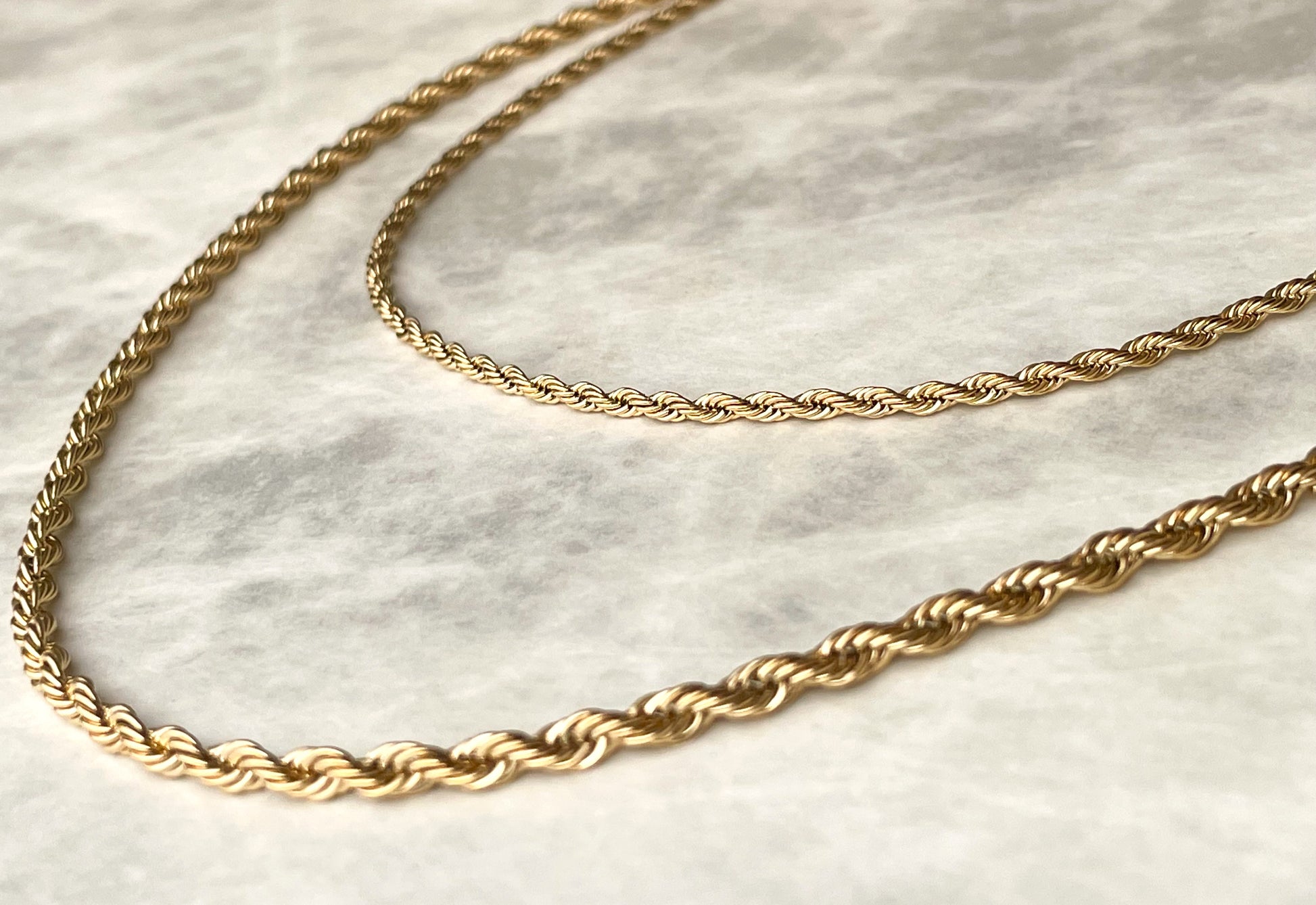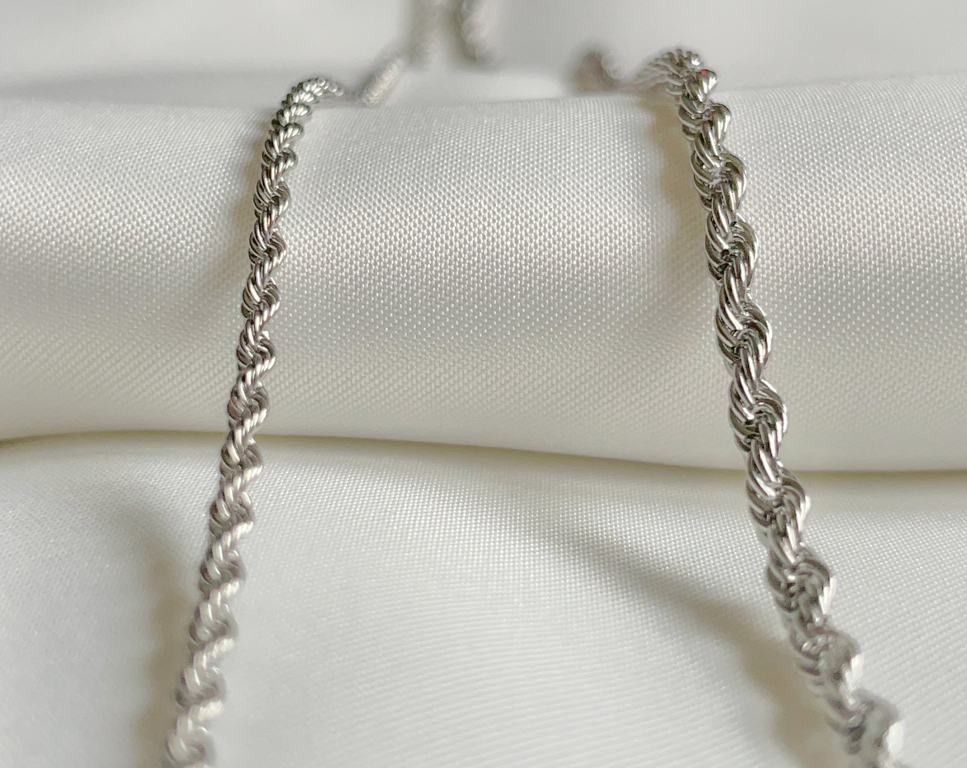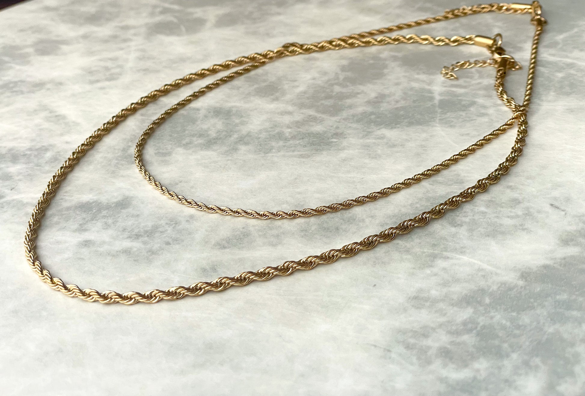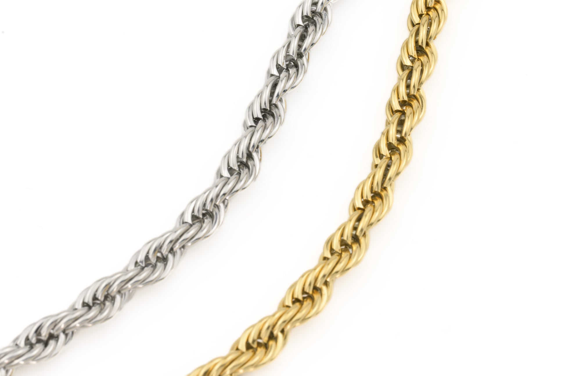 A stylish twisting rope chain design available in gold and silver. This design measures 2 or 3 mm in width and 16 inch or 18 inch in length to choose from. Crafted in stainless steel, this twisted chain necklace is made to last!