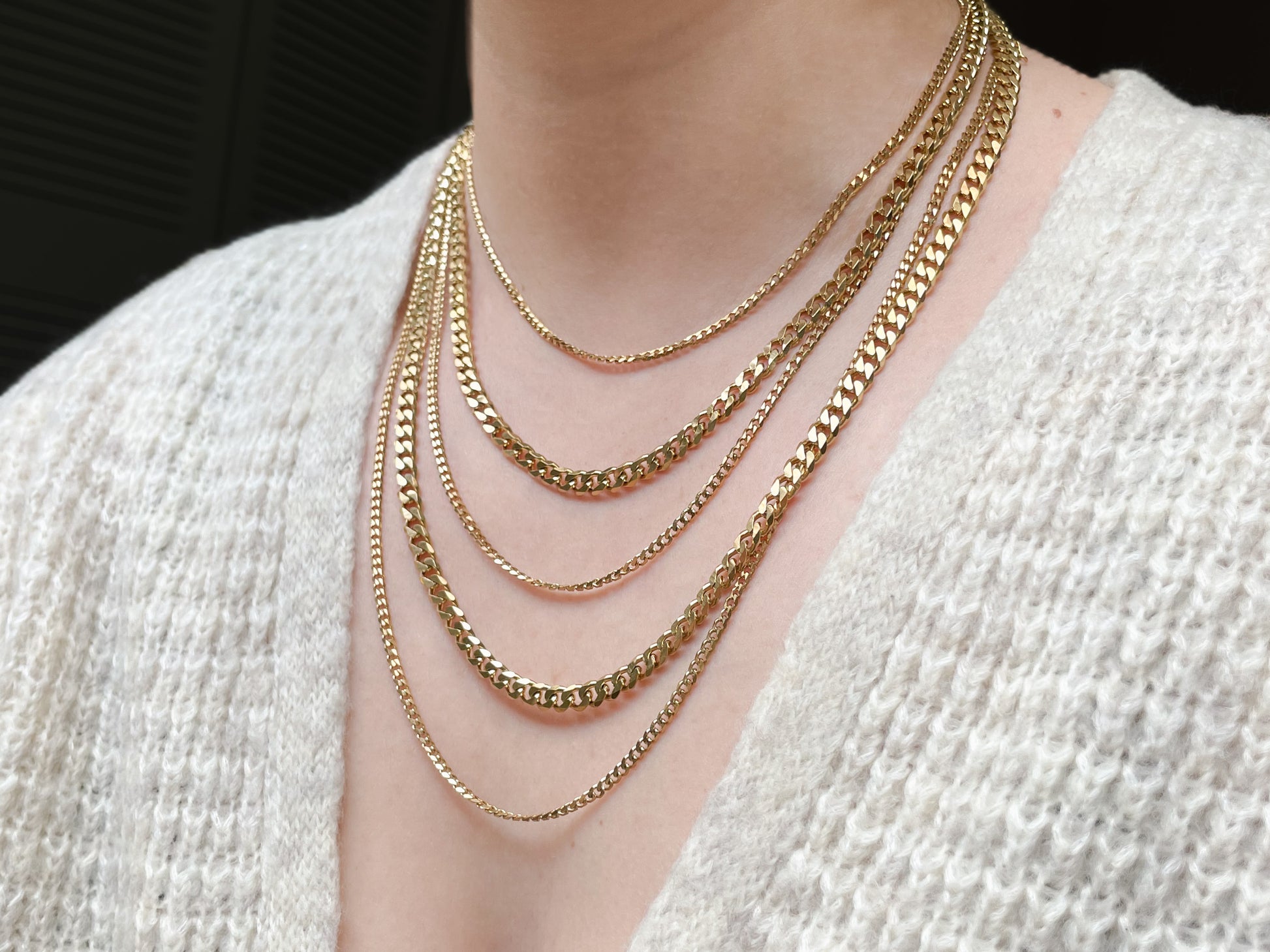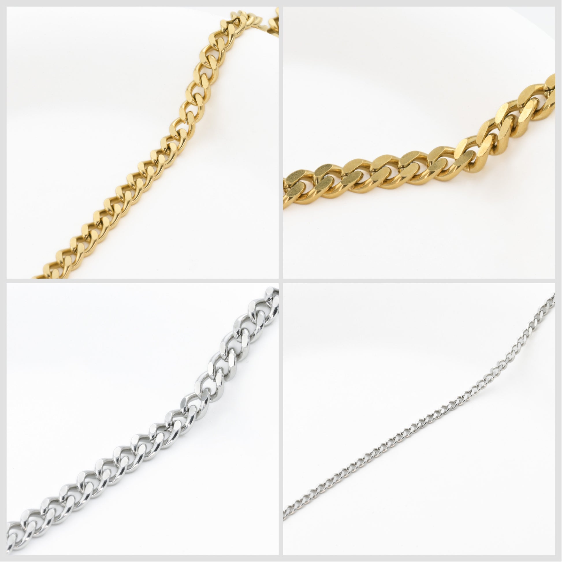 A unisex cuban chain necklace that will be your new staple piece! Crafted in highly polished stainless steel with gold and silver finish, this curb chain necklace is a wonderful piece on its own and pairs well with other chain types too. Wear it everyday while showering or working out; they will keep their color and shine for a long time and will not be affected by water, sweat, perfumes and lotions. Comes in 3 mm and 5 mm widths, two different colors (gold and silver), and 5 different lengths from 16 inch to 24 inch.