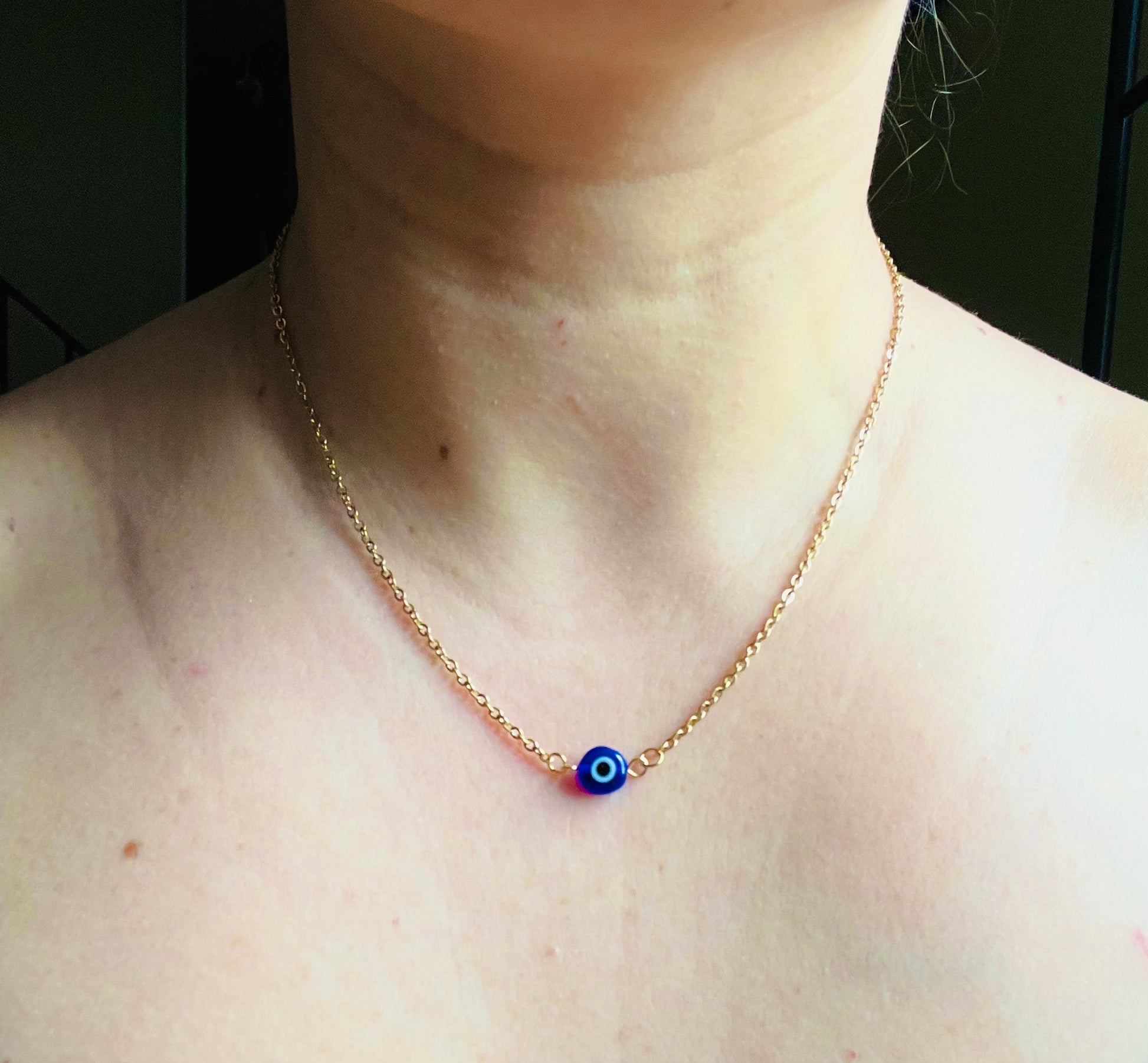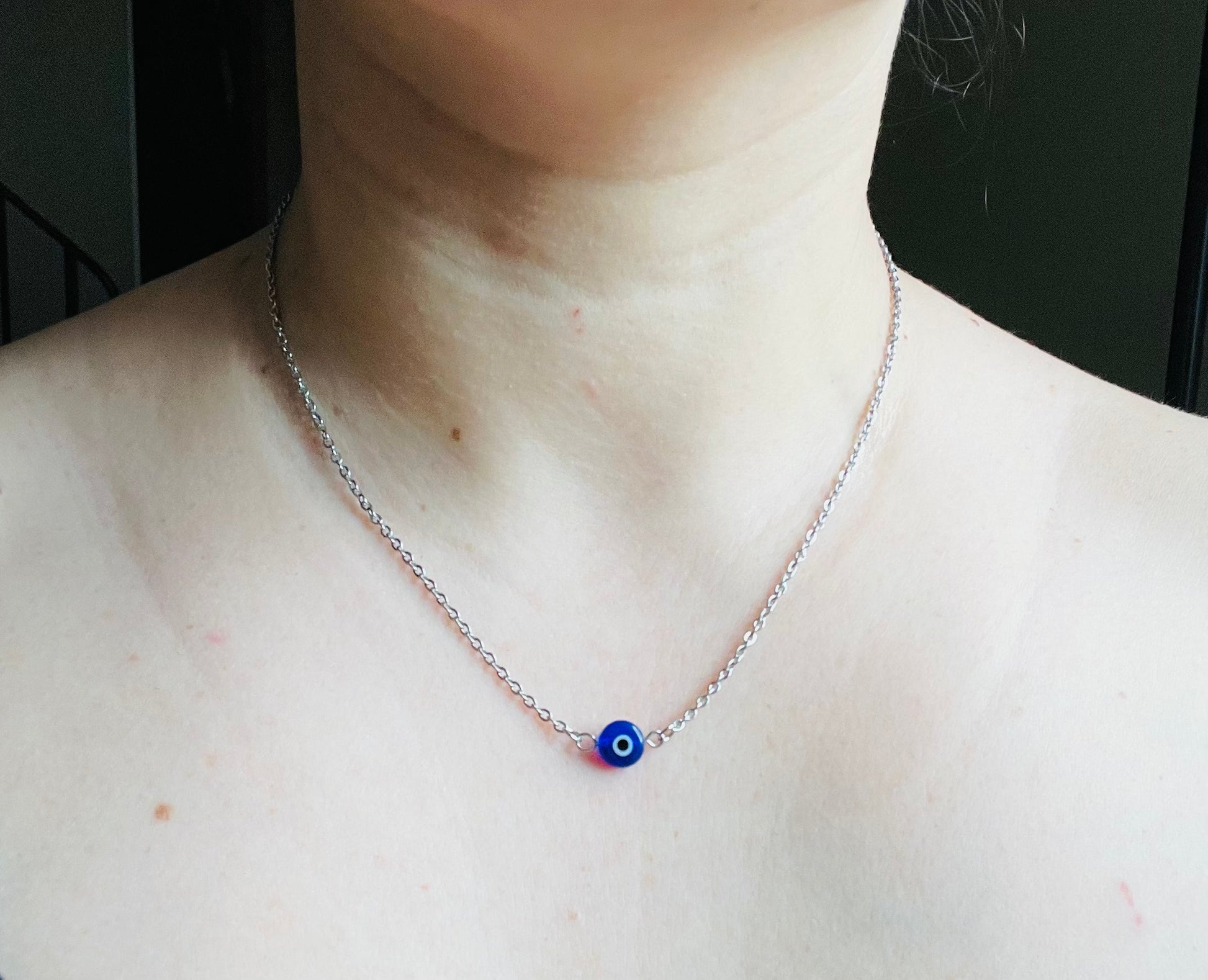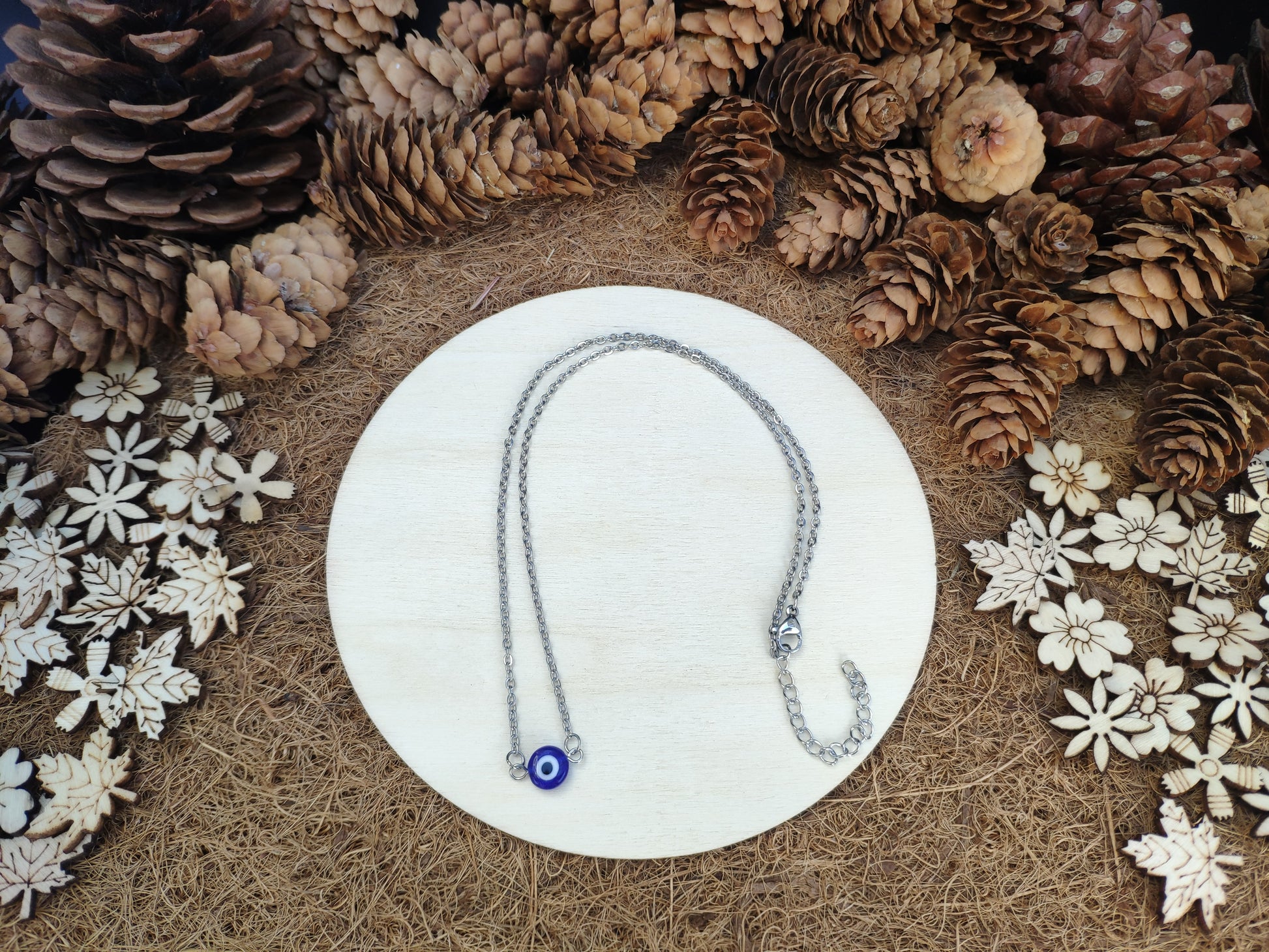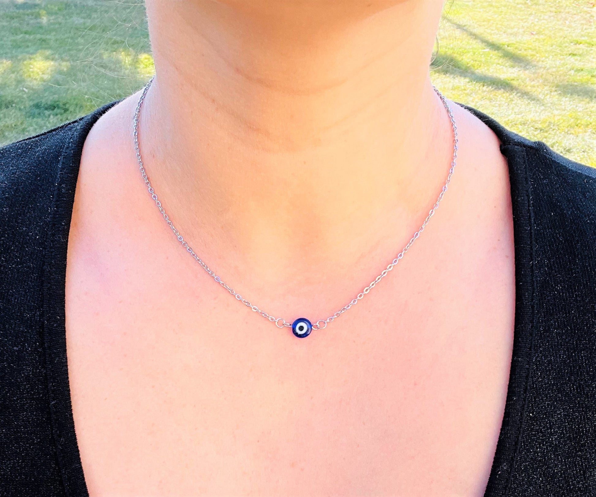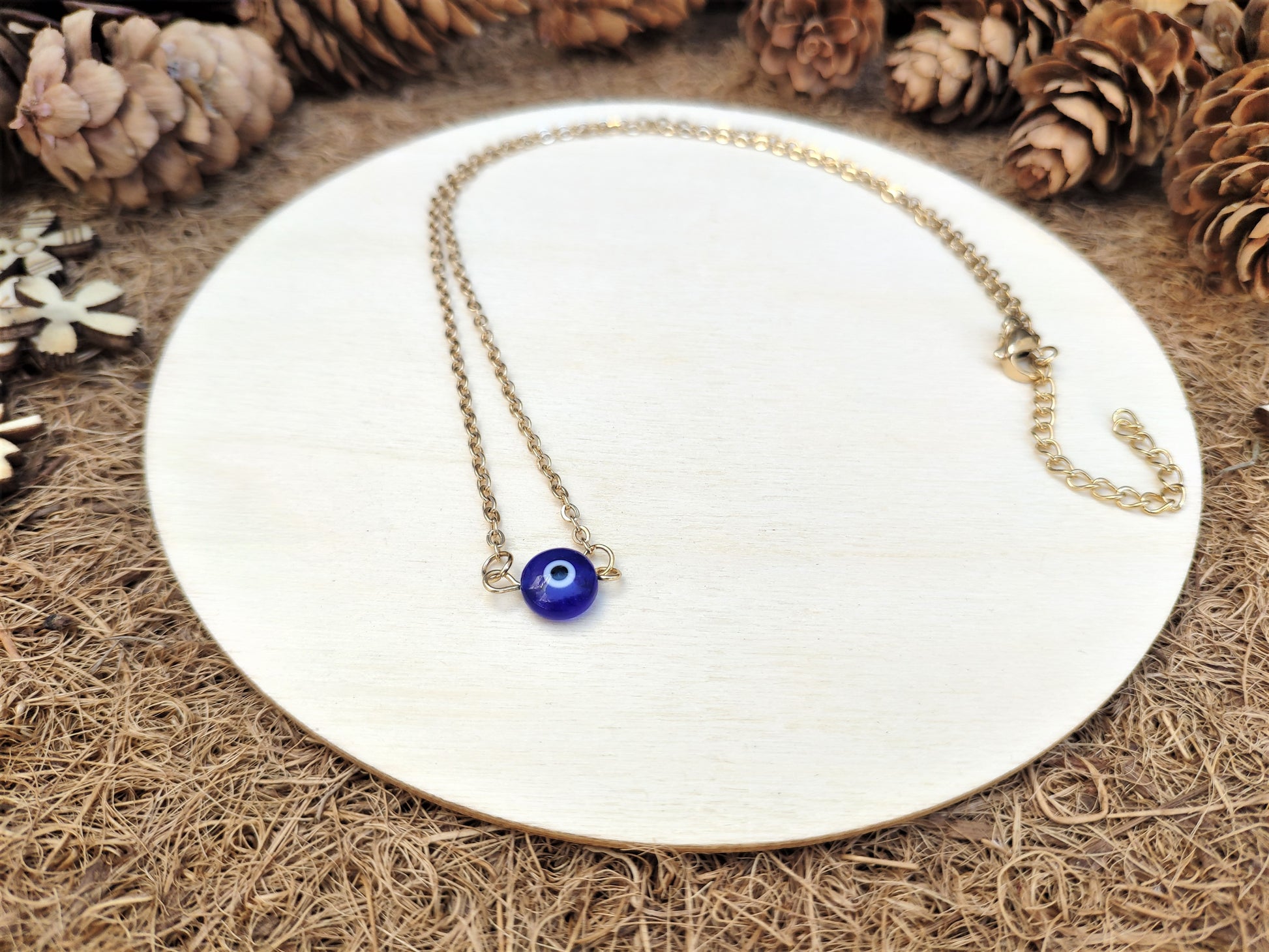 This minimalist evil eye necklace is set to be the cutest addition to your jewelry collection. Ward off all the negative energy and bad luck from your life with this traditional yet dainty design. It features a tiny glass evil eye charm attached to a waterproof stainless steel chain in gold and silver finish.