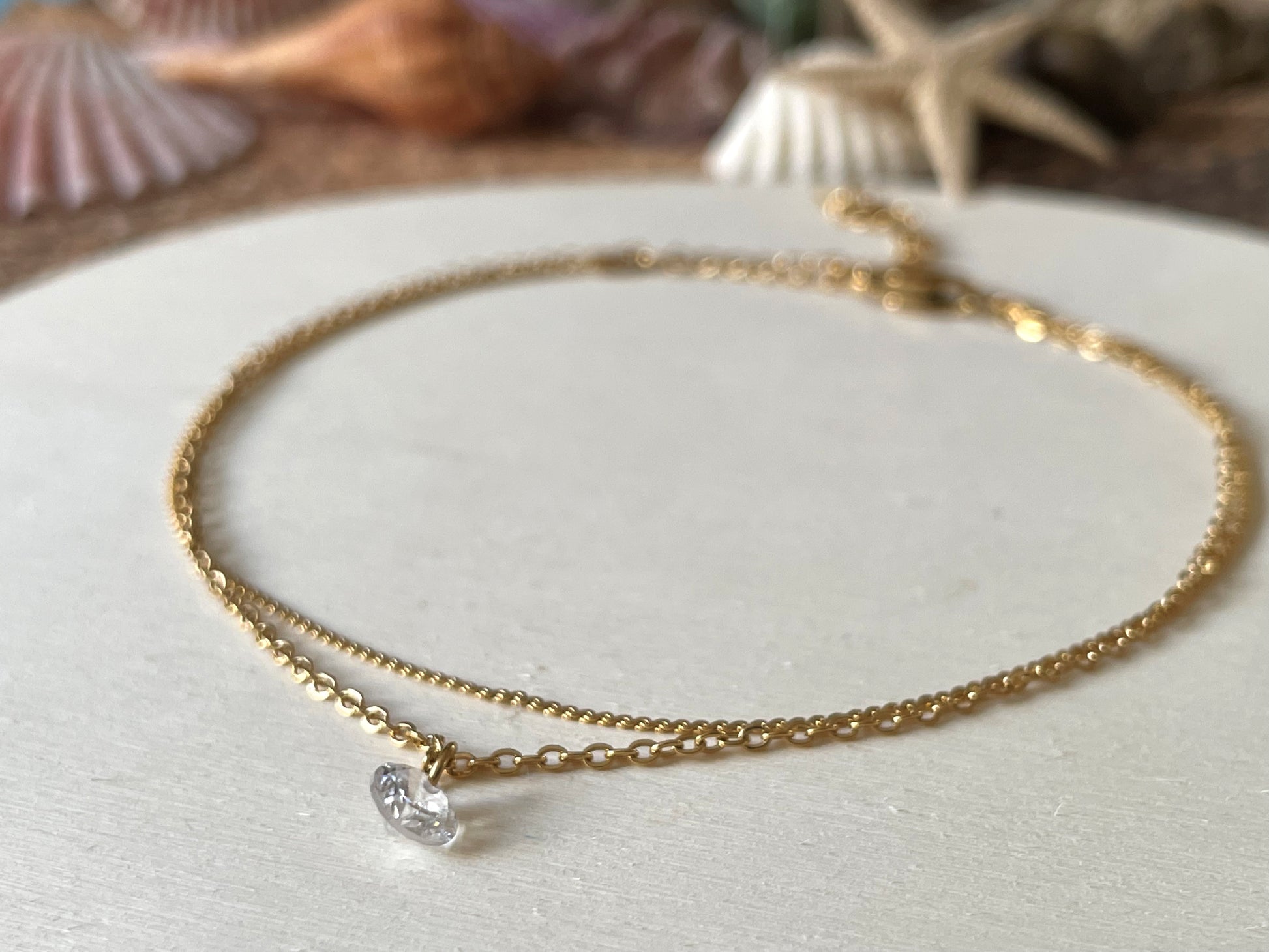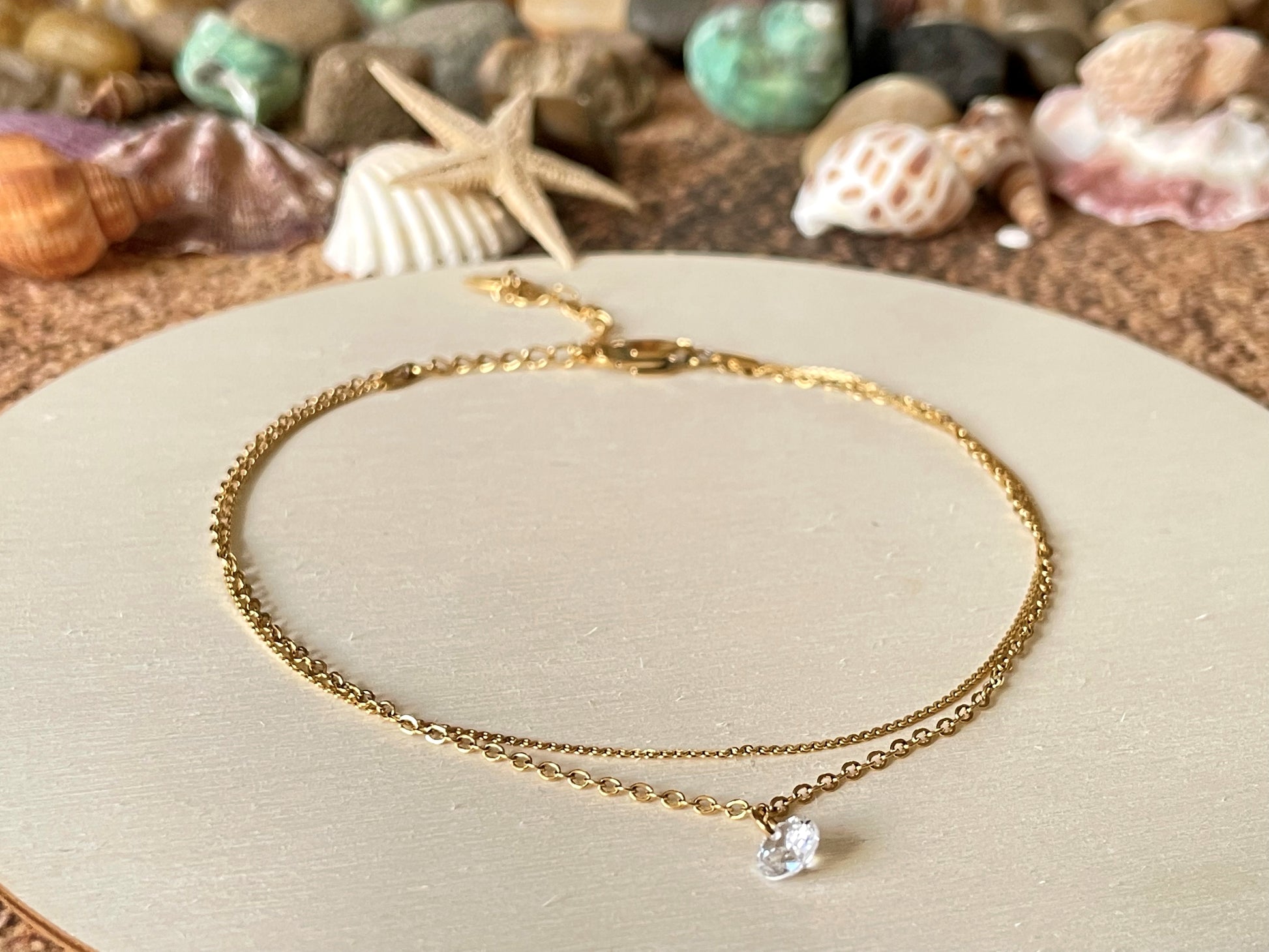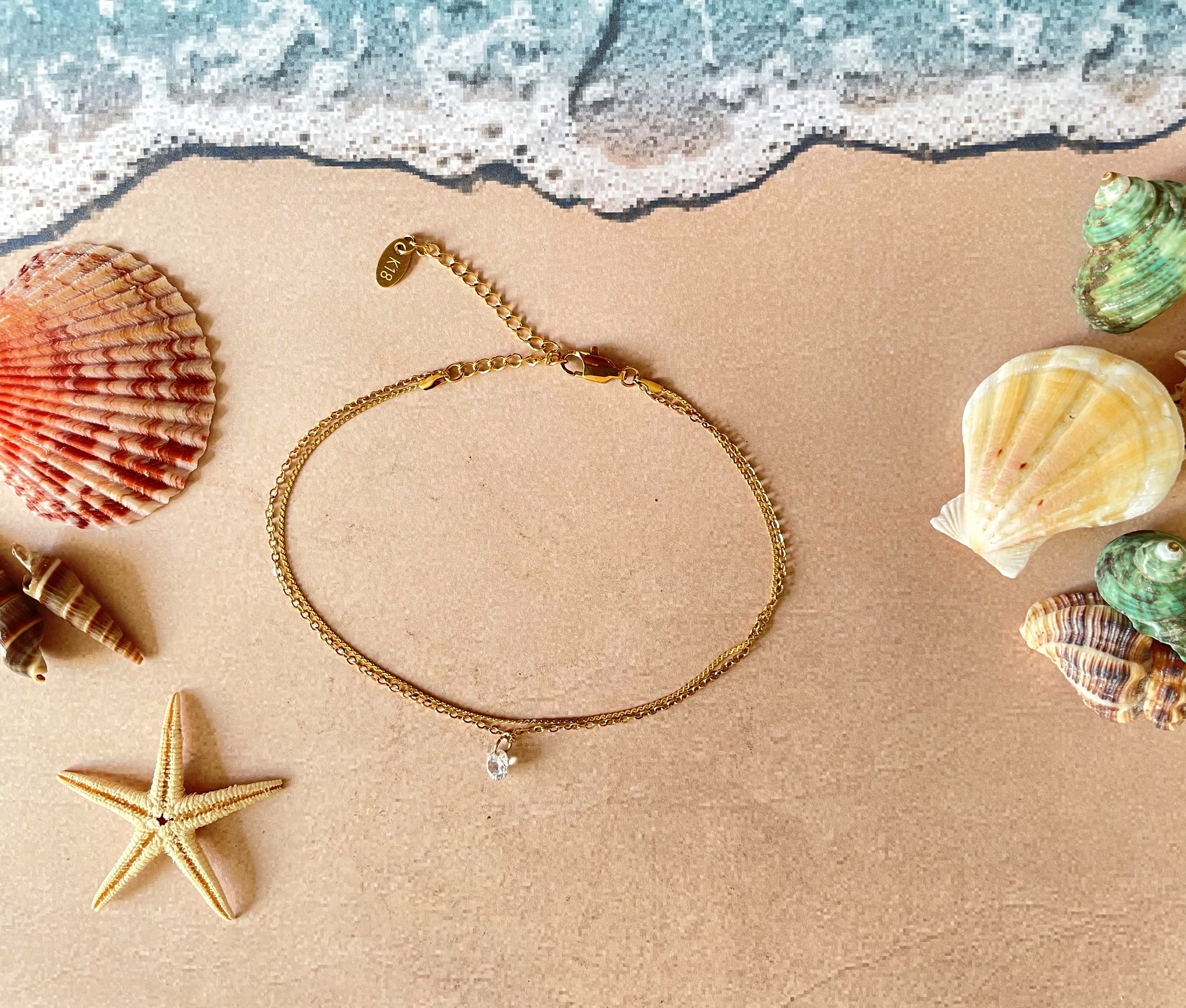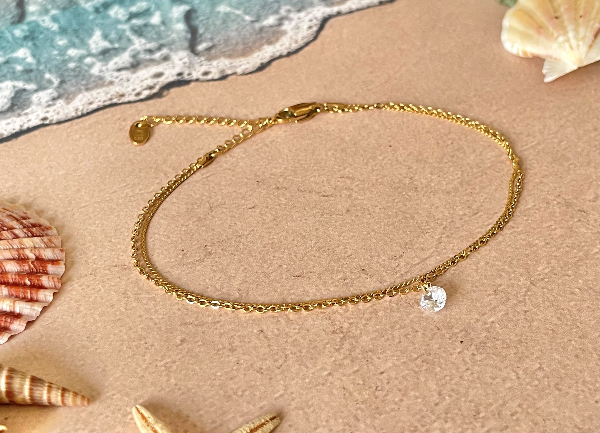 A shiny and delicate ankle bracelet that will take your style to the next level. This dainty gold ankle bracelet has a tiny crystal that makes it even more attractive and elegant. Plus, it is waterproof and made to last!