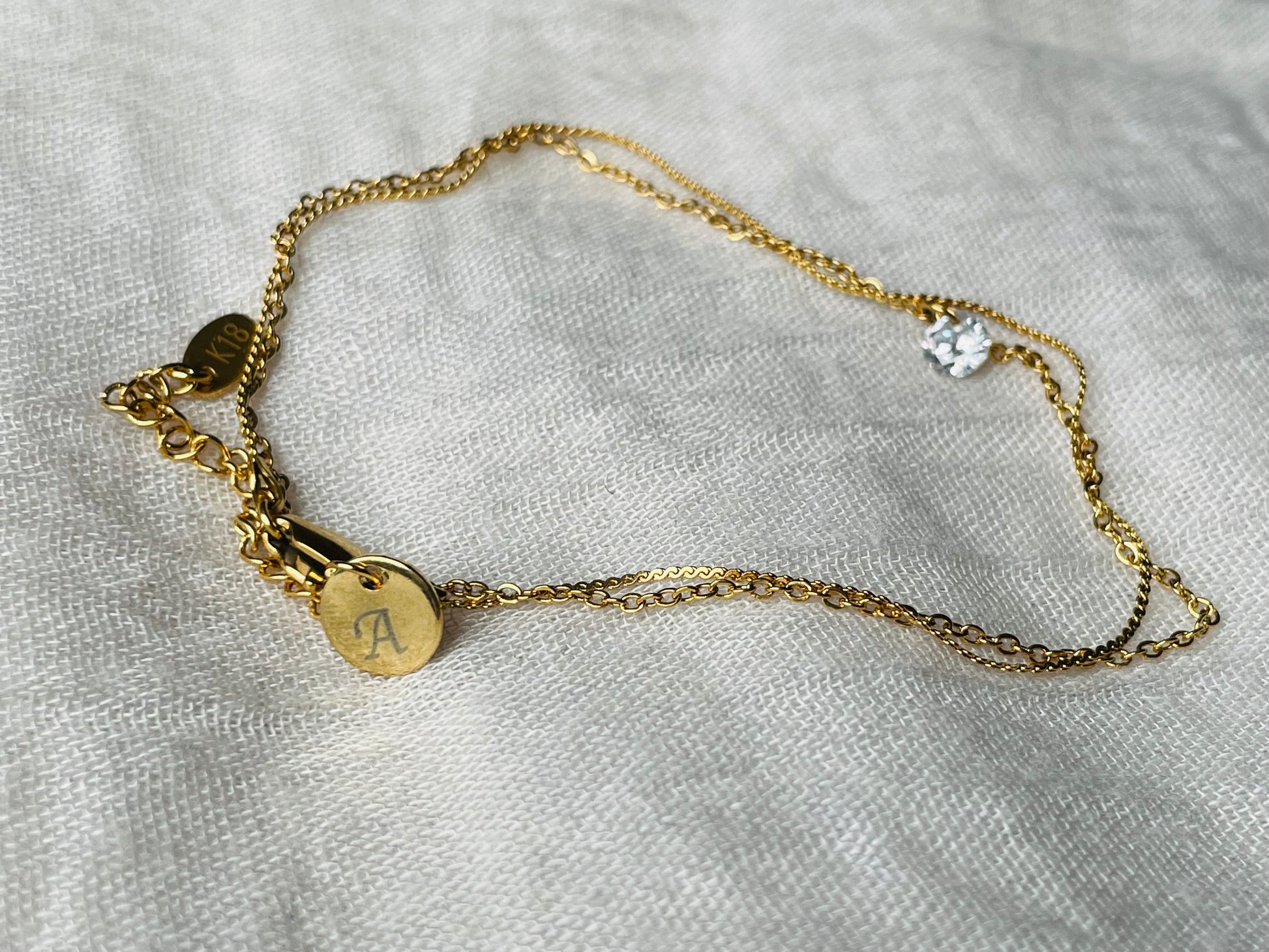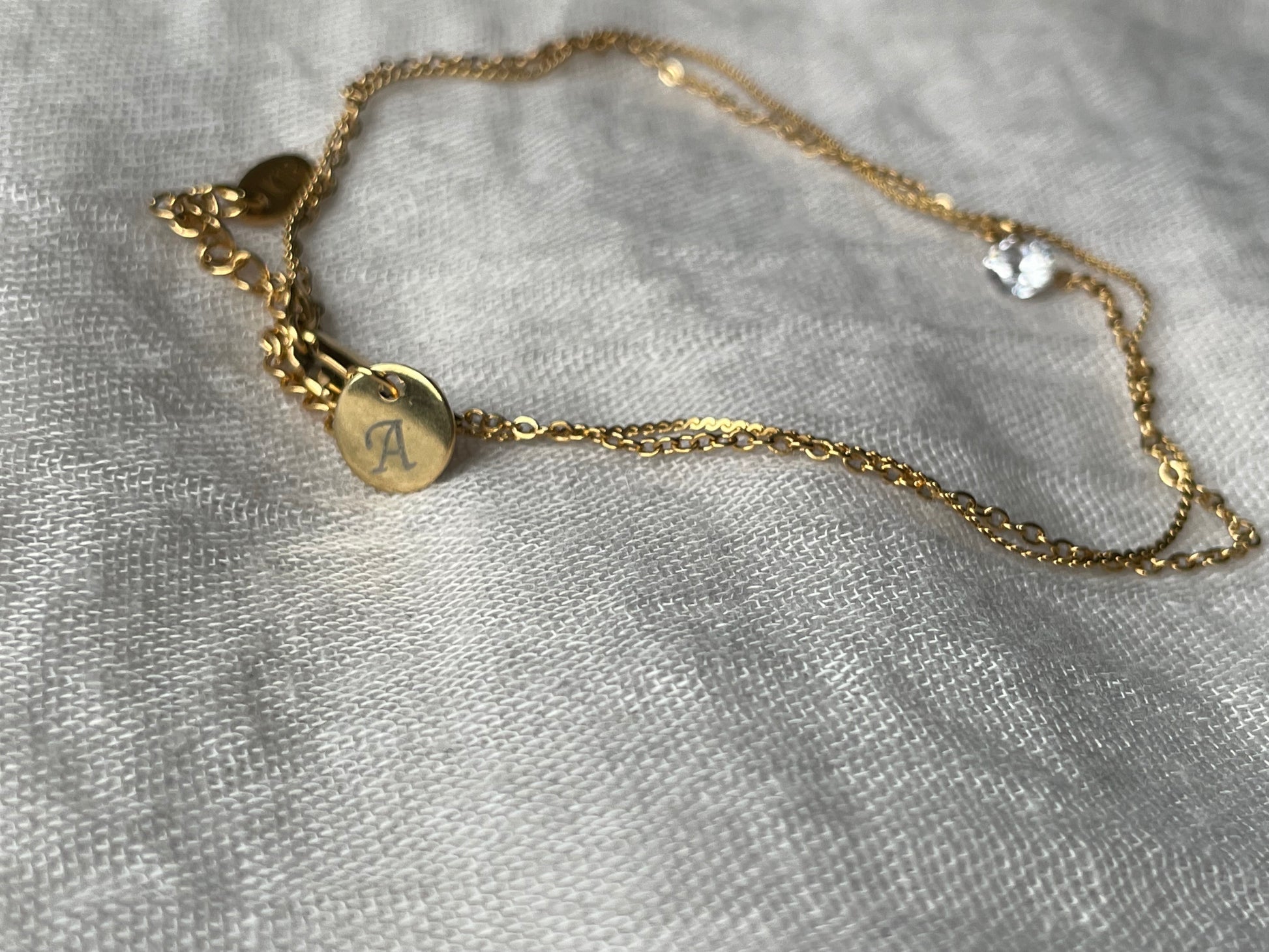 * This anklet is two layered (one piece).First layer is 7.5" and the second layer is a cable chain with a stone on it ( length: 8").