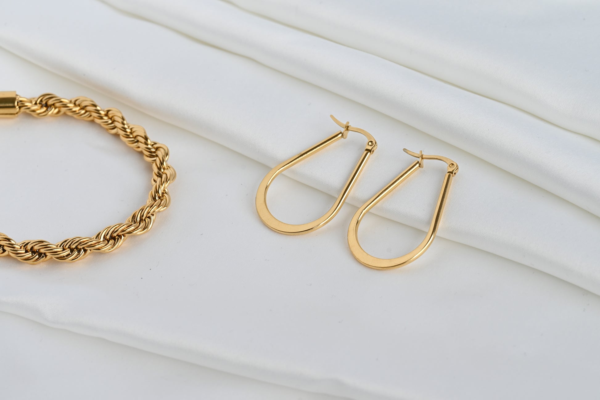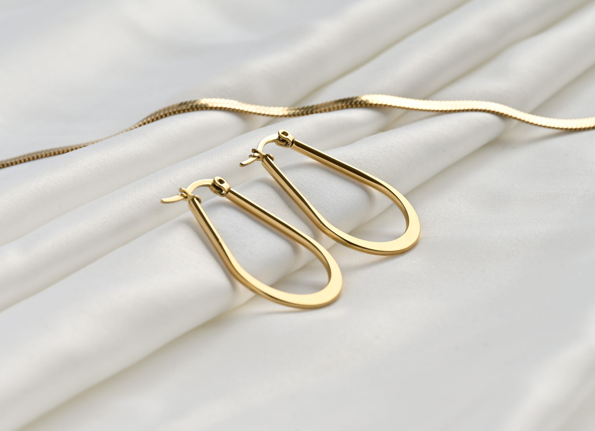 A classic thin and flat style, these hoop earrings are a combination of dainty details with teardrop hoop design. These thin oval gold hoops will elevate your outfit and boost your mood! Made of high-quality stainless steel with , they are tarnish-resistant and waterproof. They won't change color or turn your skin green!