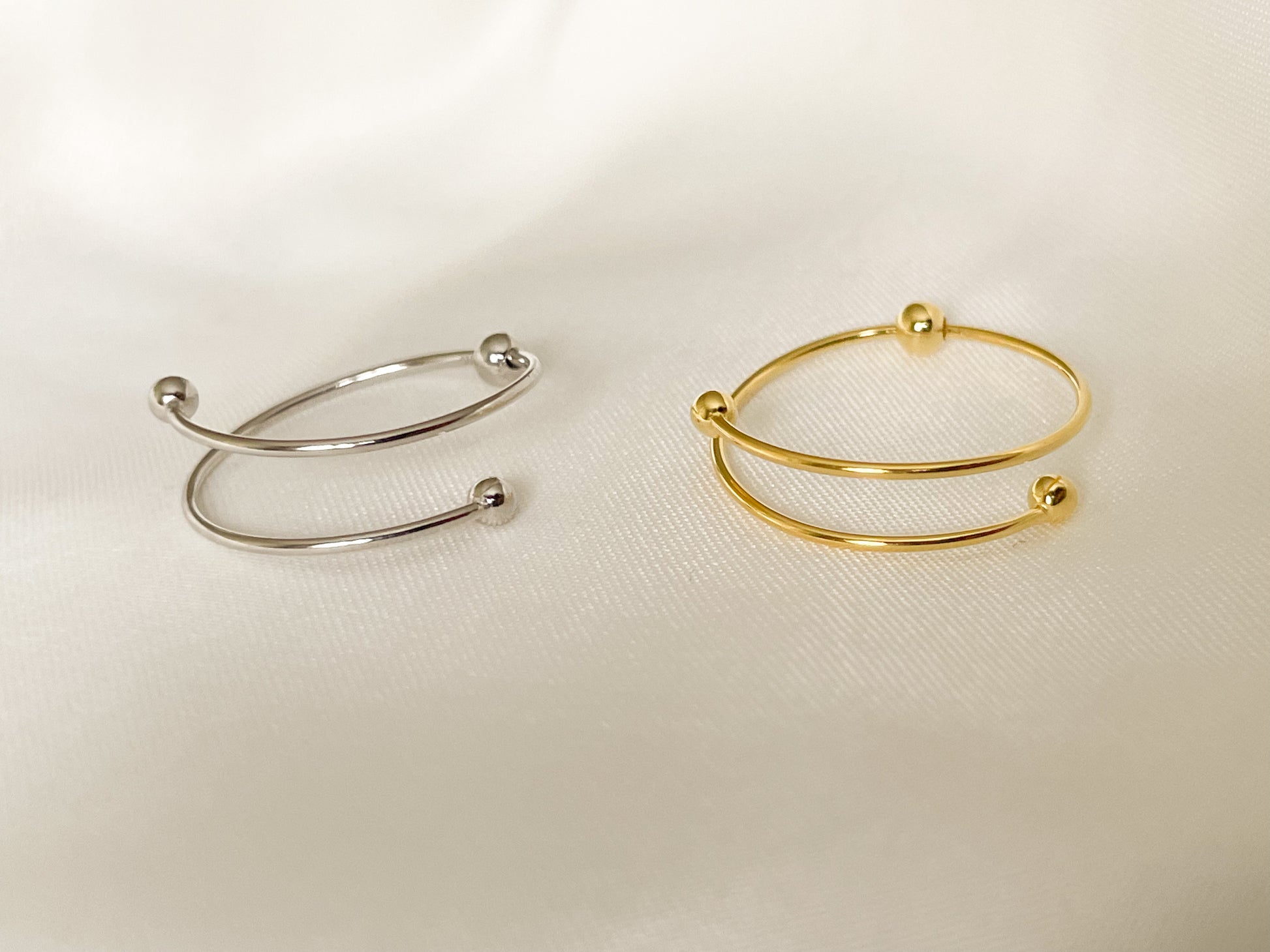 A dainty wrap ring crafted in 925 sterling silver! This stunning ring is easily adjustable and features two stationary beads on both ends and one bead that smoothly slides along the delicate band.