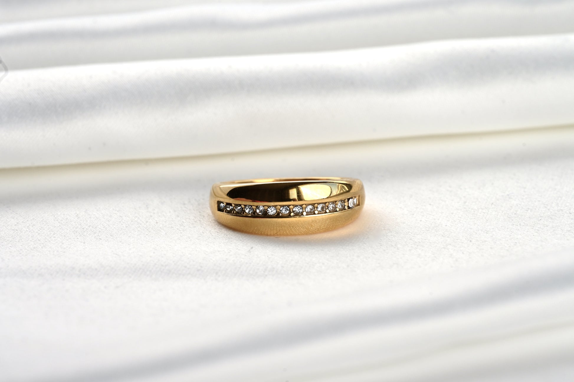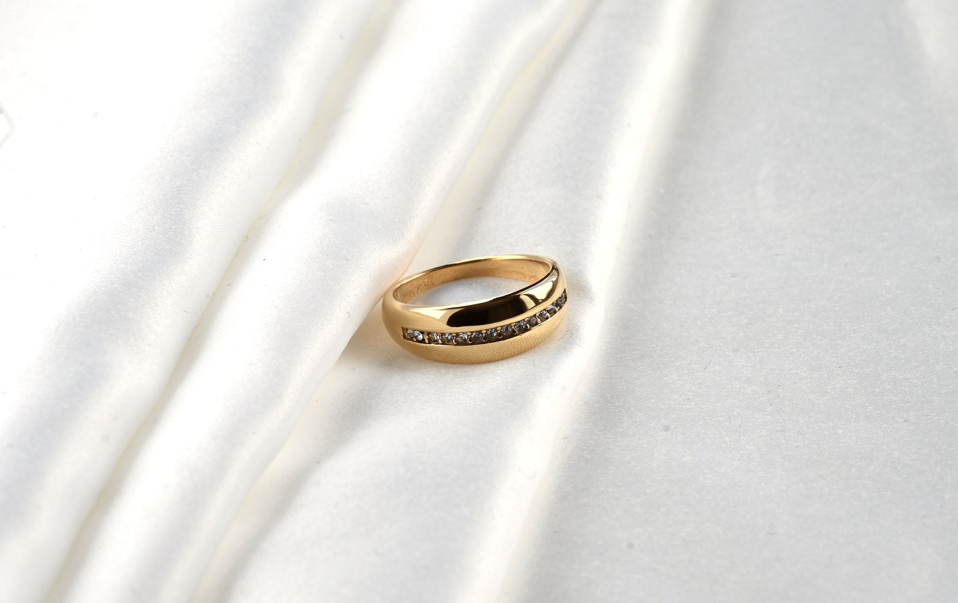 Made in 18k Gold PVD plated stainless steel and set with high-quality Cubic Zirconia stones in a pave setting, this waterproof dome ring is a piece you will hold on to forever. Pair it with daintier bands to create a stack.