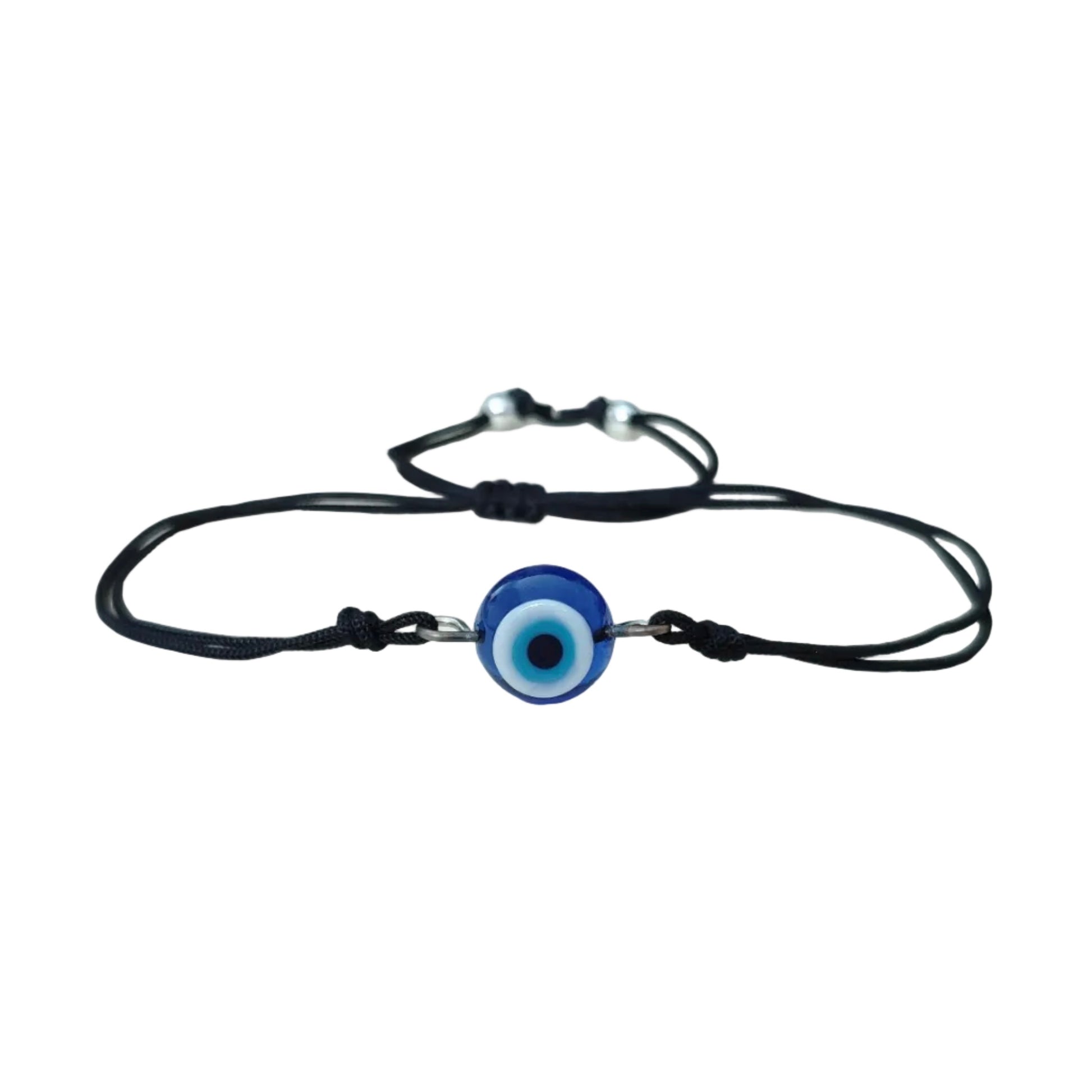 Glass Evil Eye String Bracelet, Blue Eye Charm Bracelet