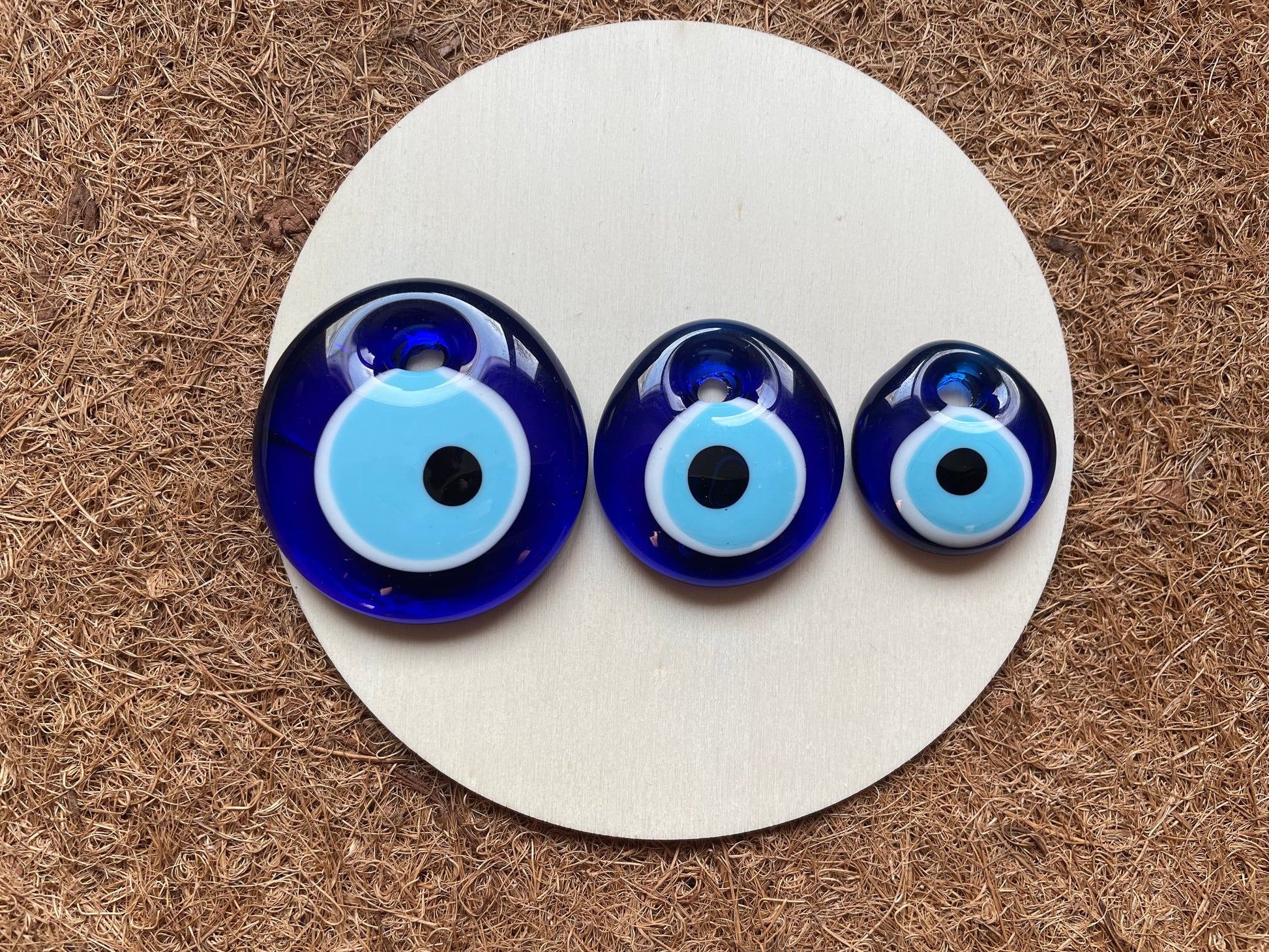A divine symbol of protection and good luck, this boho-style evil eye charm is an accent piece to incorporate into any room in your home and car! Handcrafted in glass, the design comes in three different sizes: 3 CM, 4 CM and 5 CM with the option to add a rope and a gold or silver lower-case letter charm in highly polished stainless steel. This versatile charm will also be an accent piece on your Christmas tree. A meaningful and thoughtful Christmas gift for your loved ones!