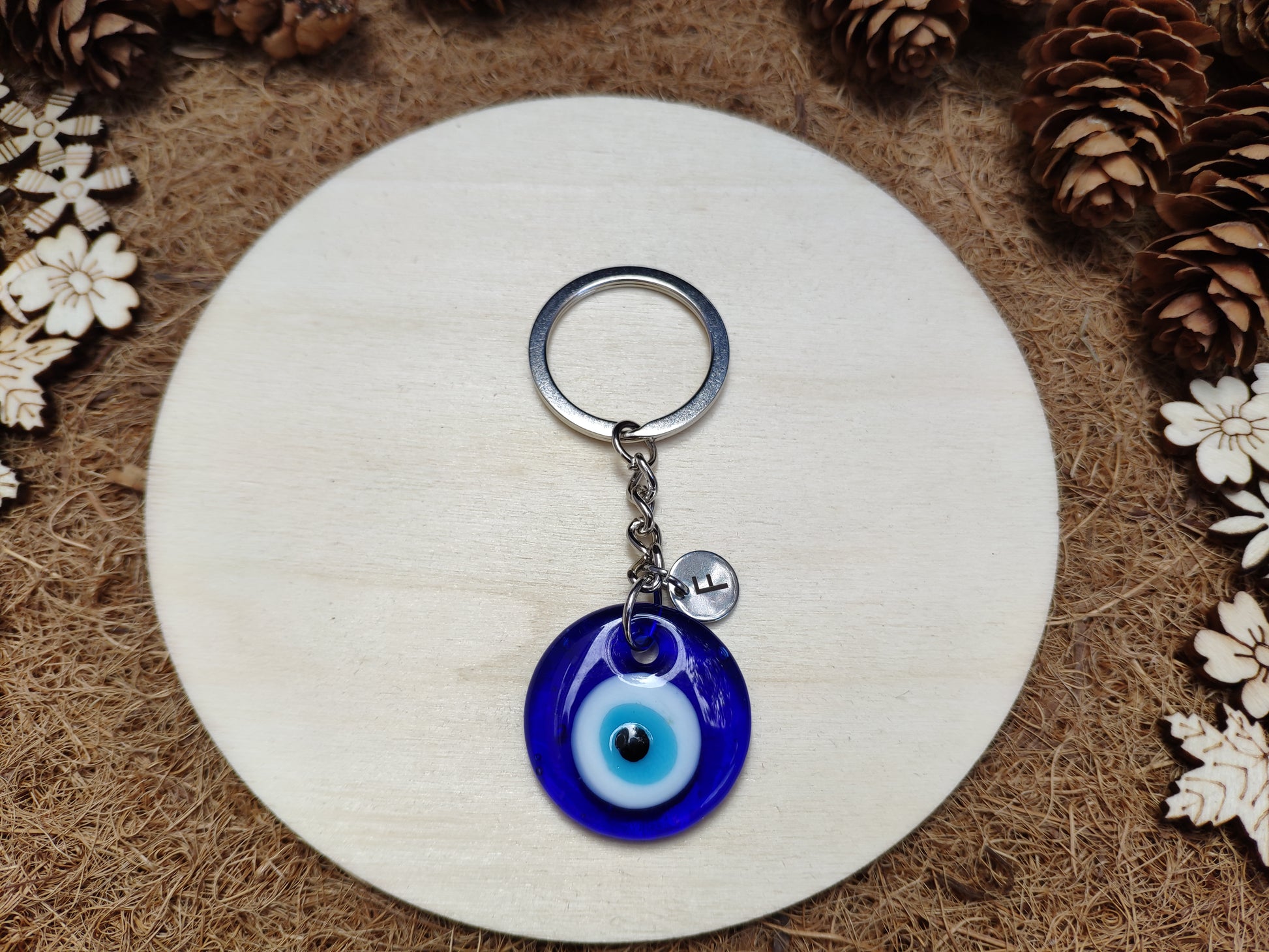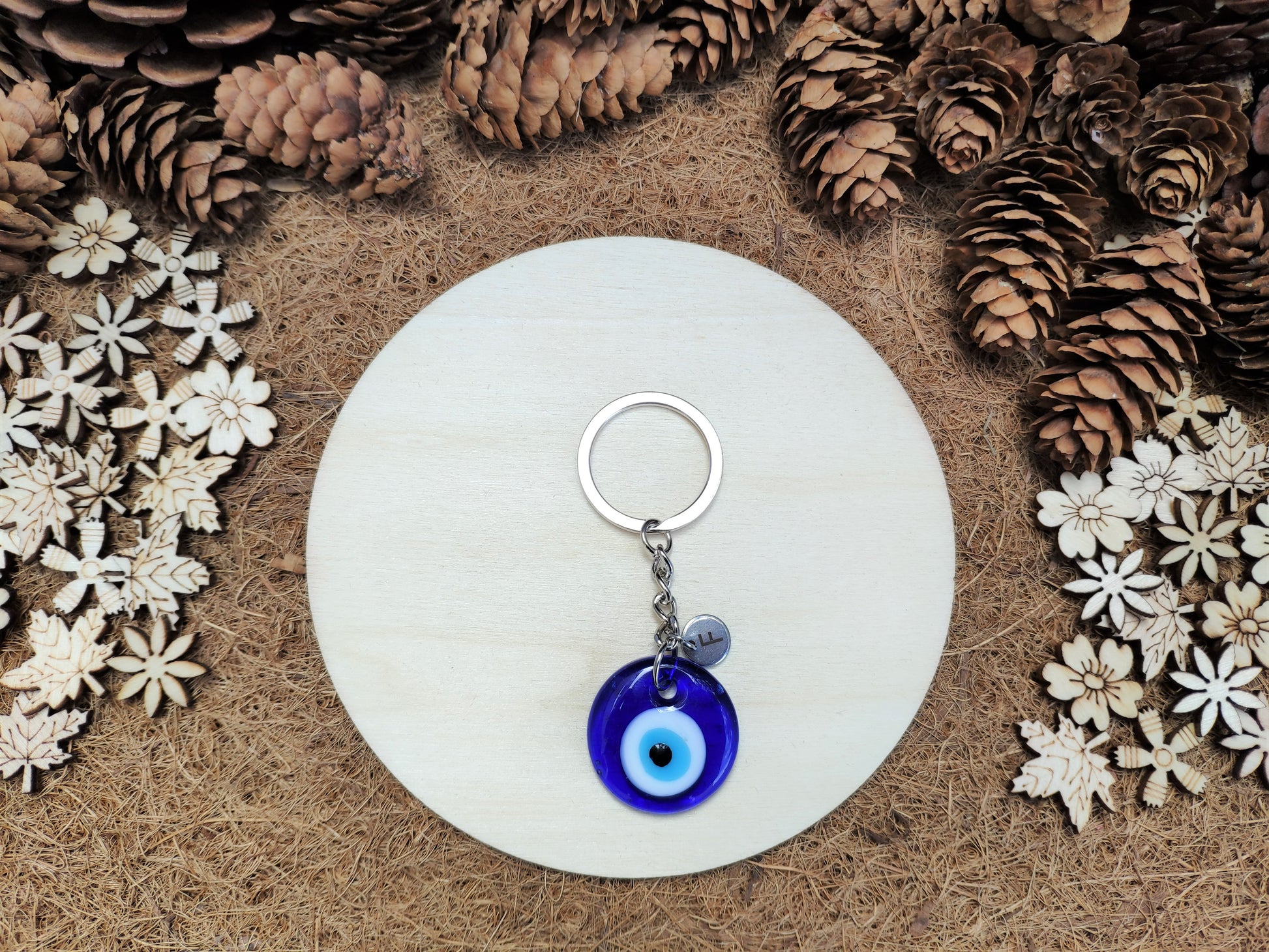 Round up keys with this cute evil eye keyring! Handcrafted with a 3 cm round glass evil eye charm, this blue keychain will add security and protection to your everyday life. Personalize your keychain with a variety of charms to choose from, including zodiac and letter charms! An affordable yet meaningful gift for a loved one! Please message me if you want more than one charm on your keyring!
