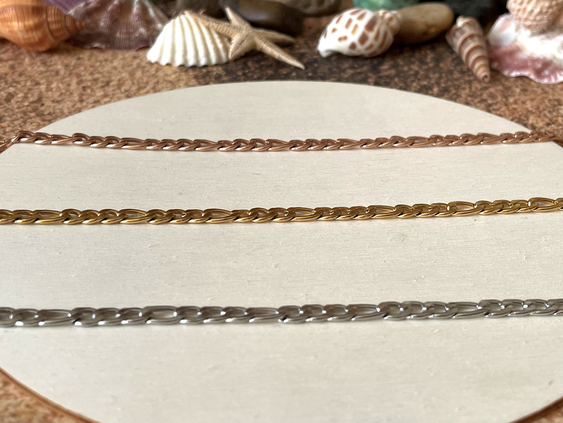 An always-on trend chain originating from Italy, this figaro anklet is a great piece to add to your summer jewelry collection. Crafted in silver, gold and rose gold-toned stainless steel, this timeless chain is a statement-maker. Plus it is non-tarnish and made to last!