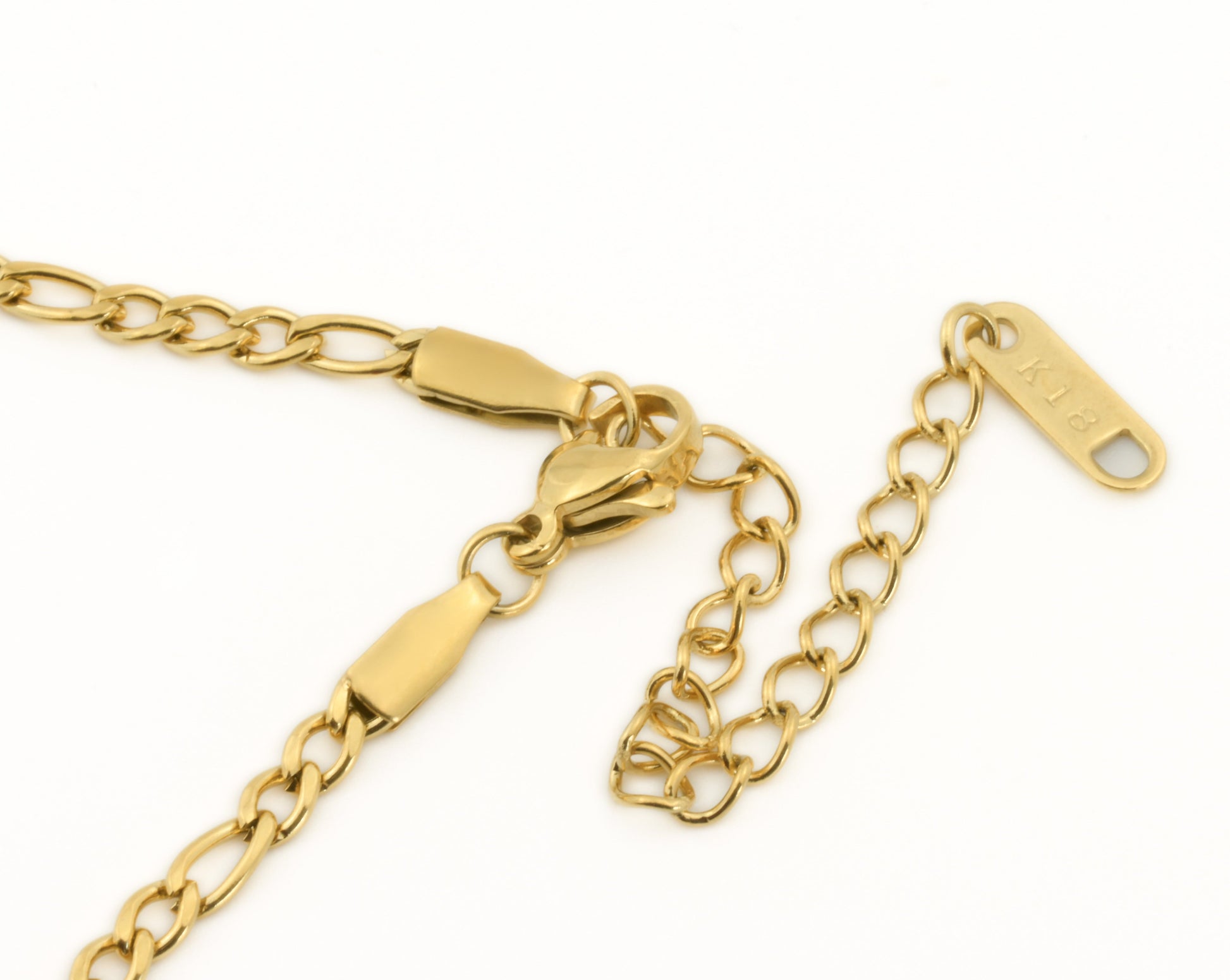 Upgrade your style with our dainty Figaro Necklace—a stainless steel beauty finished in silver and 18k gold PVD plating. At 16 inches with a 3mm width, this waterproof piece, adorned with a 2-inch extender, exudes timeless elegance.
