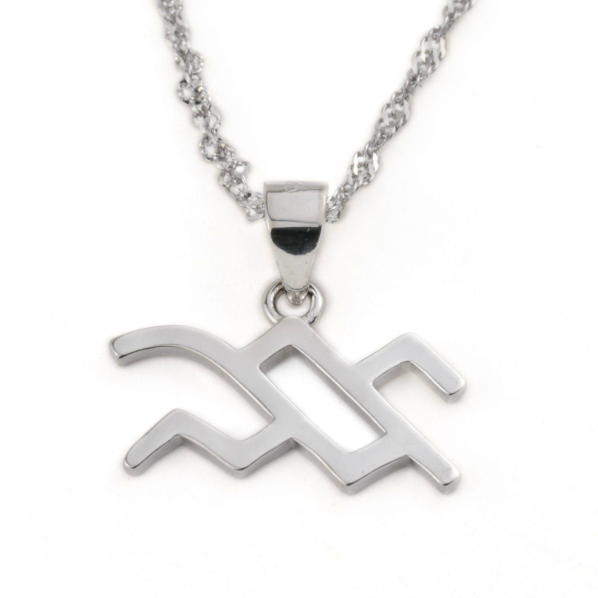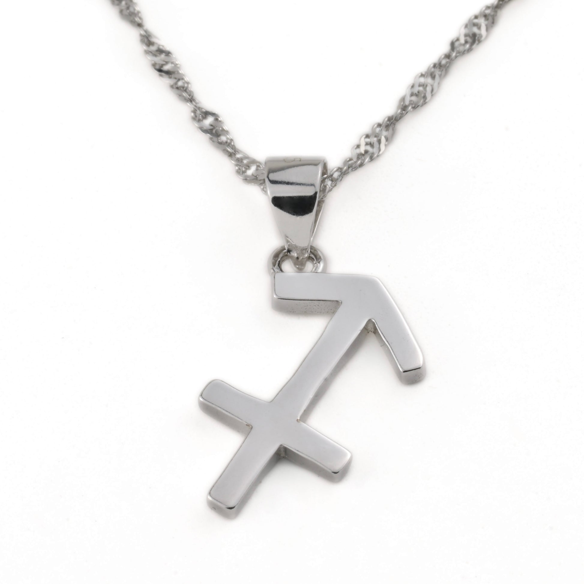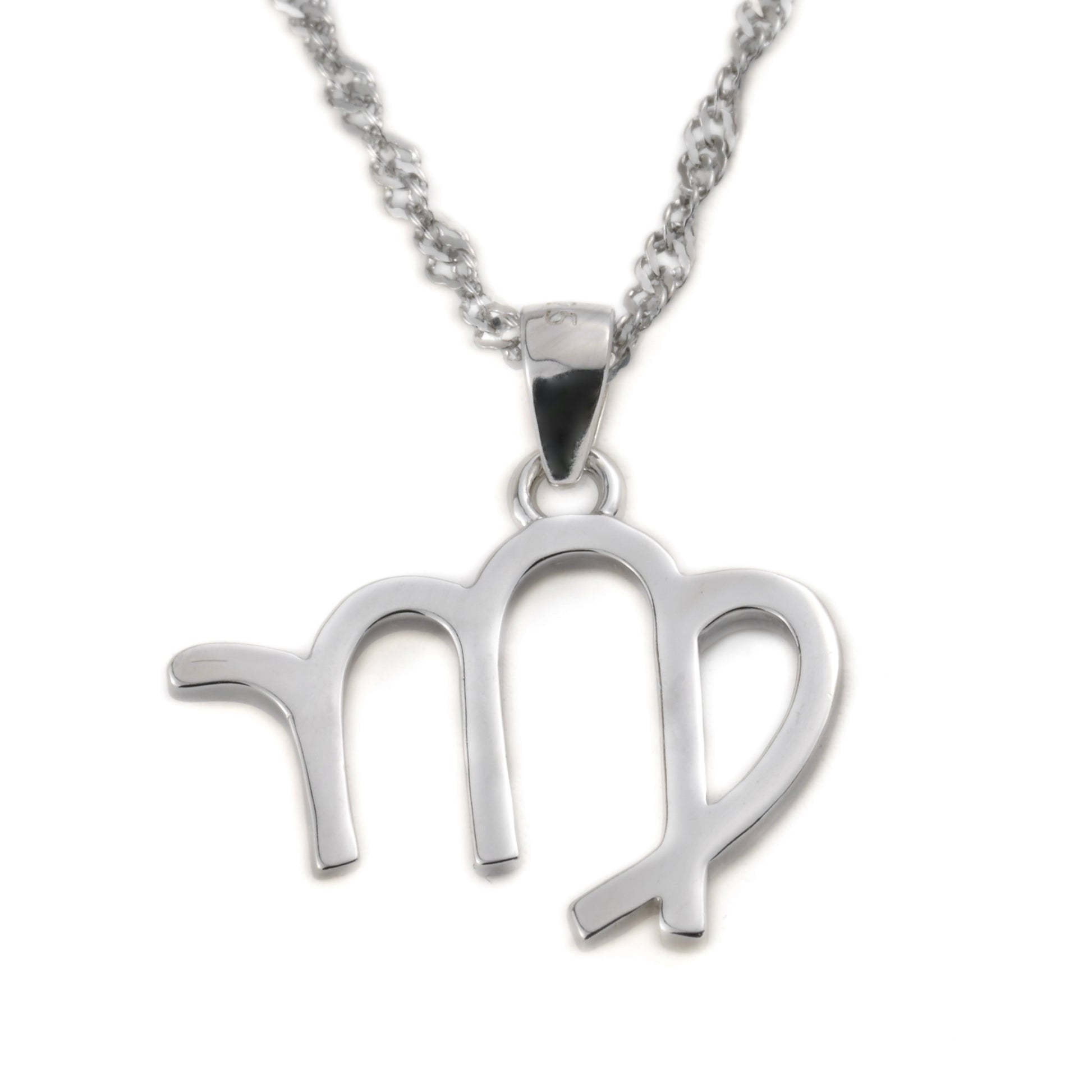 Celebrate your star sign with this beautiful silver zodiac necklace. The highly polished zodiac symbol pendant reflects light from all angles and lends a perfect satin finishing look. This necklace features a 16+2" twisted Singapore chain crafted from Sterling Silver