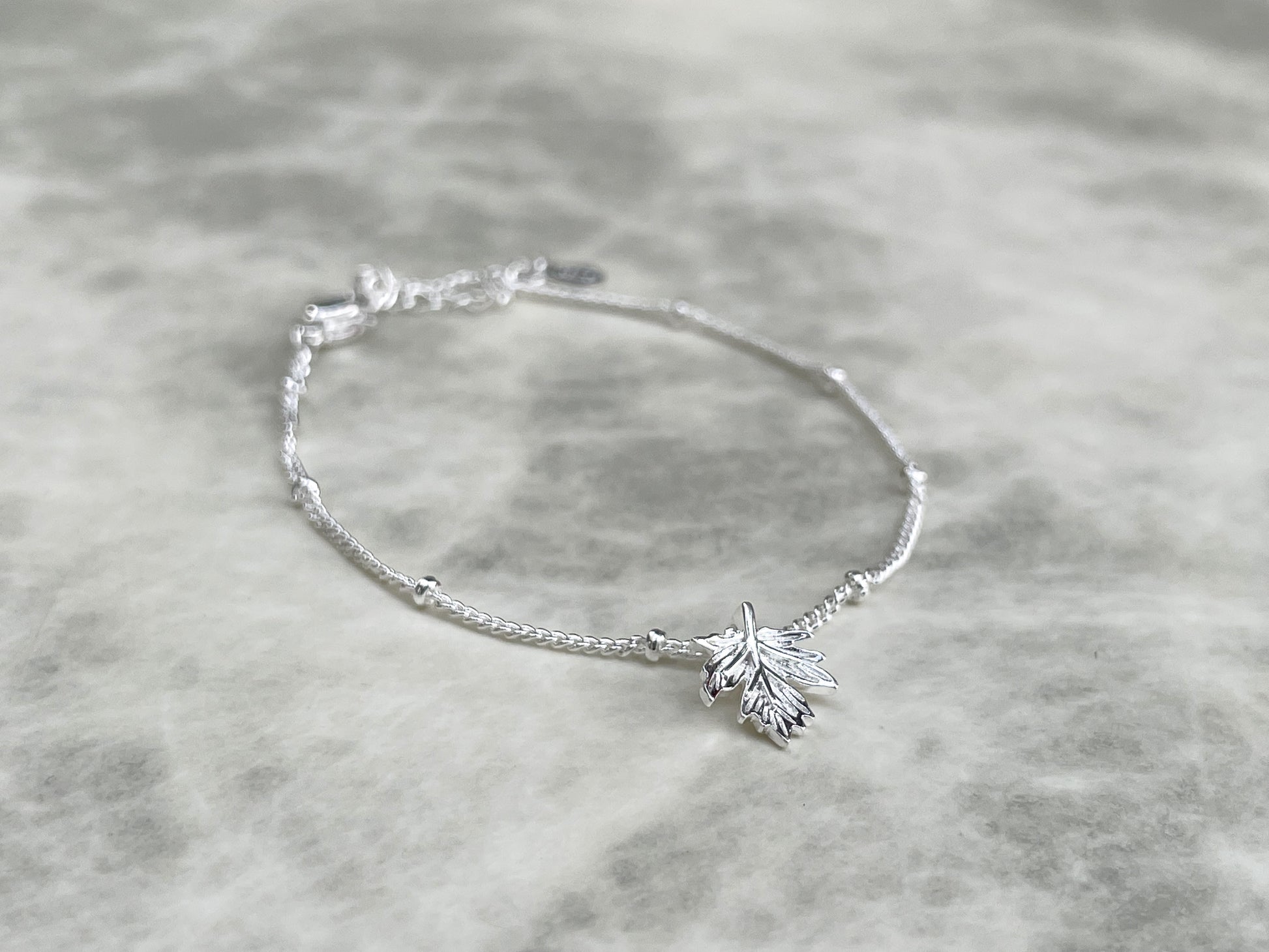 Celebrate your home Canada, with this beautifully crafted maple leaf bracelet in sterling silver. The maple leaf is the most widely recognized national symbol of Canada yet it also symbolizes unity, tolerance, and peace. The perfect Canadian gift for your loved ones. The bracelet features a bright satellite curb chain which allows the maple leaf pendant move on the chain. It also has an S925 tag on the end that keeps the pendant on the chain. Now you can add a unique, fully customized charm to your bracelet. Make it yours with personalized designs.