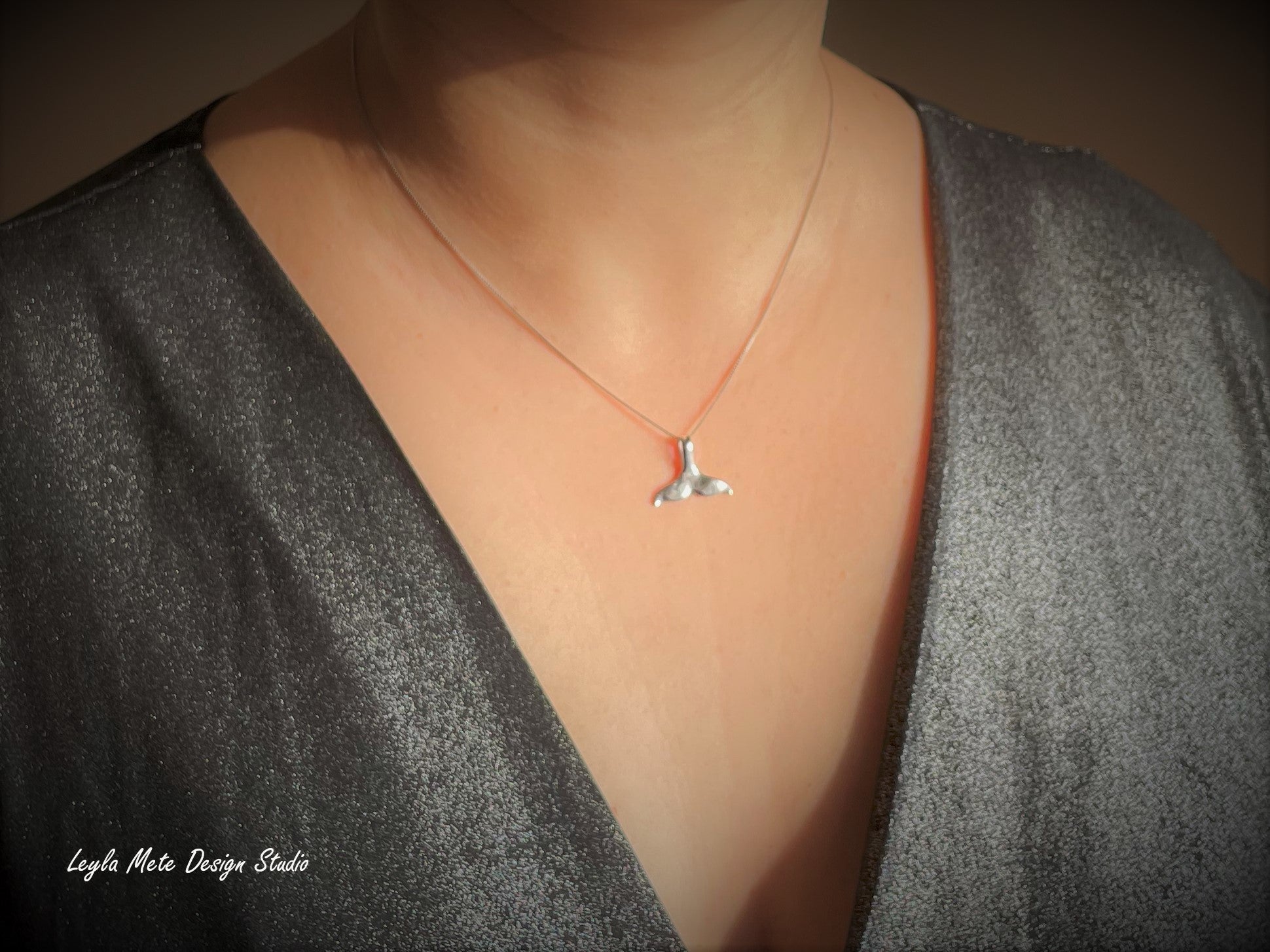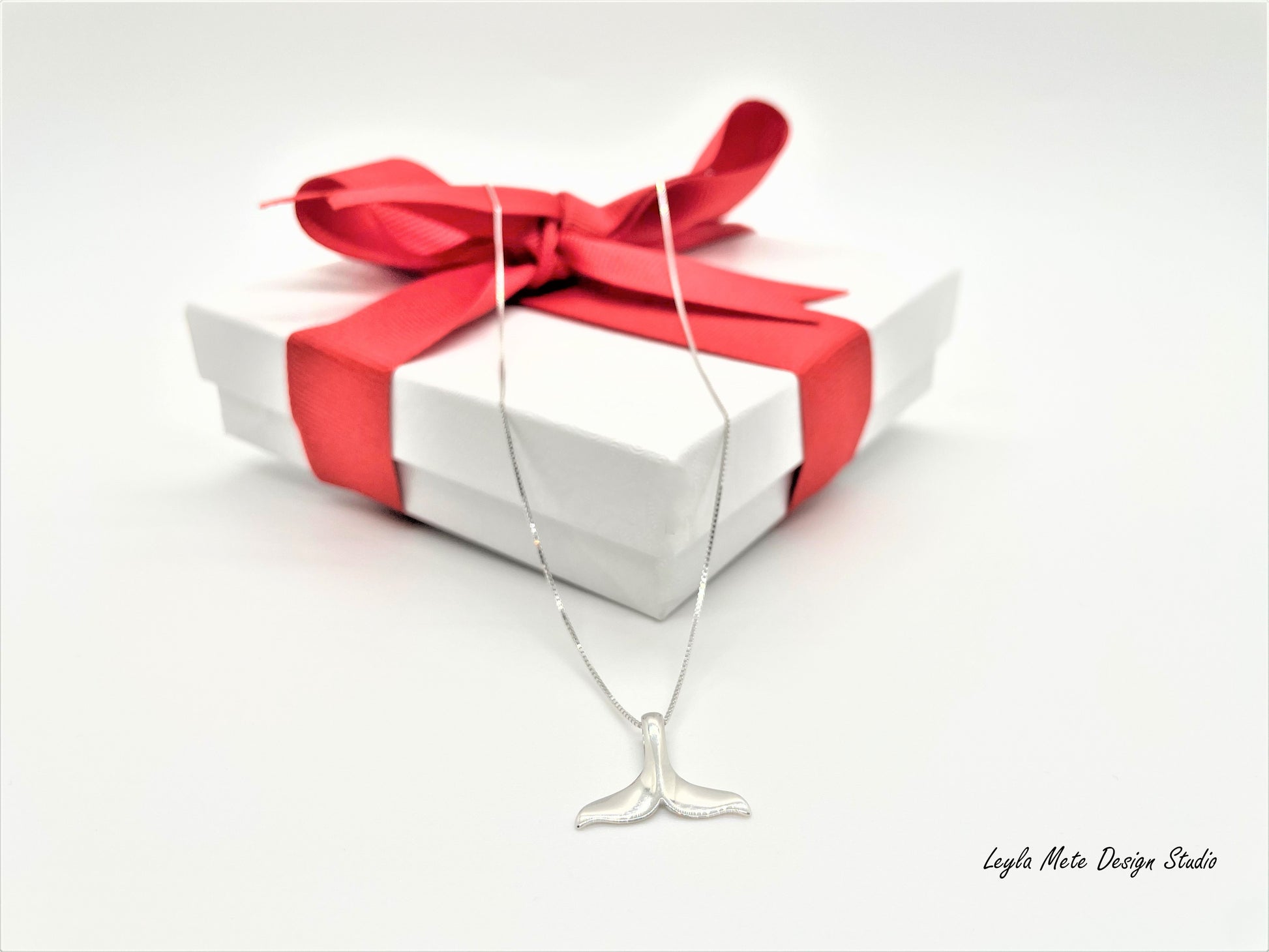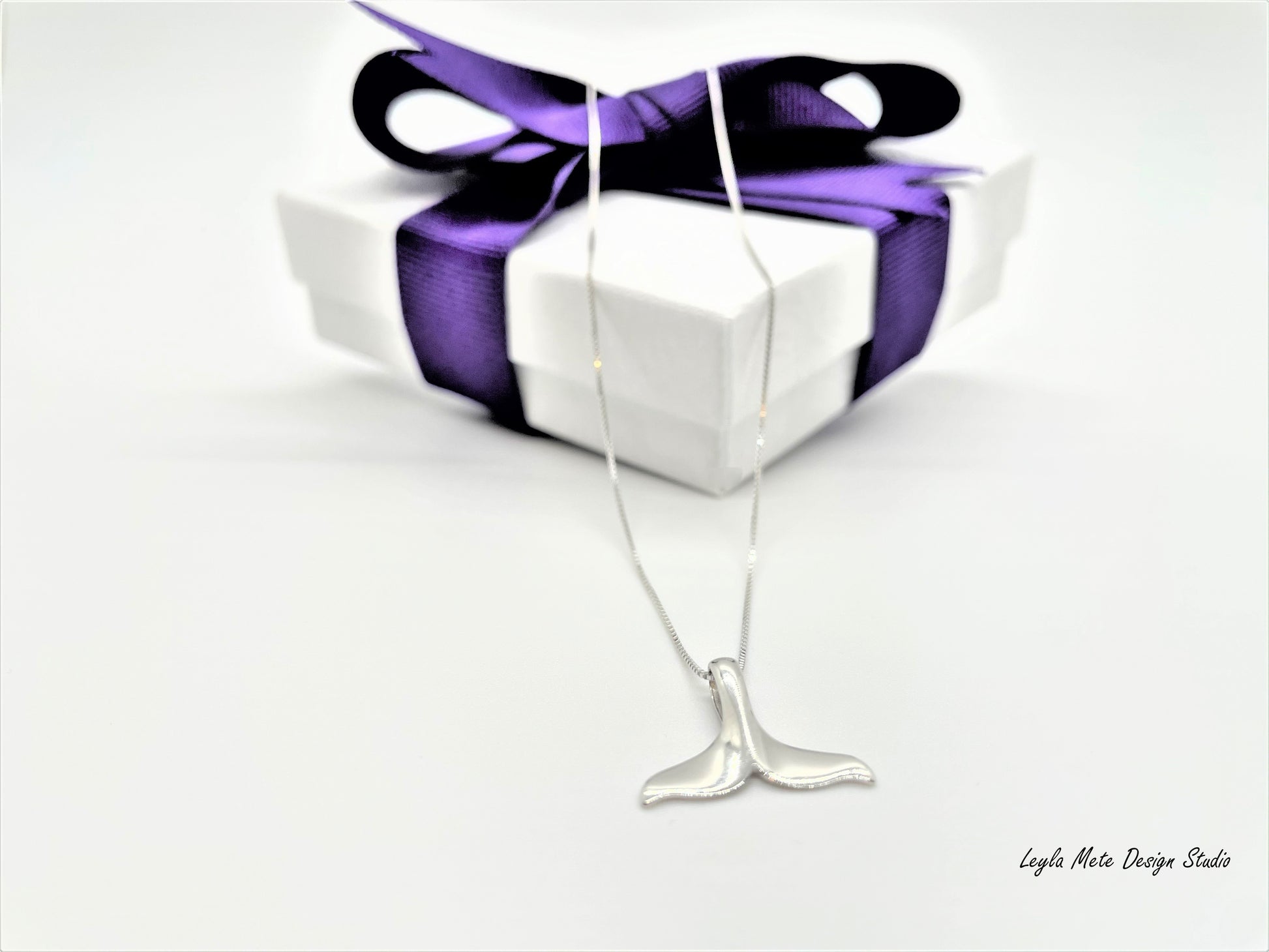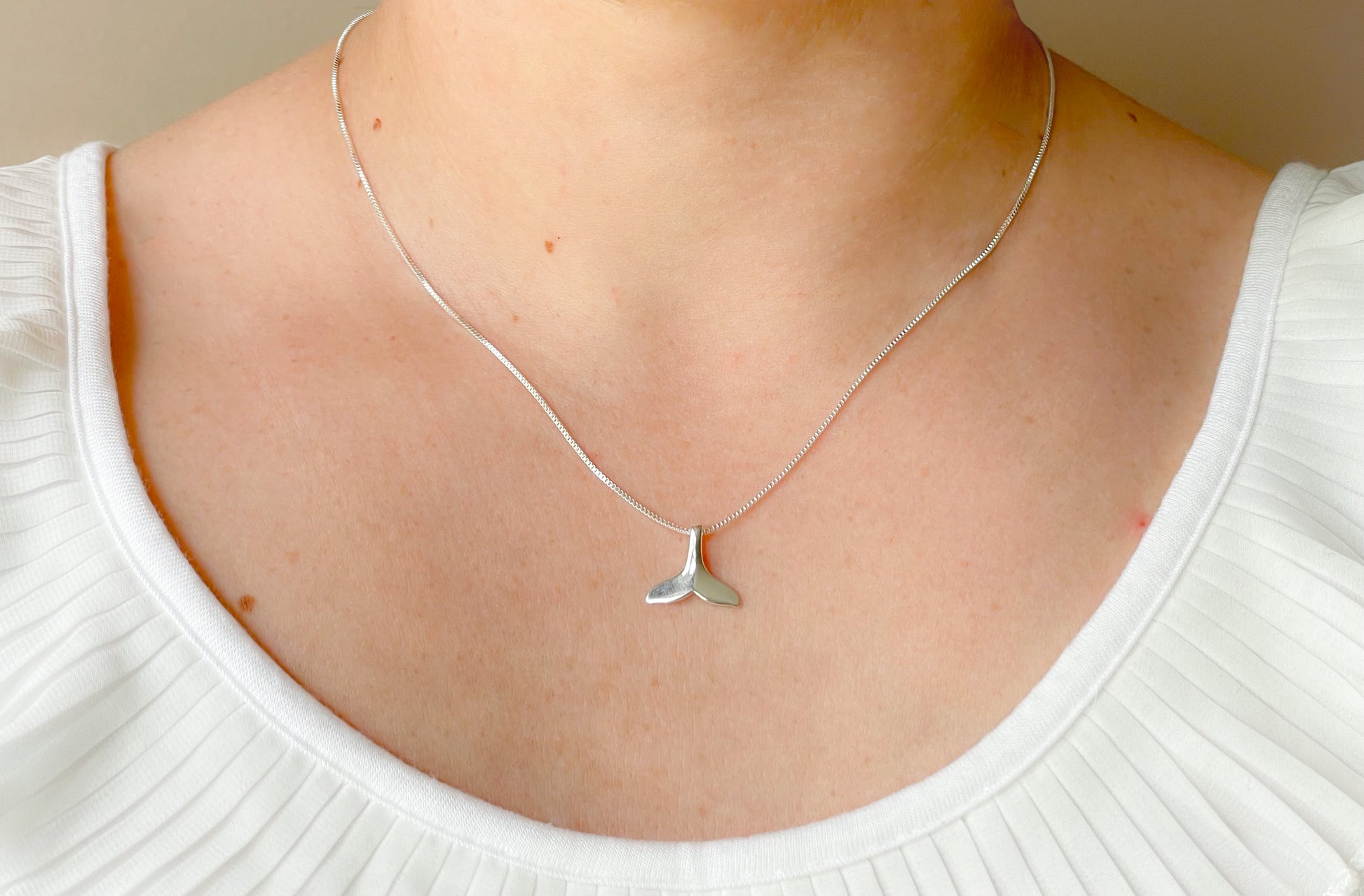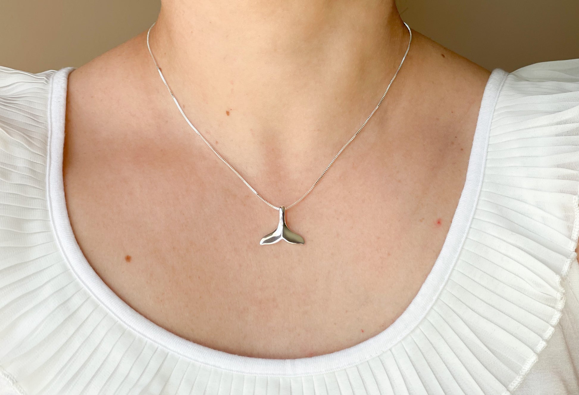 Emphasize your exceptional natural beauty through this unique sterling silver whale tail pendant necklace from our ocean collection. Whales are associated with wisdom, spiritual awareness, good luck, and long lasting love as the whale mates for life. The perfect precious gift for a loved one.