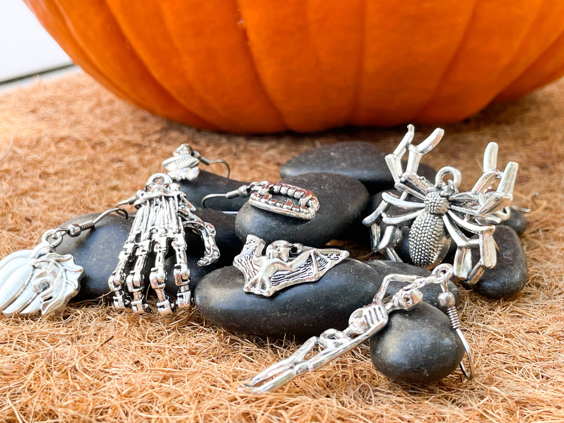 A statement piece for your Halloween look, these fun dangle earrings will add some spooky vibes to your earring collection. With witches, cauldrons, bats, spiders, jack-o'-lanterns, creepy hands, skeletons and skulls, we got you covered this Halloween!