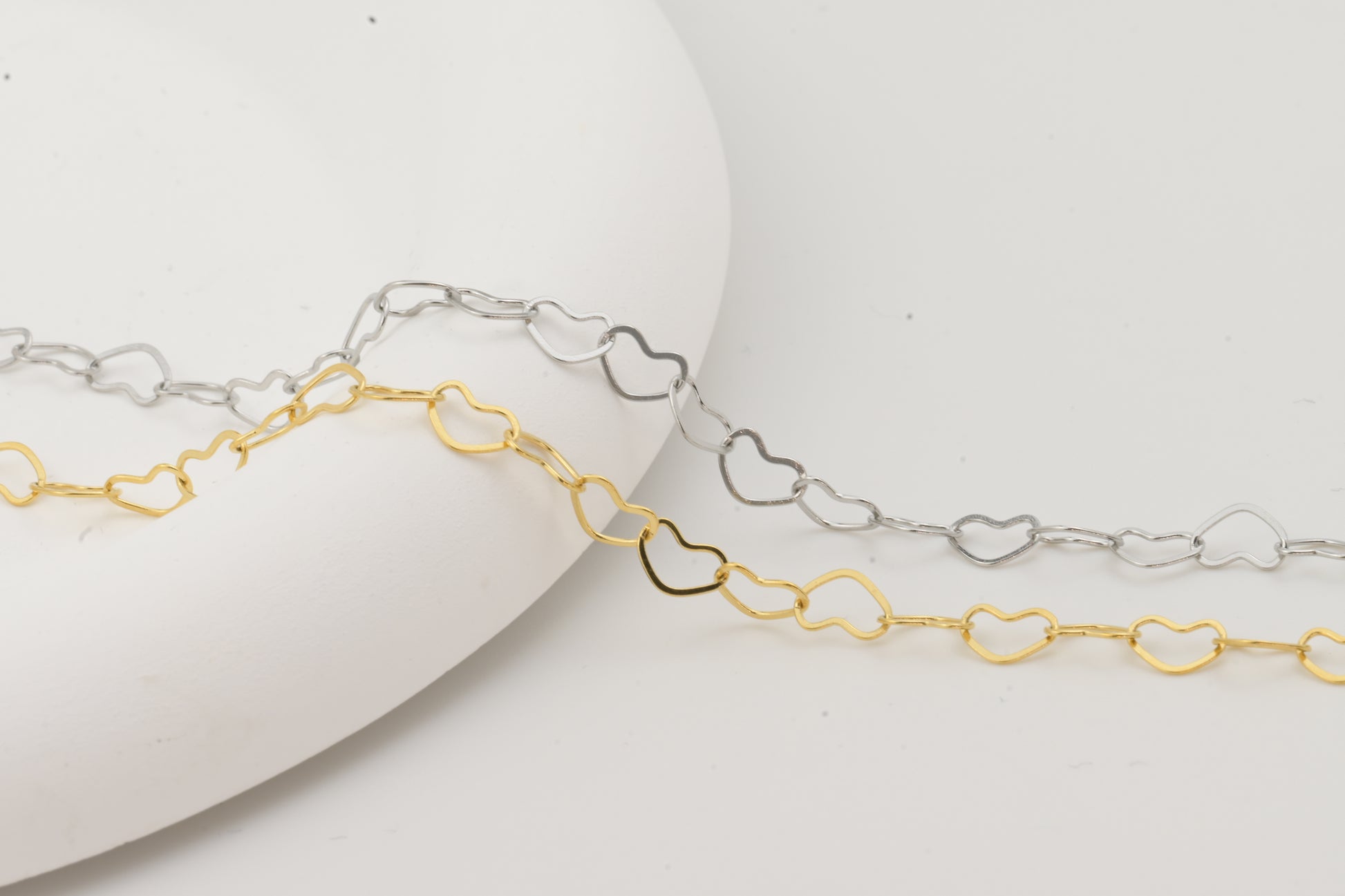 Elevate your style with our Heart Link Chain Bracelet collection. Crafted in stainless steel, available in gold and silver, and sterling silver in silver. The sterling silver variant boasts a 7.75" all-heart link chain with a charming puffy heart charm. Stainless steel options, measuring 6.5" with a 2.25" extender, offer a customizable fit. Versatile and chic, these bracelets are the perfect blend of sophistication and individuality.