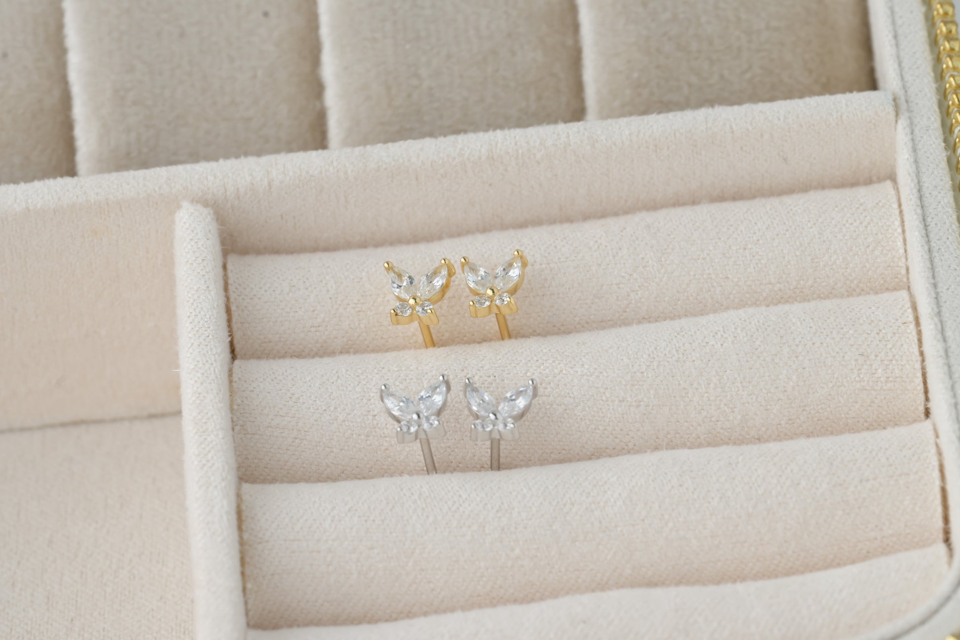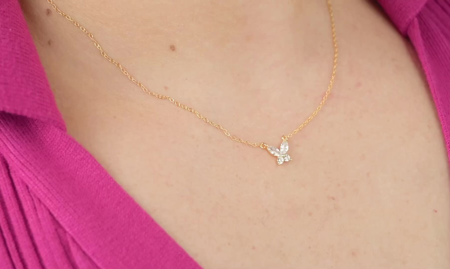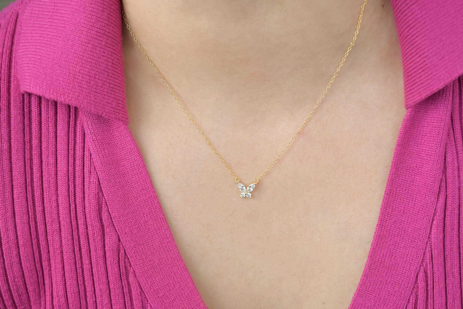 Elevate your style with our Butterfly Necklace, featuring an 8x10mm marquise butterfly charm on a 16.5-inch delicate cable chain. Crafted in sterling silver, available in silver and 14k gold finish, it's extendable up to 18.5 inches with a 2-inch extender. Complete the look with our matching Butterfly Studs.
