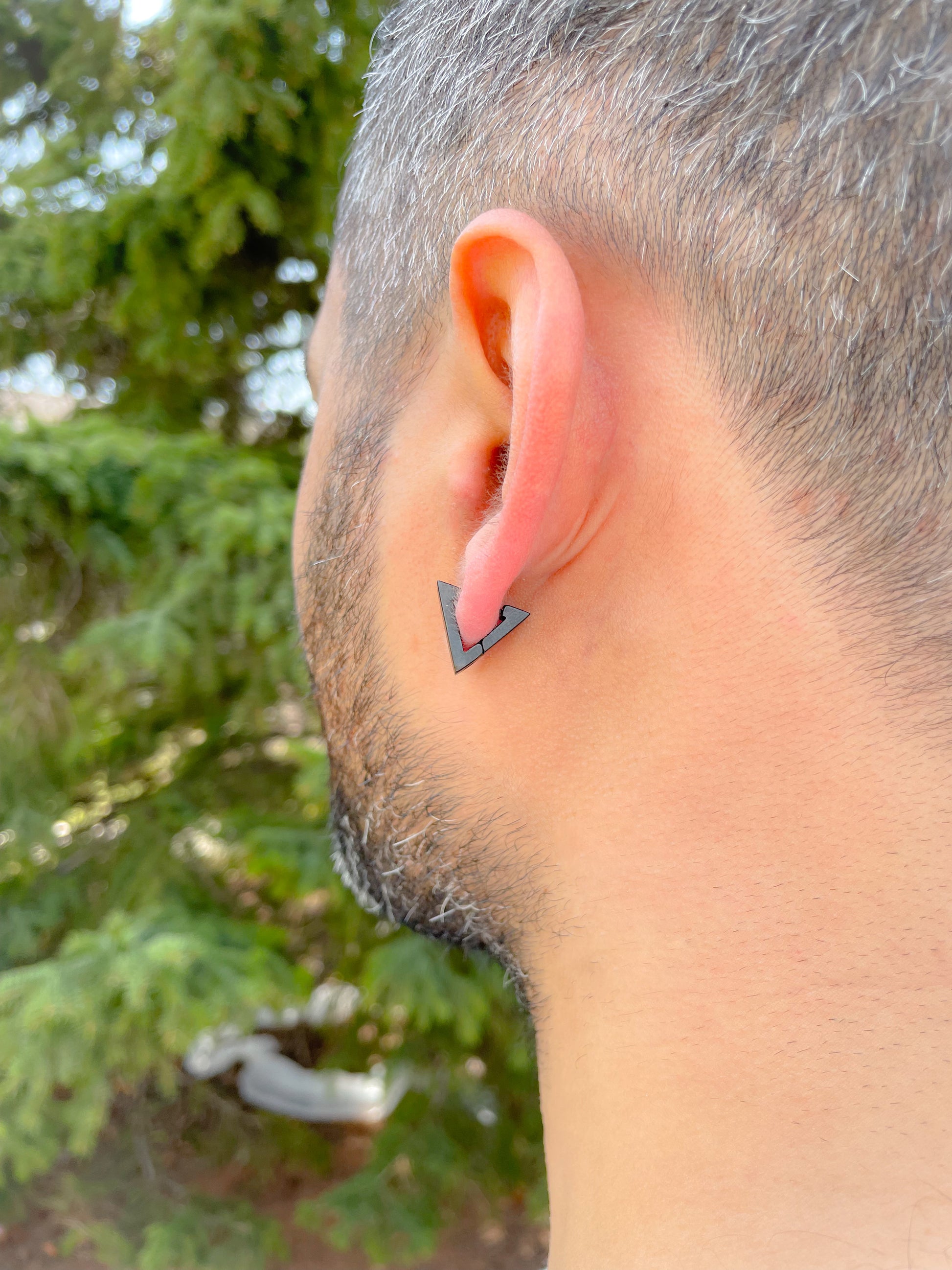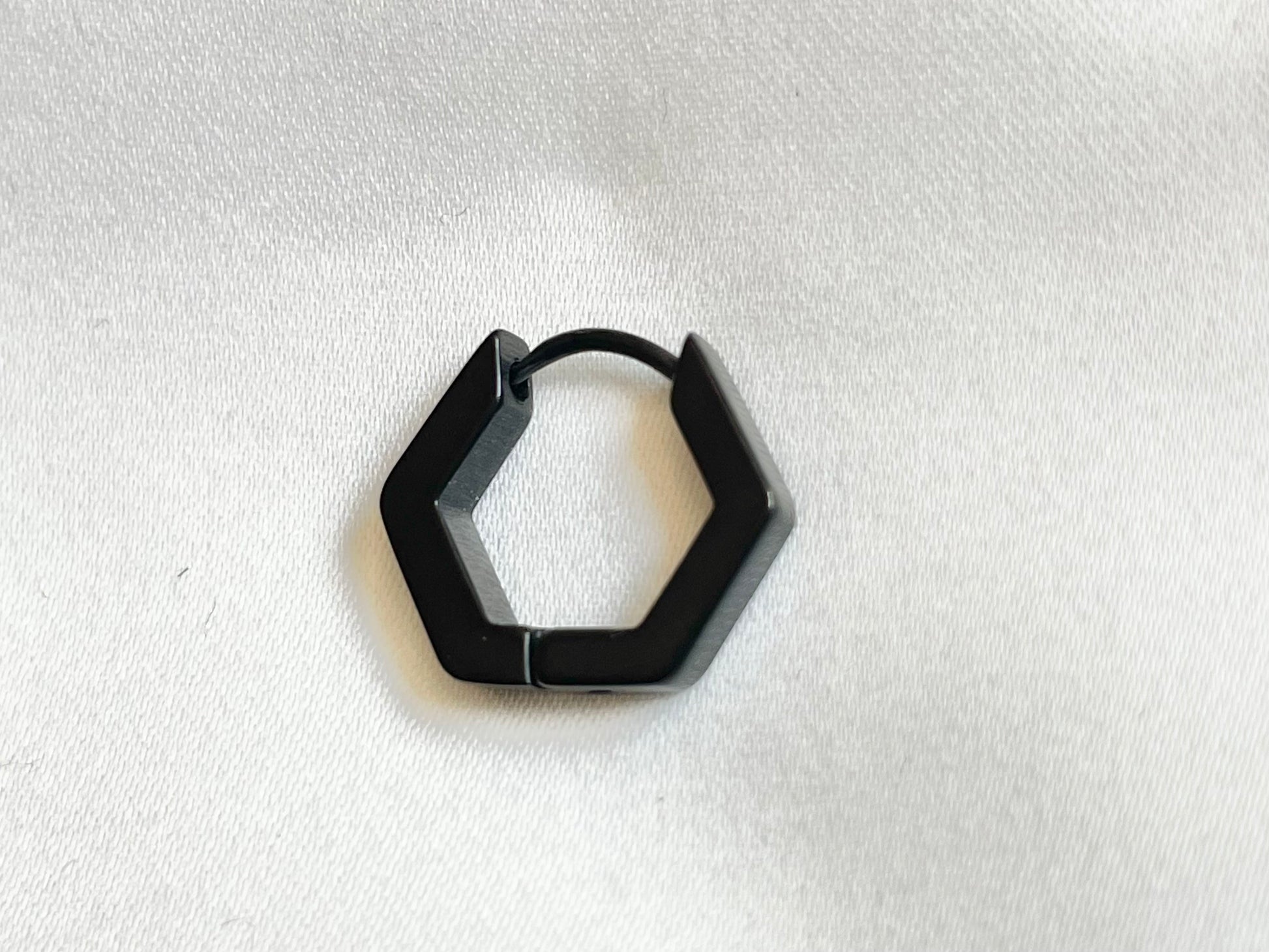 These earrings are a simple design with a touch of sophistication! Make a statement with your choice of geometric shape (square, triangle and hexagon) and complete your look. This design is made of stainless steel. Currently available in black only and sold as a pair.