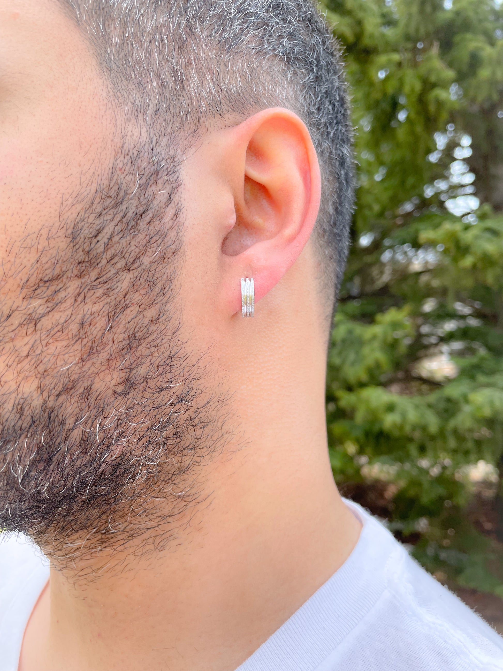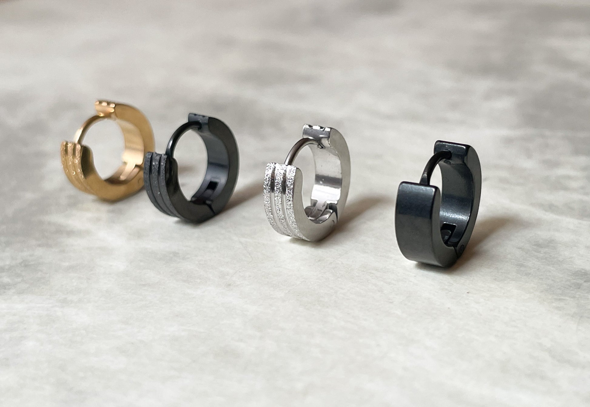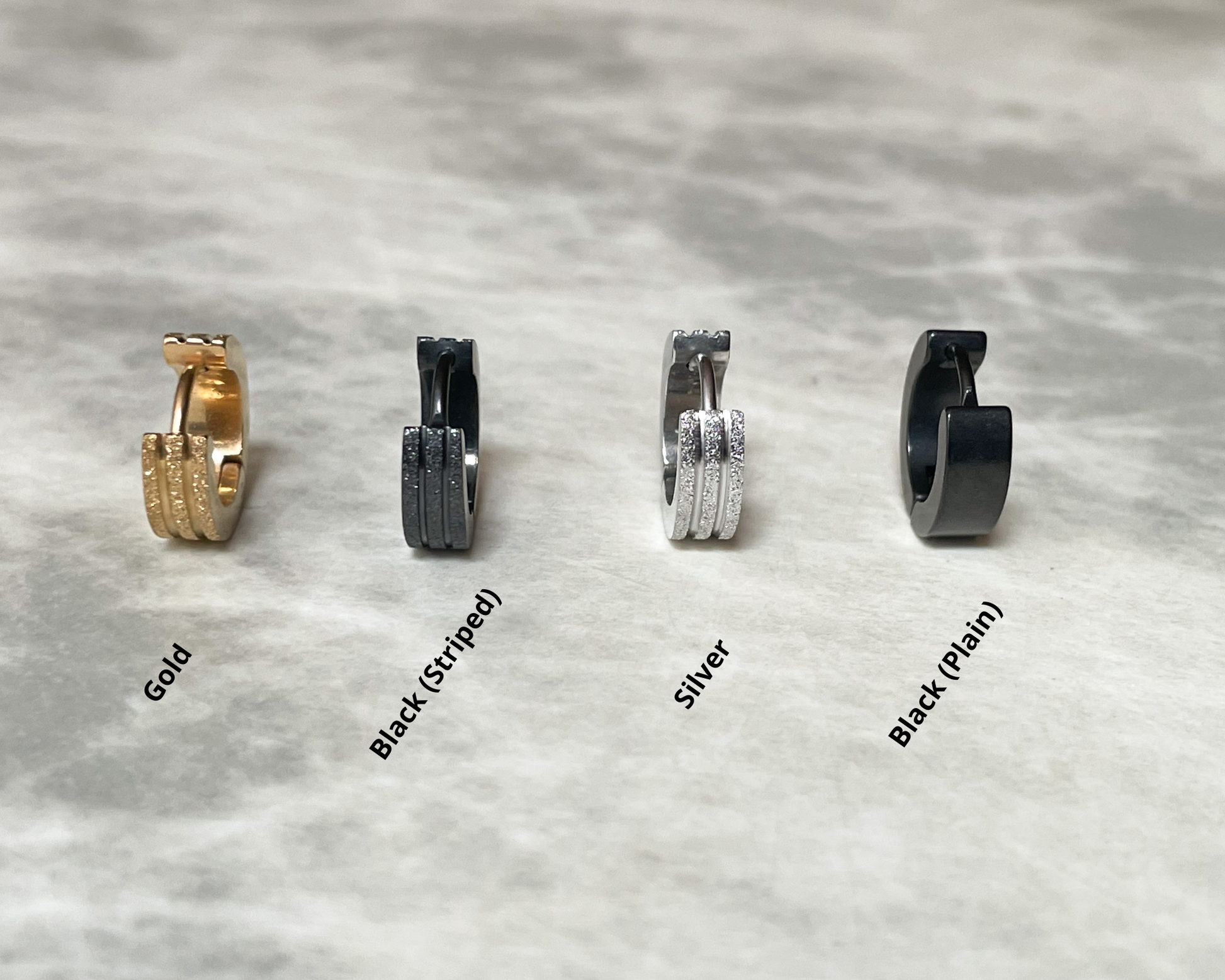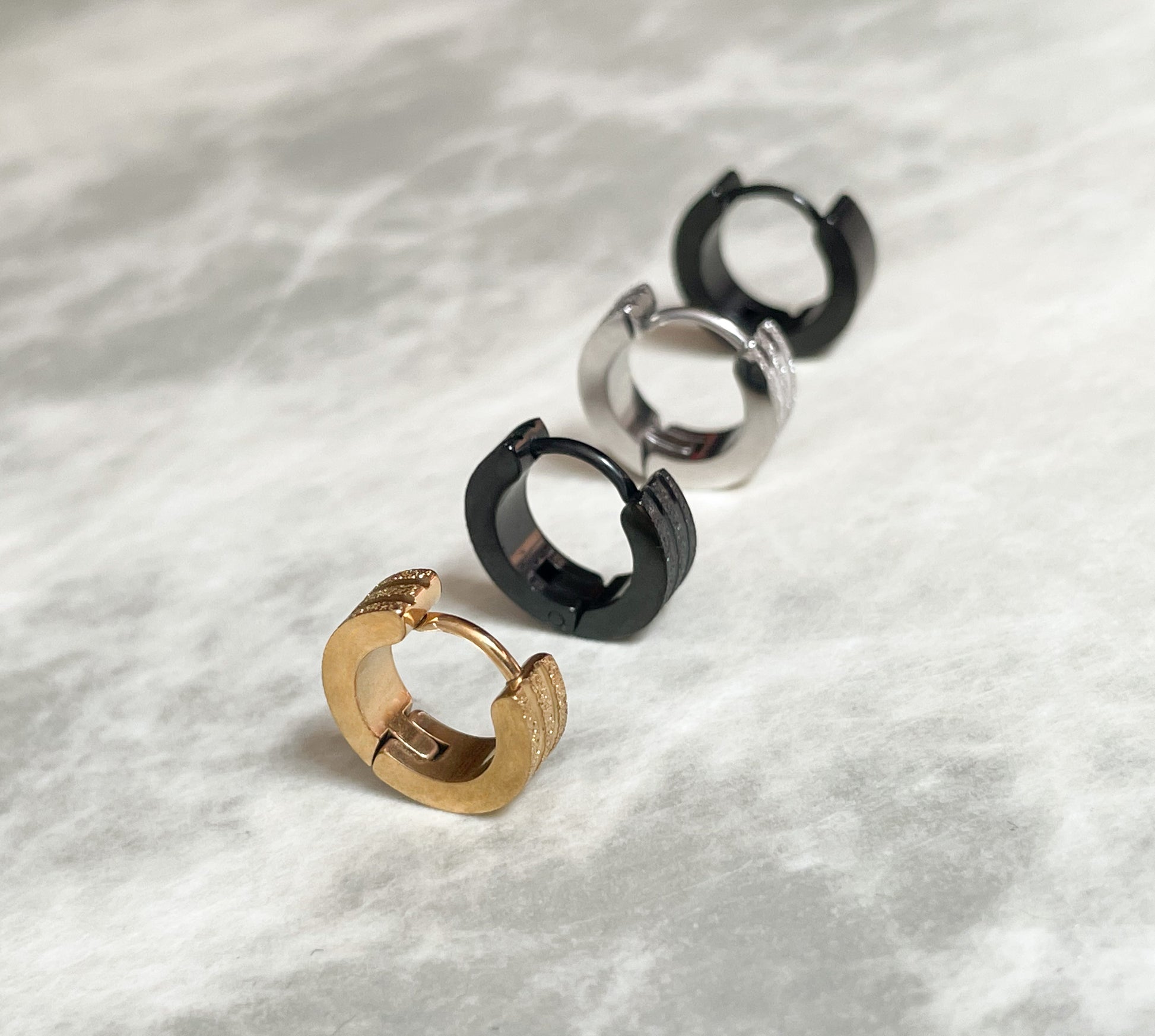 These huggie hoops are a simple piece with a lot of shine! Made of stainless steel in black, gold and silver finish, these earrings deliver sparkles from all angles. The black one is also available in satin finish without any sparkles. Sold as a pair.