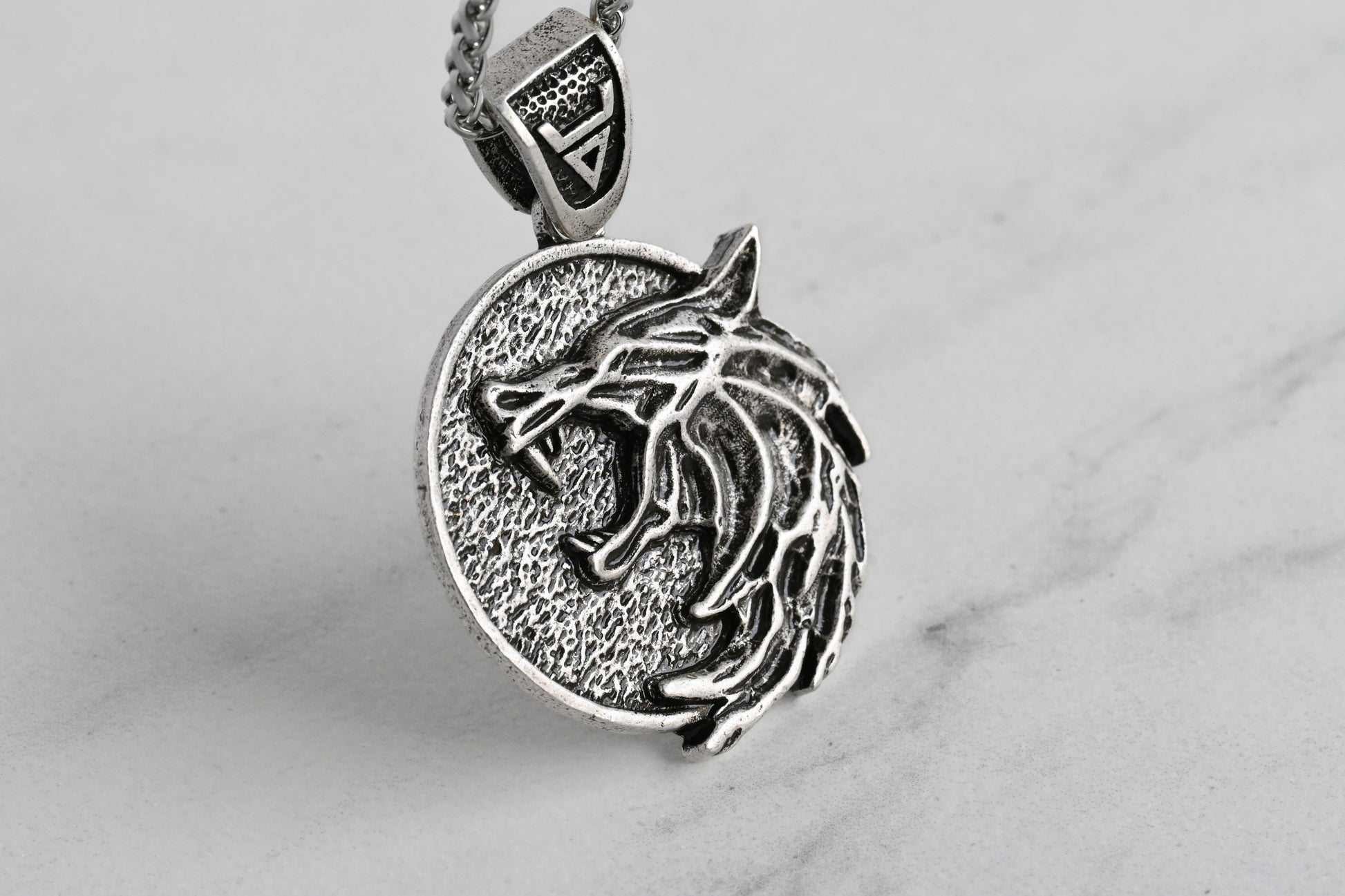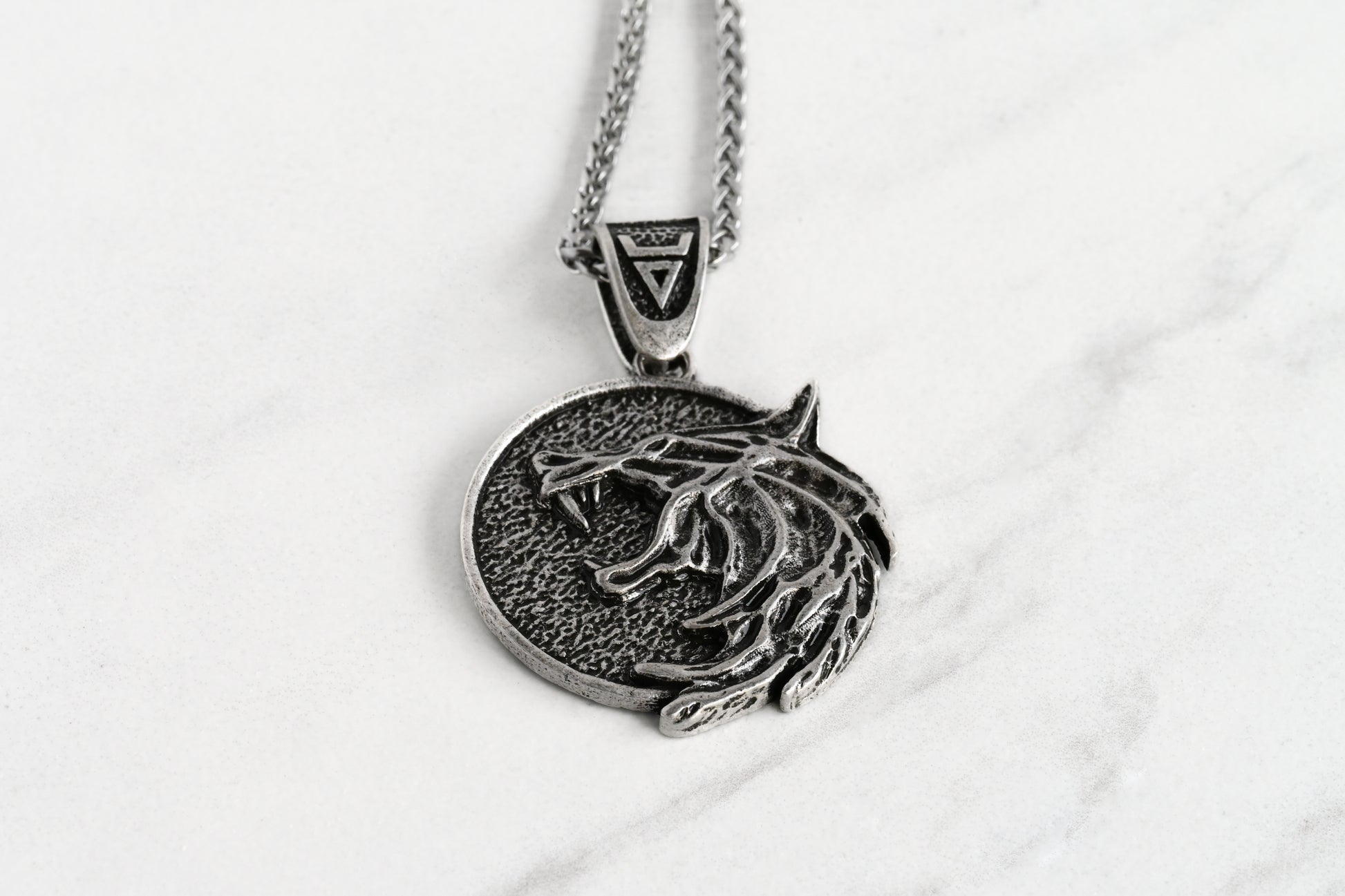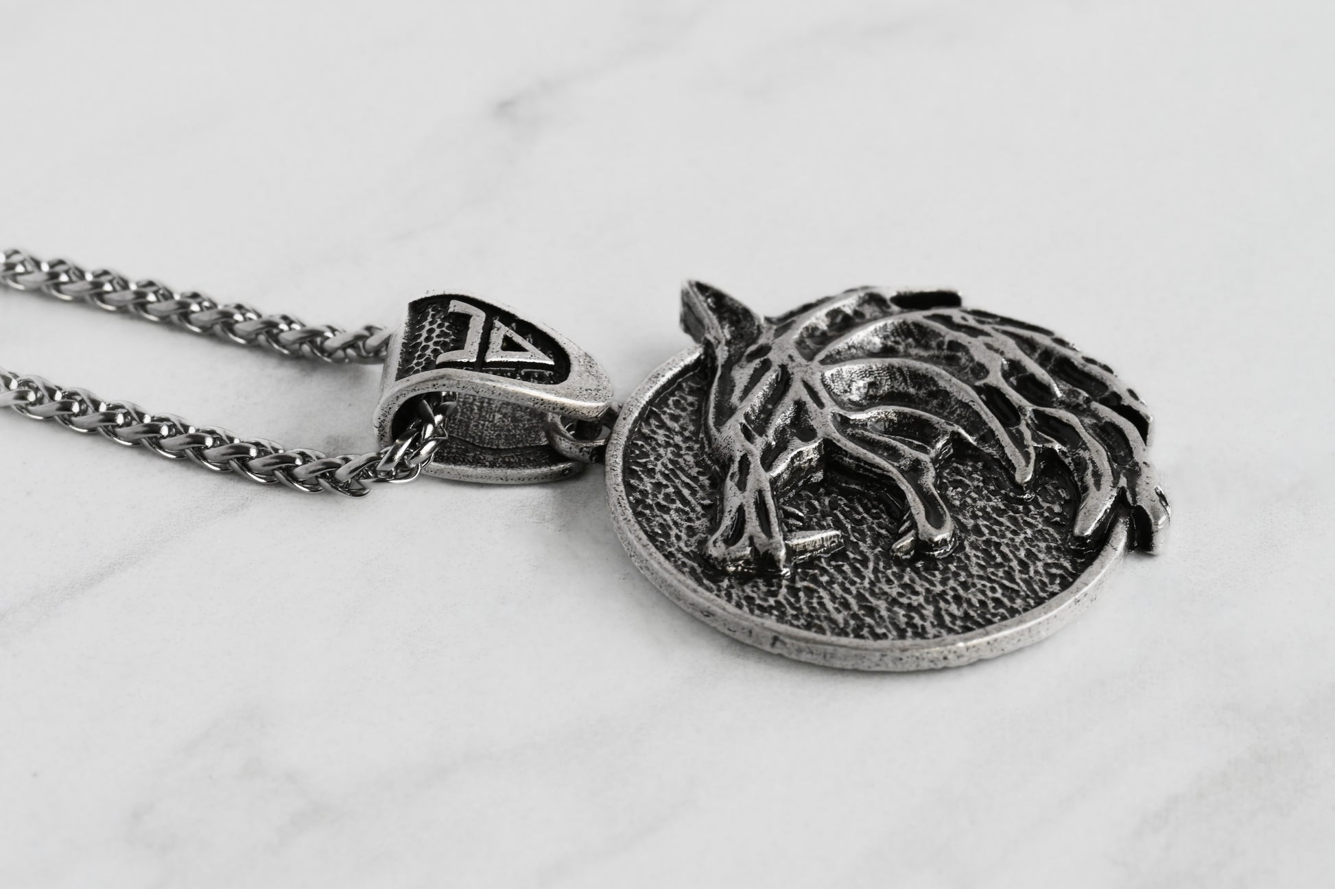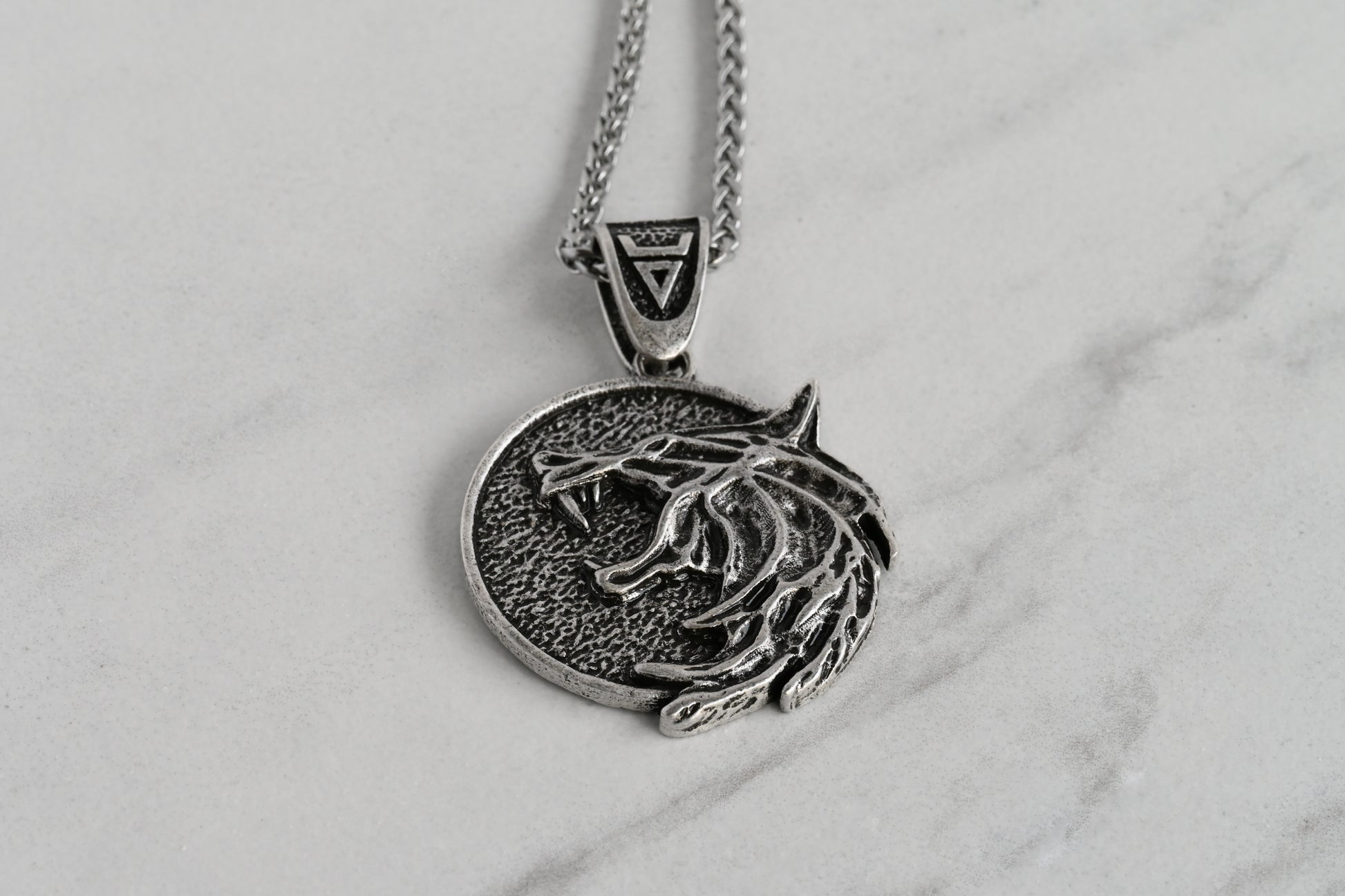 A vintage-style wolf head necklace that will bring you strength, luck and, of course, fun! This Fenrir necklace features a large medallion pendant along a thick wheat chain measuring 24 inches with an additional 2-inch extender. Add an initial letter charm for a personalized look. Perfect Valentine's gift for adventurous men.