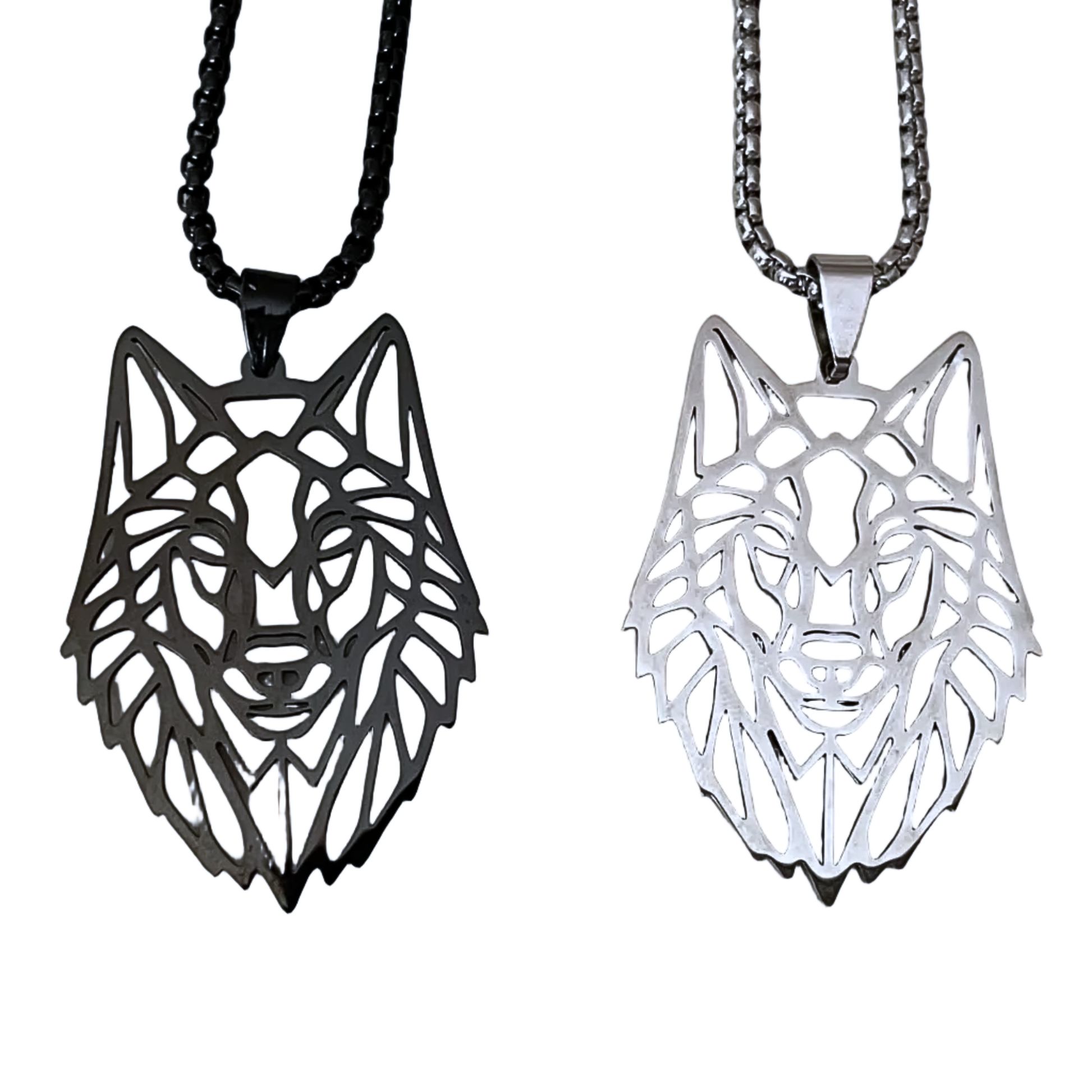 A powerful symbol of strength, loyalty and bravery, this wolf pendant will be a great companion . Crafted in stainless steel in silver and black finish, this waterproof Celtic design features a shiny flat wolf head measuring 45x30 mm and a nonadjustable 23.5 inch rounded box chain. Add an initial charm next to the wolf pendant for a personalized touch!