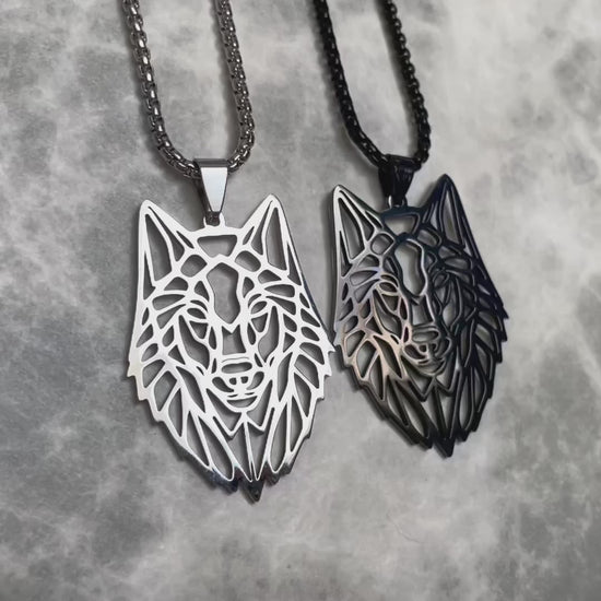 Men's Wolf Necklace, Viking Jewelry for Men, Stainless Steel, Black and Silver, 24"