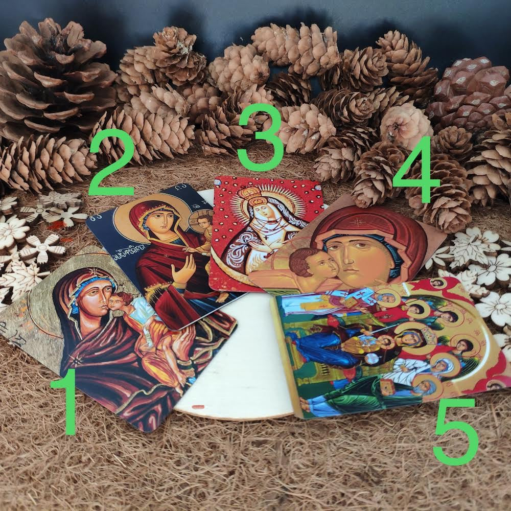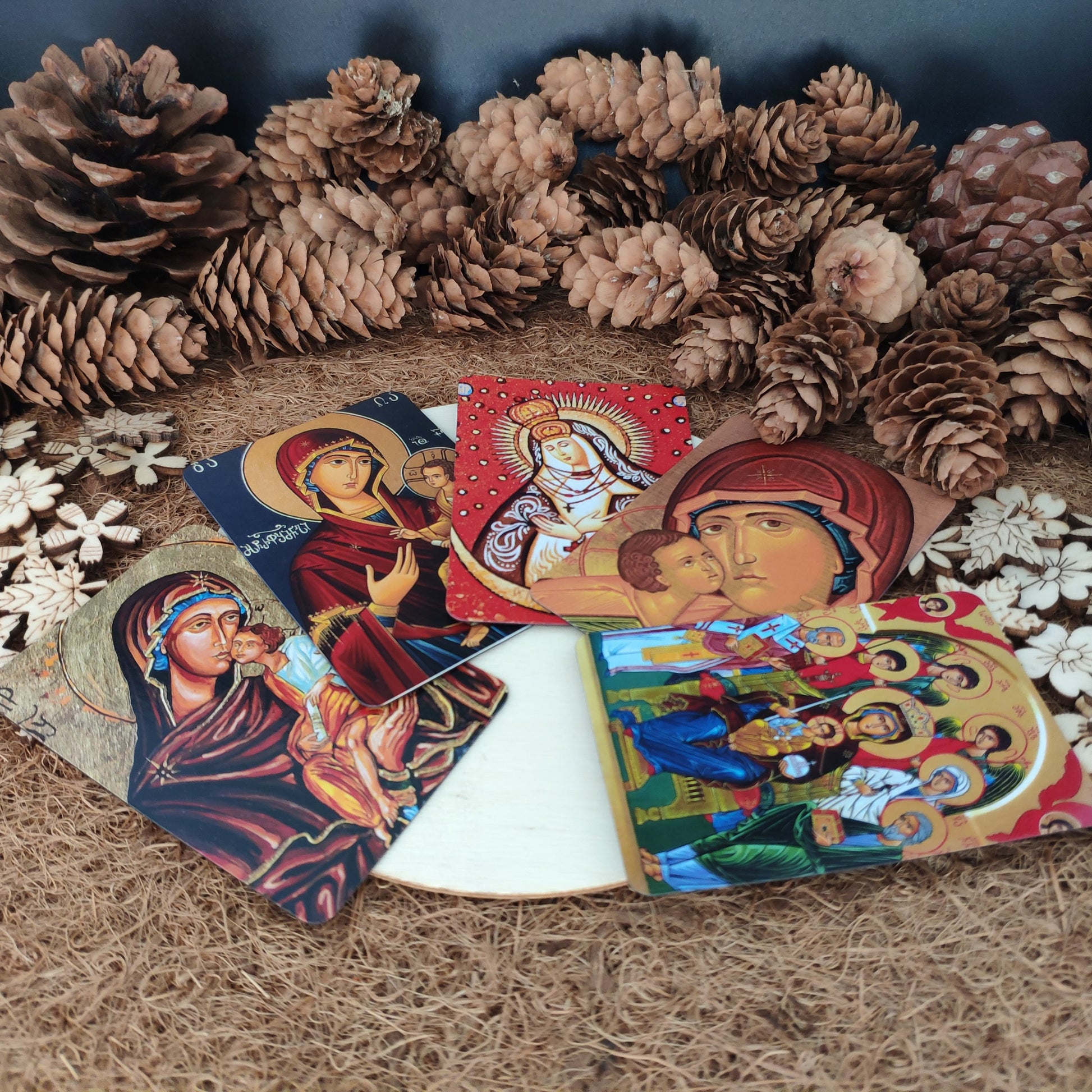 Holy pictures of Jesus Christ and Mother Mary with a magnet back. Choose from four different designs. An affordable yet meaningful Christmas gift.