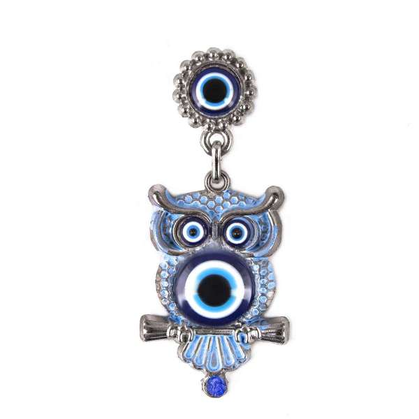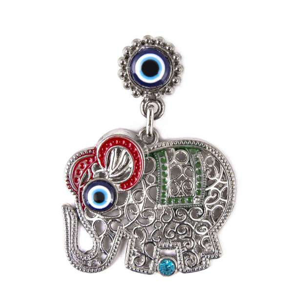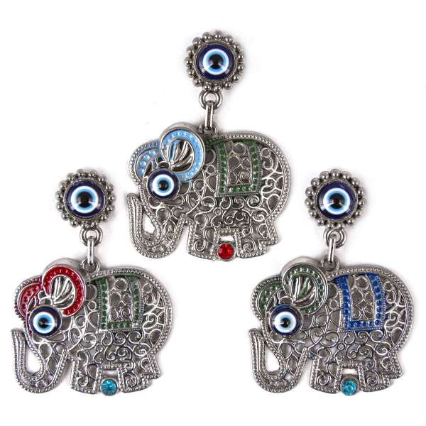 The joy of nature and the protective symbol of the evil eye come together in these playful owl and elephant fridge magnets. Handcrafted with metal, these evil eye decoration objects feature owls and elephants dangling from a round evil eye charm which the magnet is attached to. The colors of the animals vary and you will receive a random color unless you specify the color you want.