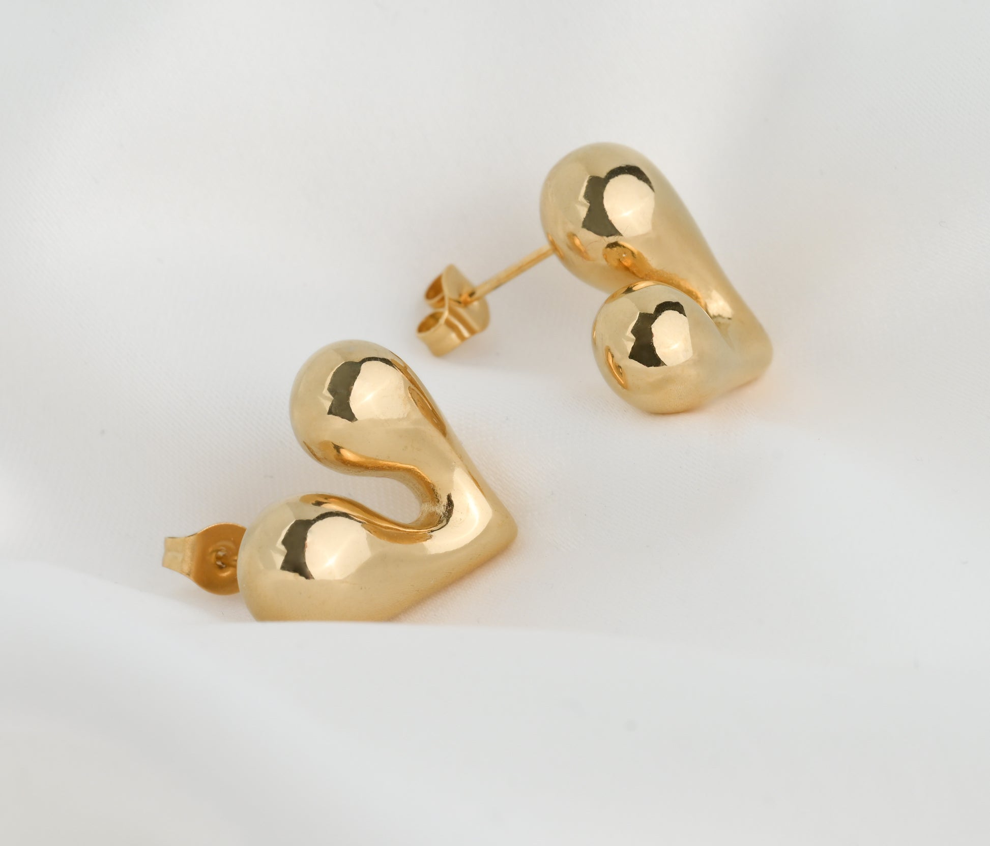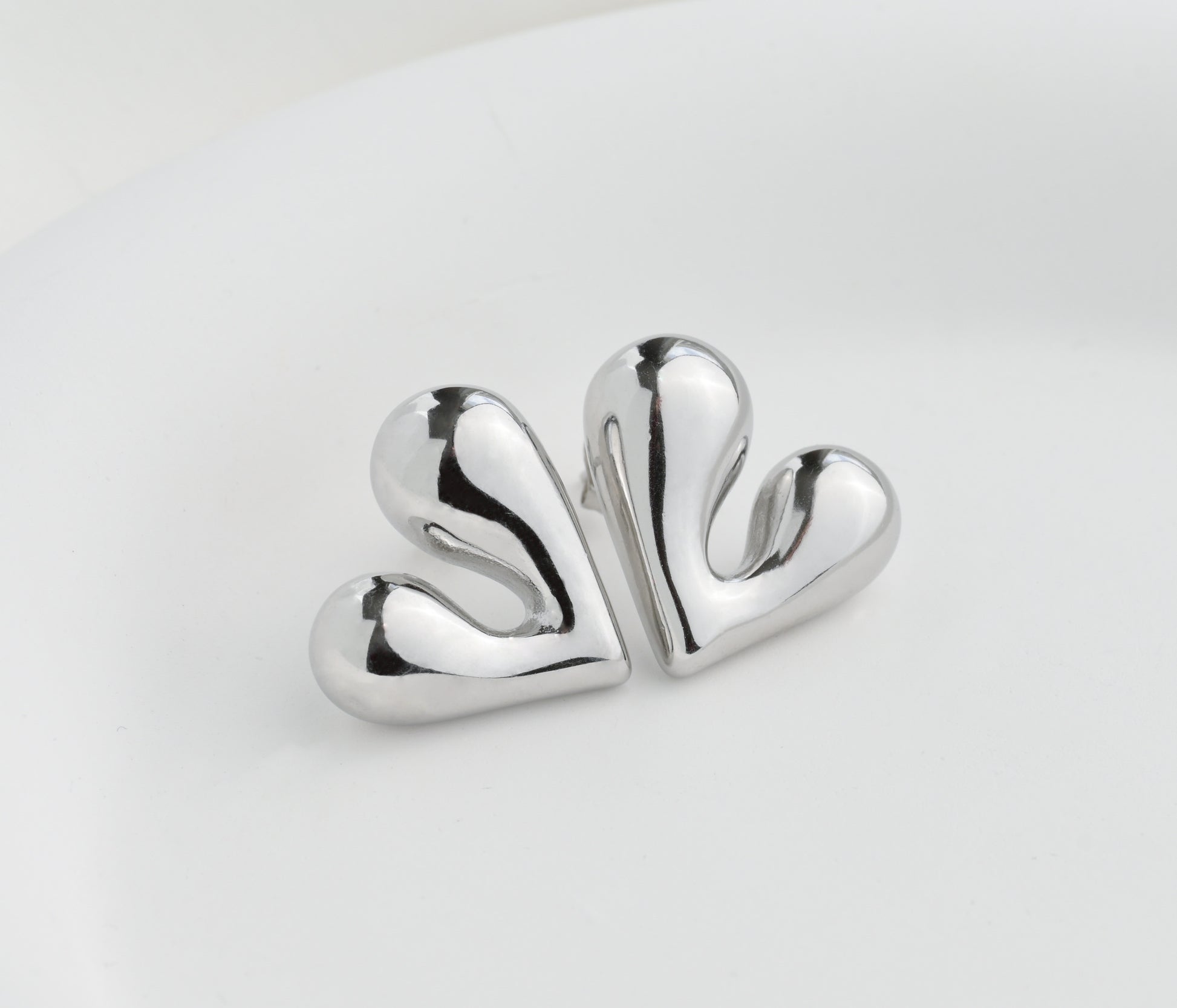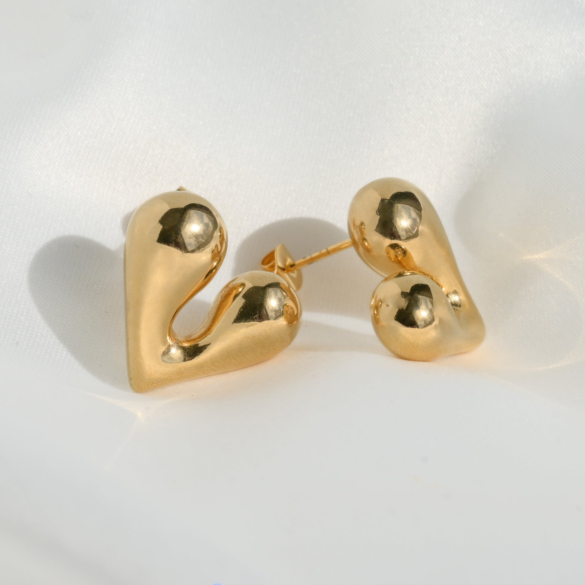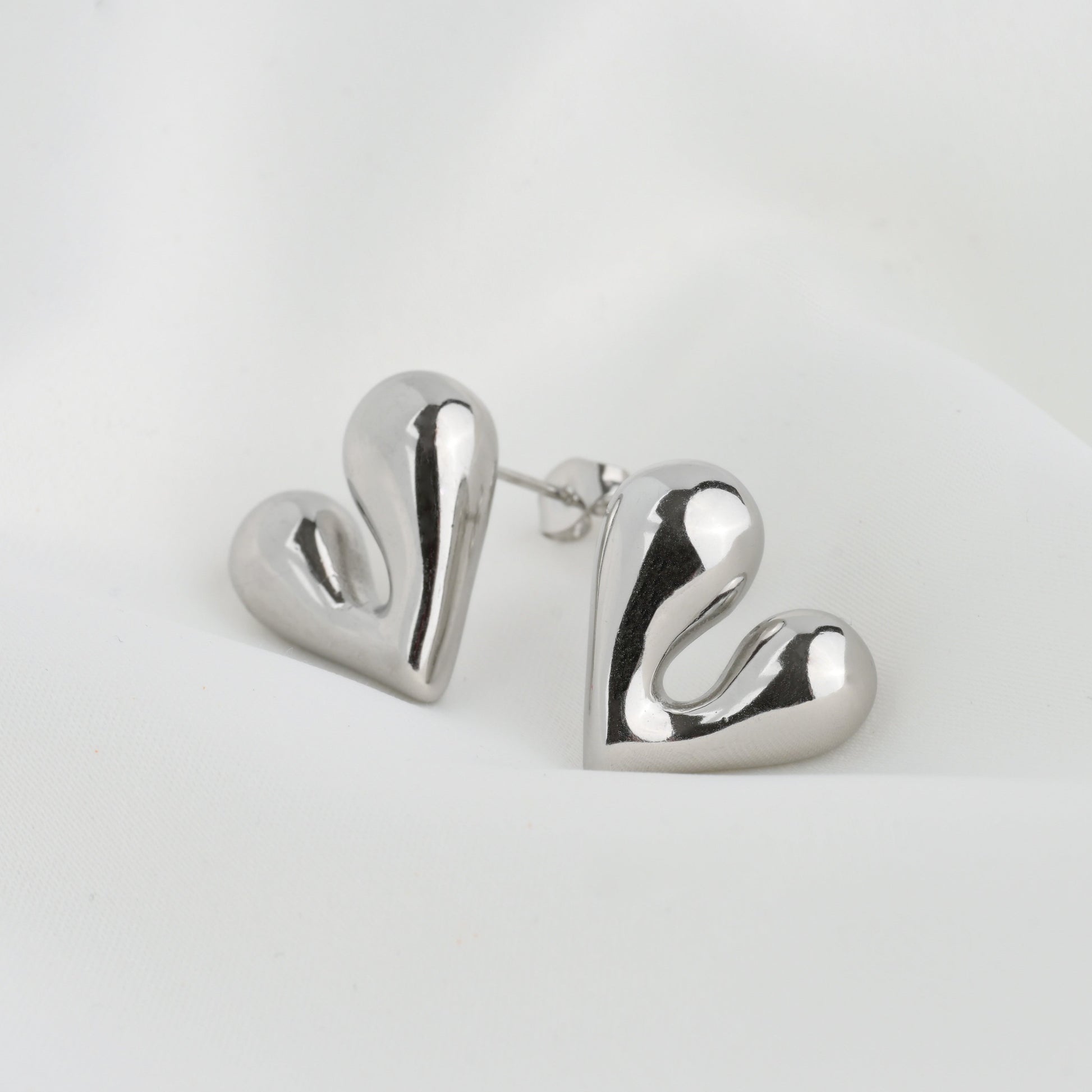 Chunky medium heart earrings offer bold style. These puffed heart drop earrings, available in gold and silver, add a playful touch to any outfit.