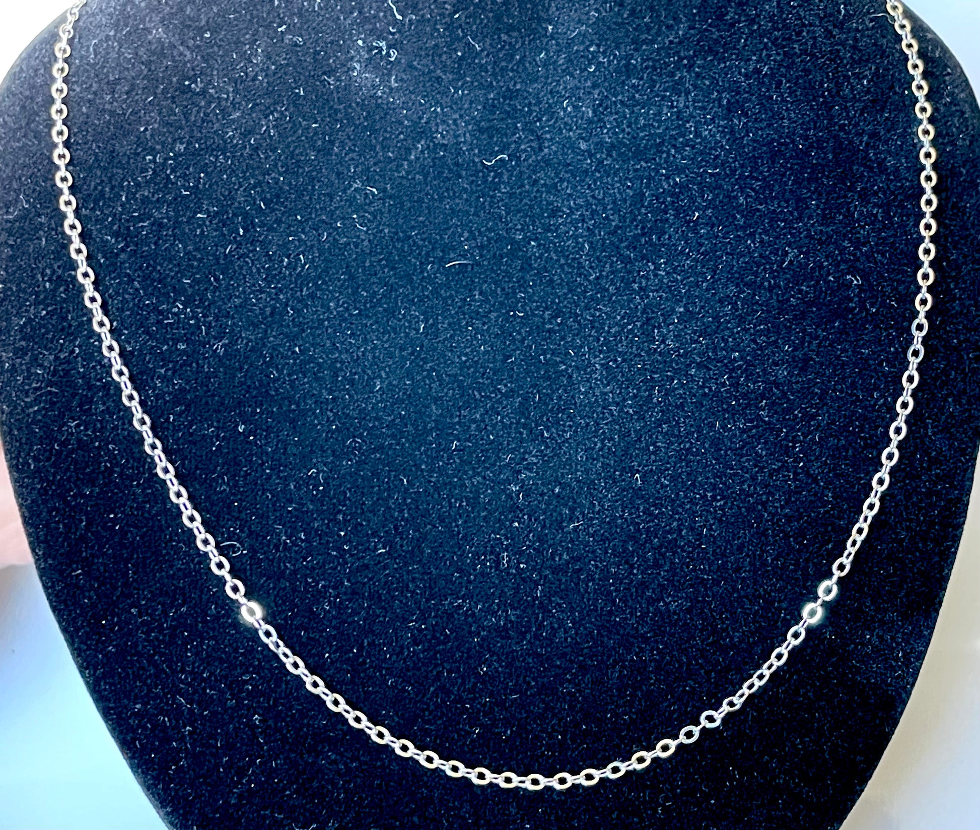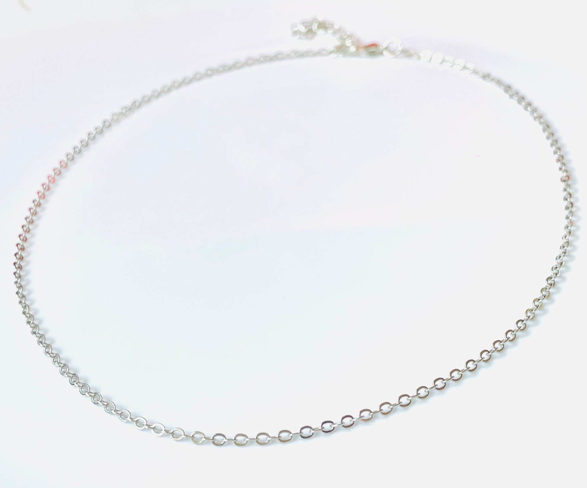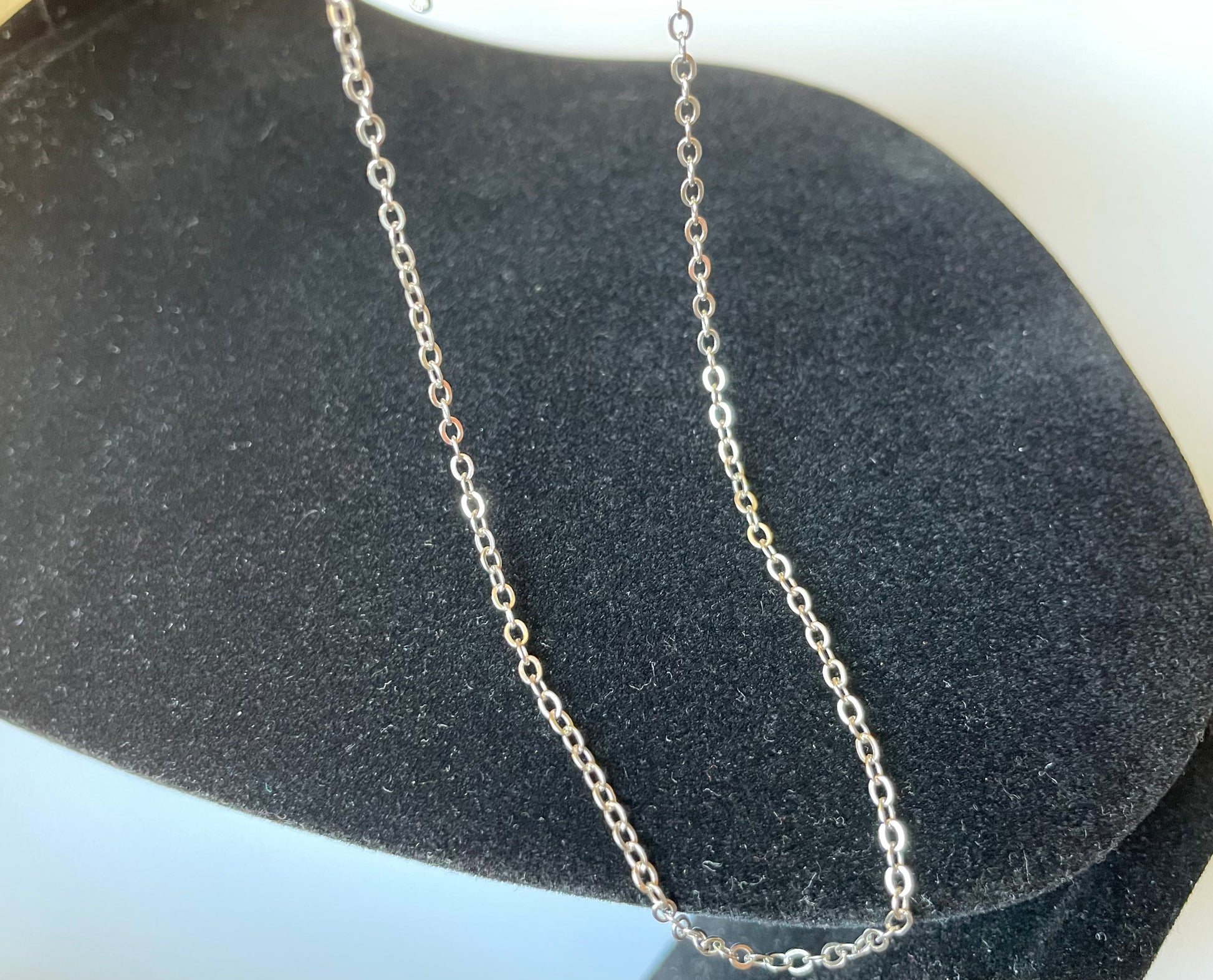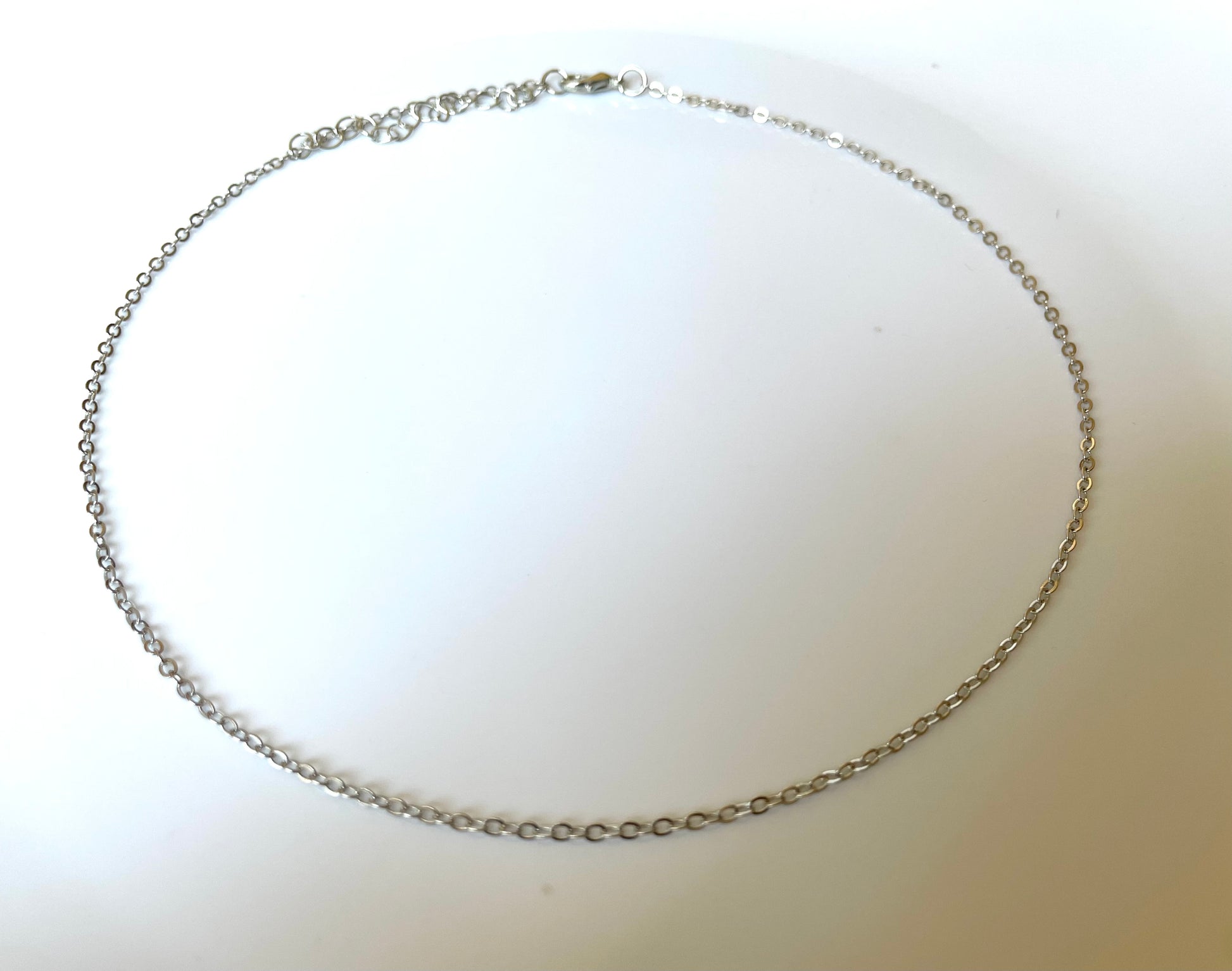 Silver Cable Chain Necklaces with 16 inch and 18 inch length options. Available in stainless steel and copper alloy.