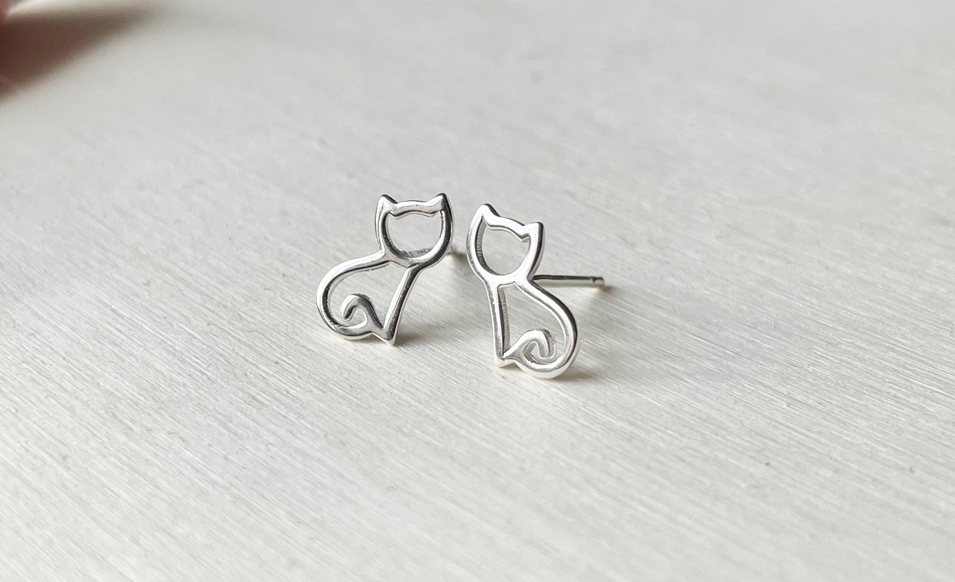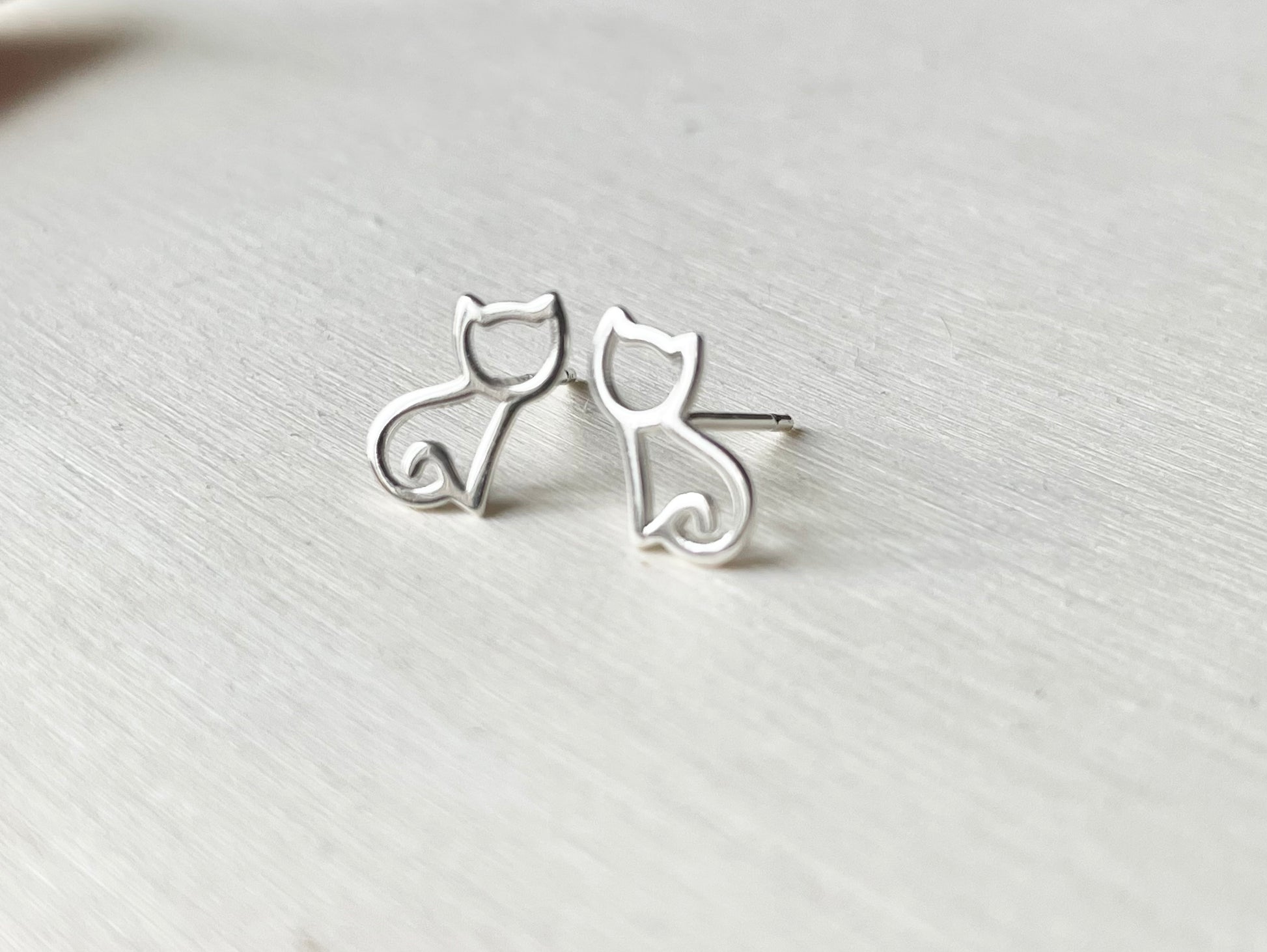 Fashioned in sterling silver, these cute yet subtle cat stud earrings will let you love your cat whenever and wherever. Puuuurfect jewelry gift for cat lovers.