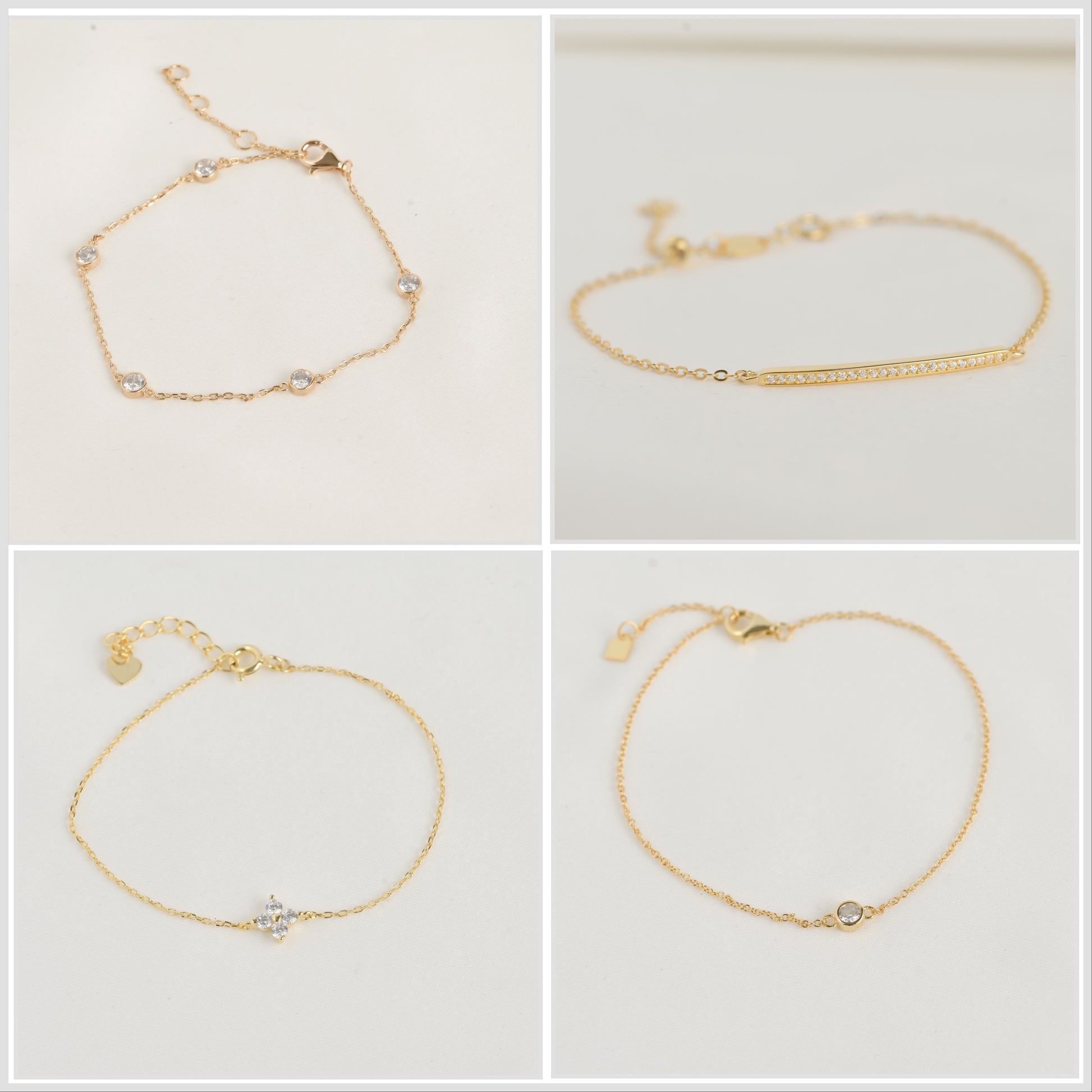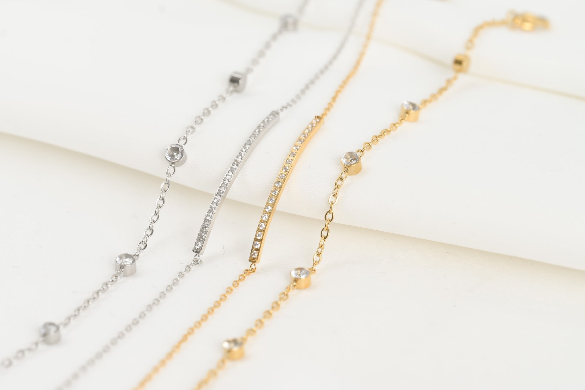 Elevate your wrist game with our Elegant Diamond Bracelets Collection. Crafted with precision in sterling silver and stainless steel, choose between exquisite gold and silver options. Featuring a 4-leaf clover, bezel, pavé diamond bar, and bezel station designs, each bracelet offers a unique charm. These dainty and sleek pieces come in varying lengths, allowing you to create the perfect stack for any occasion. Kindly scroll below the item description to find detailed information regarding the materials and lengths of our bracelets before making your purchase. We want to ensure you have all the necessary details for a confident and satisfying shopping experience.