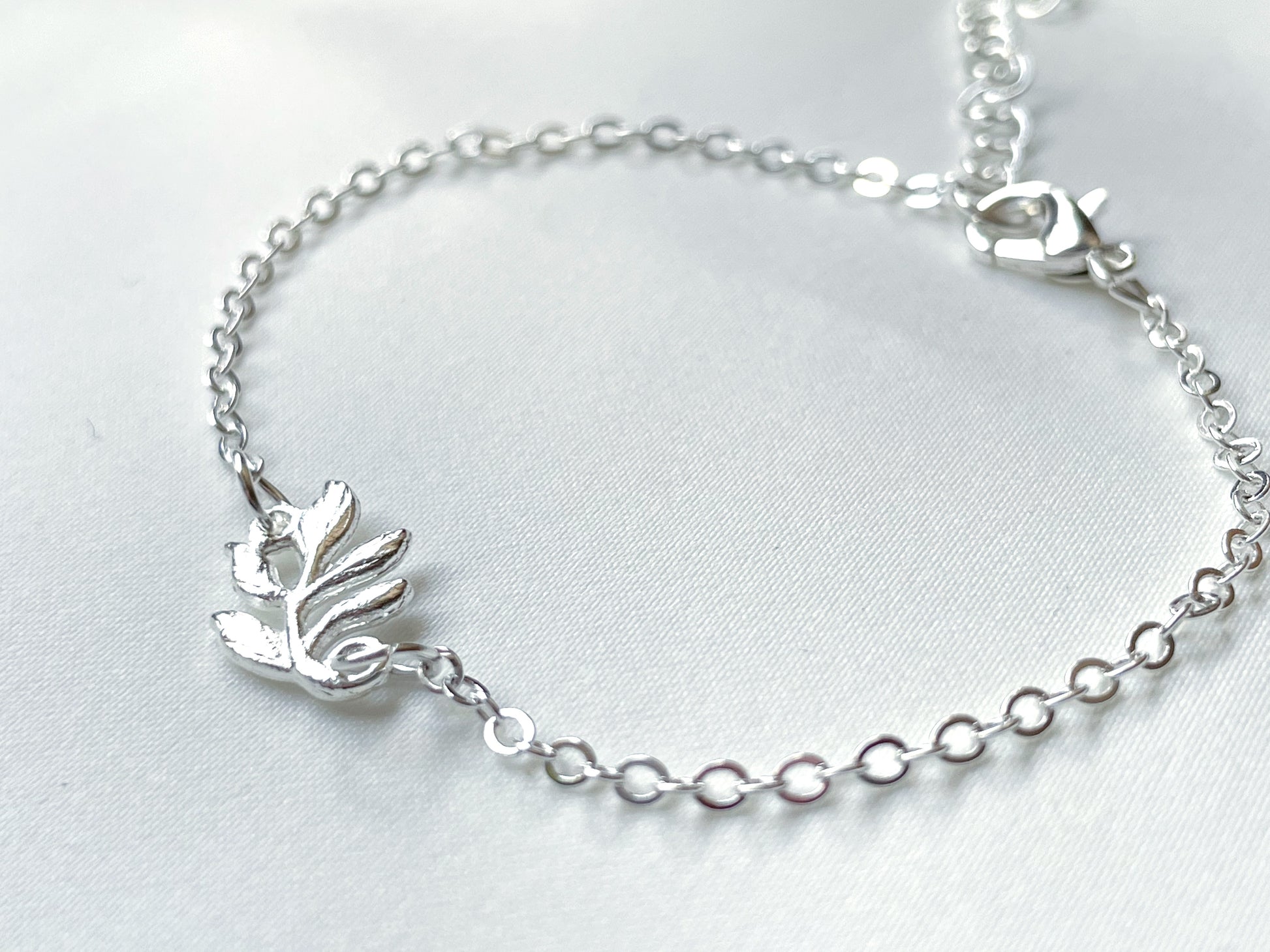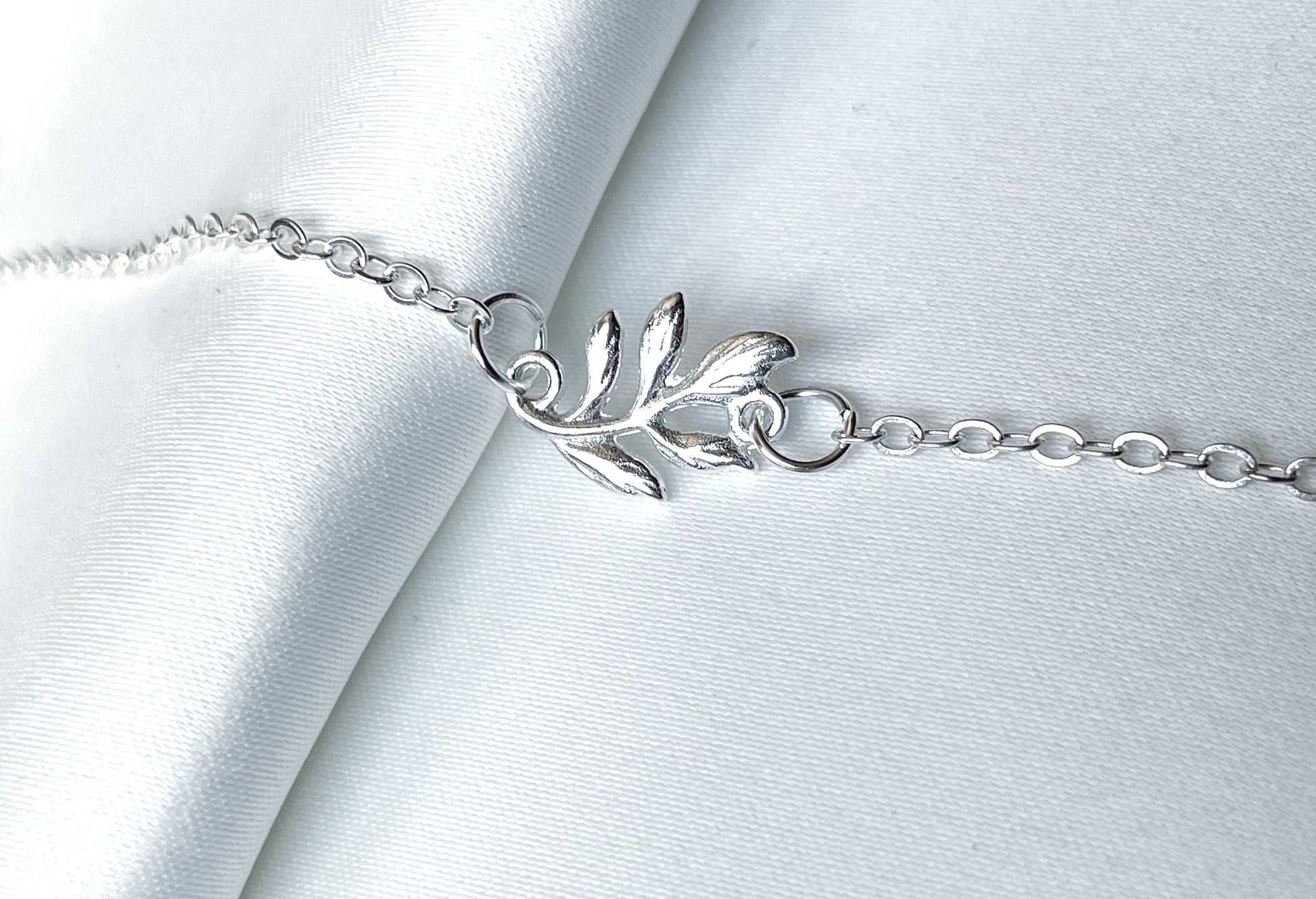 This ankle bracelet is a combination of nature's beauty and delicate design. Minimalist and naturalistic in style, this dainty anklet features a tropical leaf stationed along a delicate silver chain. Available in bracelet size too! Remember to add an initial charm for a personalized touch.