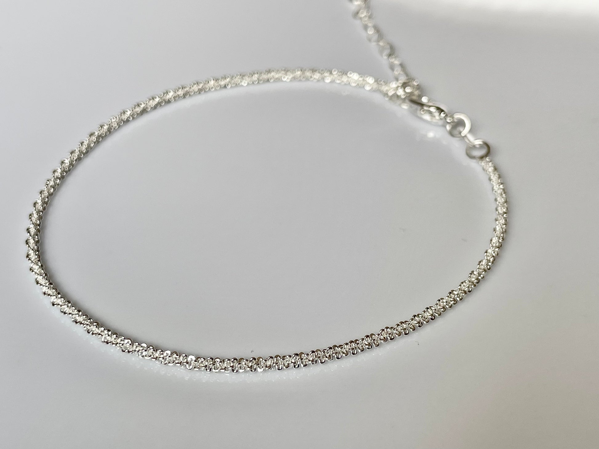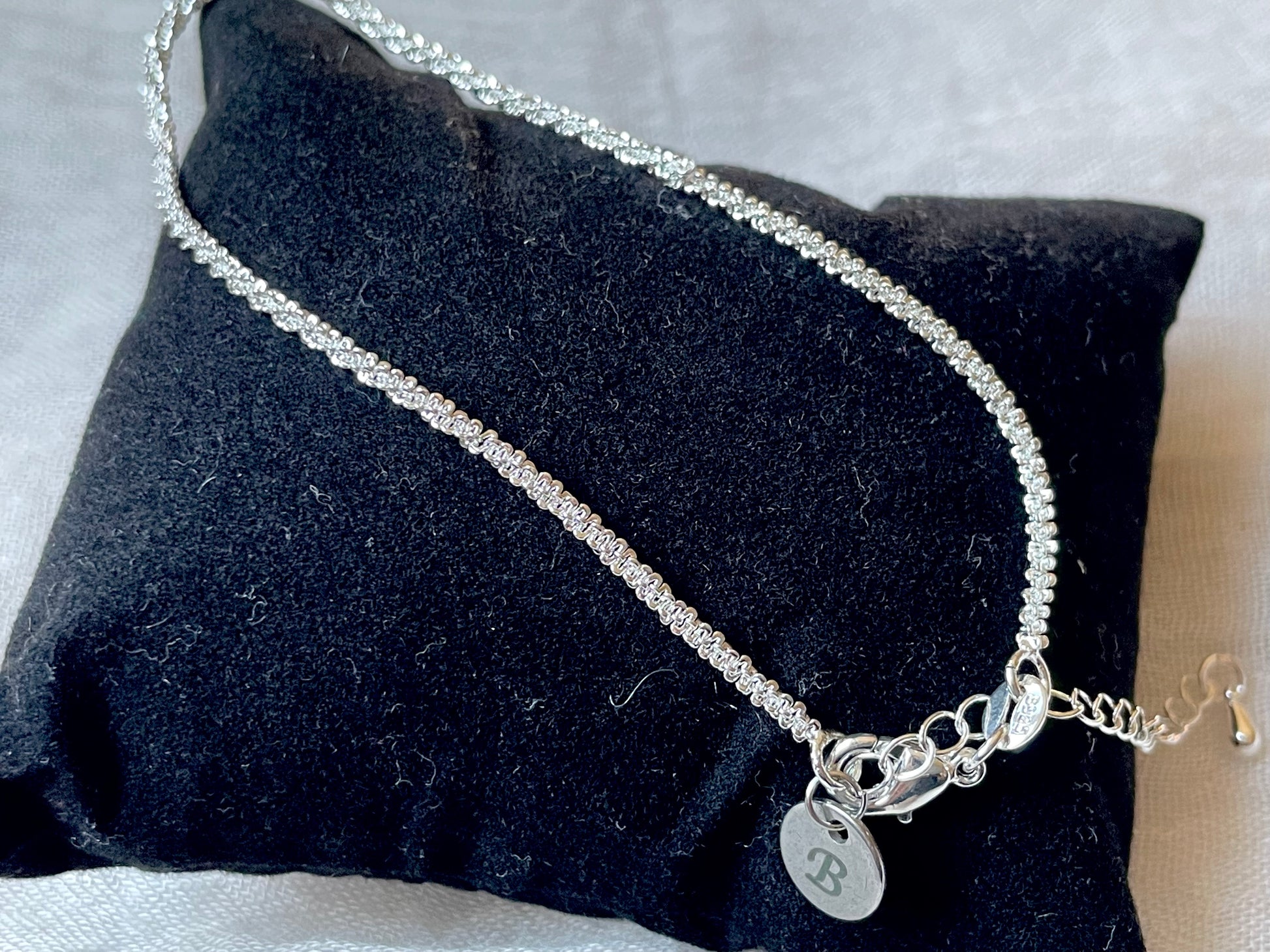 Make a statement with this dainty sparkle chain ankle bracelet. This design features a sparkling twisted chain that secures with a lobster clasp. Select the waterproof option if you want to have this anklet for everyday use.