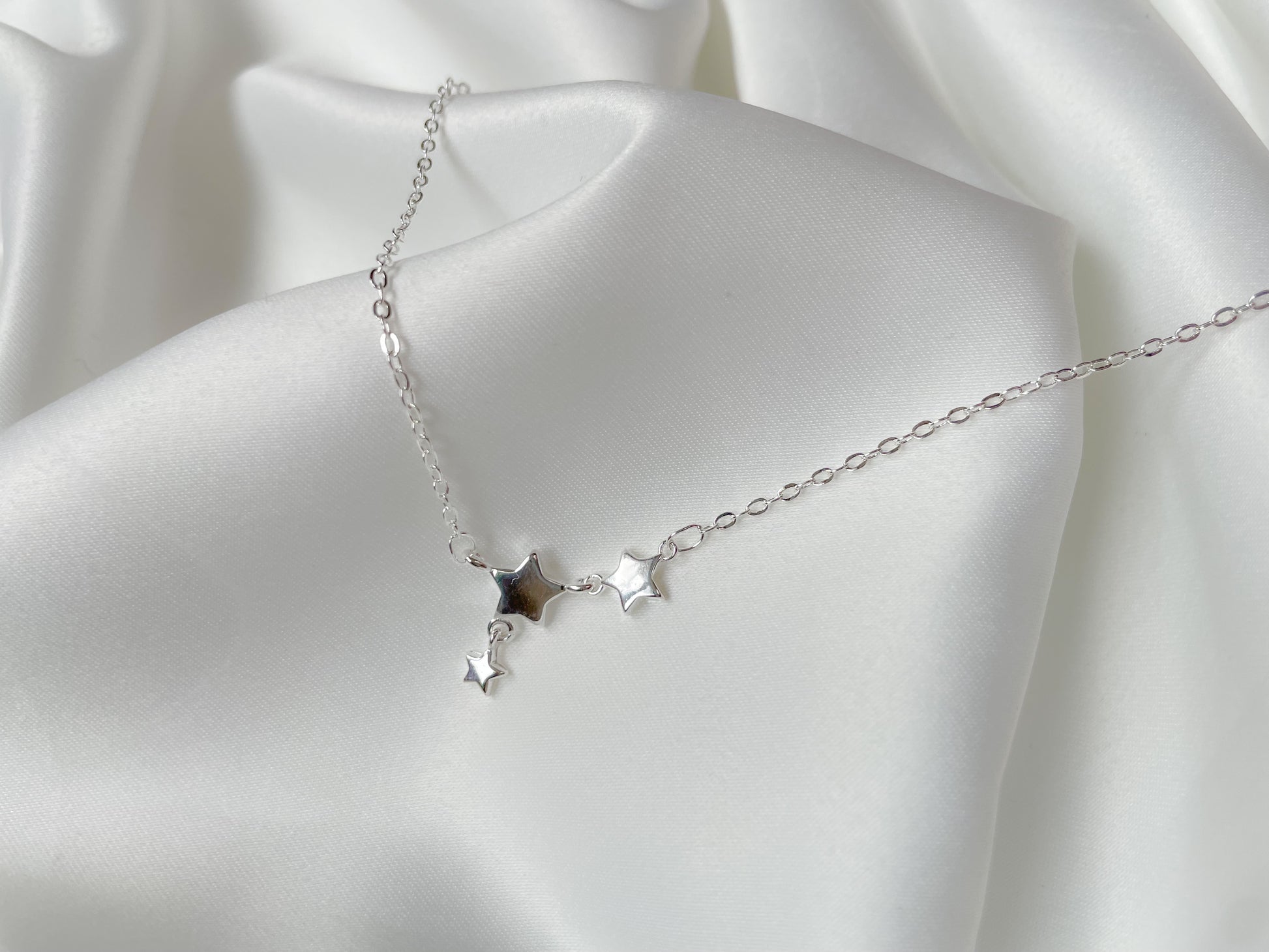 Feel like a super star with this star anklet. Dainty and elegant, this minimalist silver star ankle bracelet features three shiny stars of varying sizes connected with chain-links centered along a delicate silver cable chain and finished off with a lobster clasp. Add a bit of sparkle to your look with this beautiful summer jewelry piece!