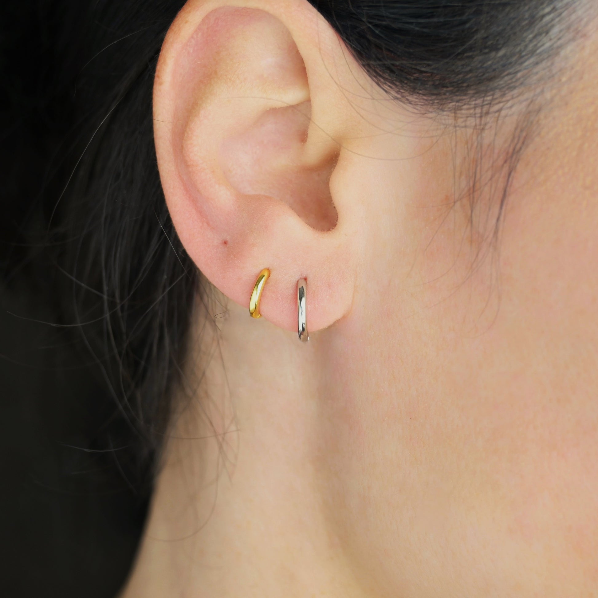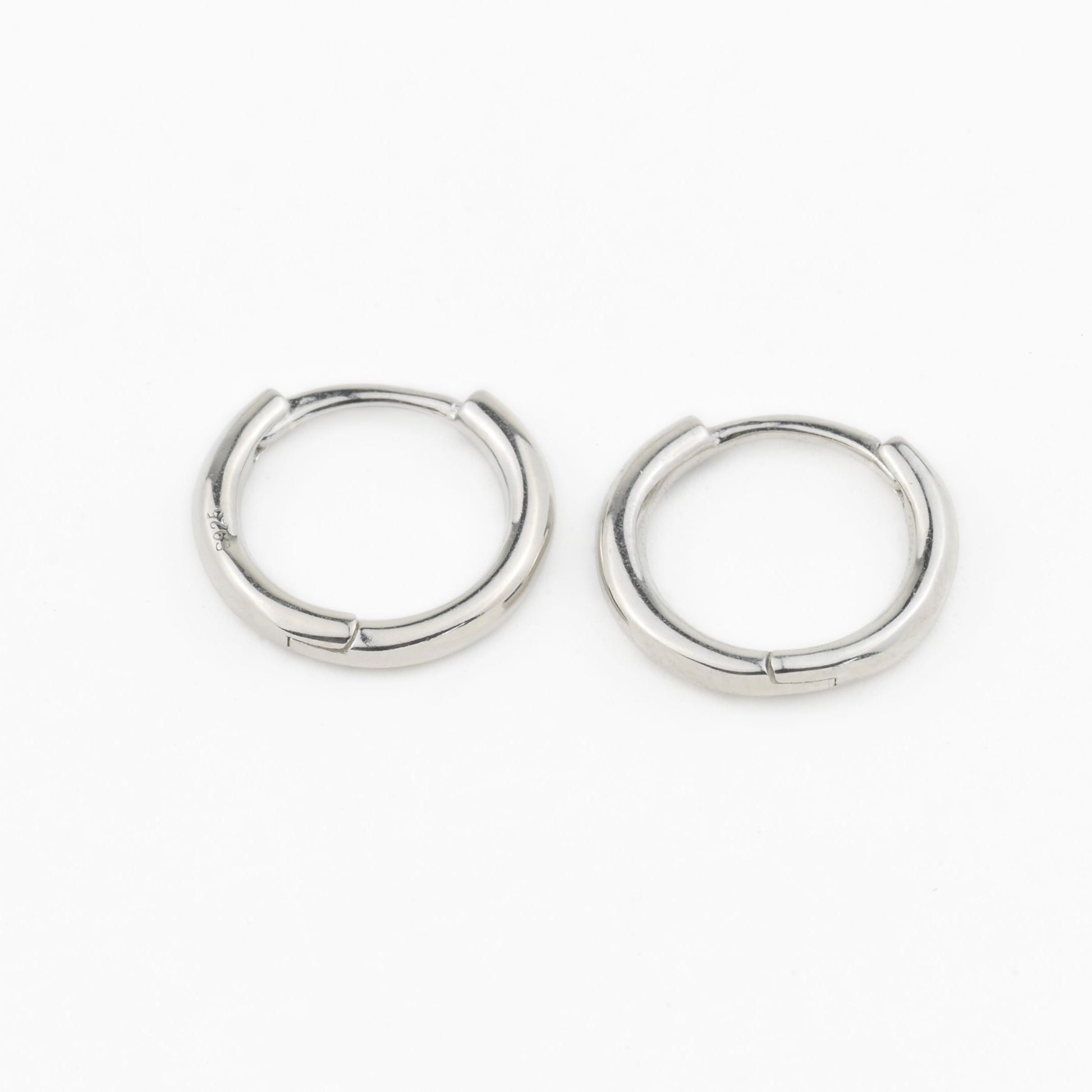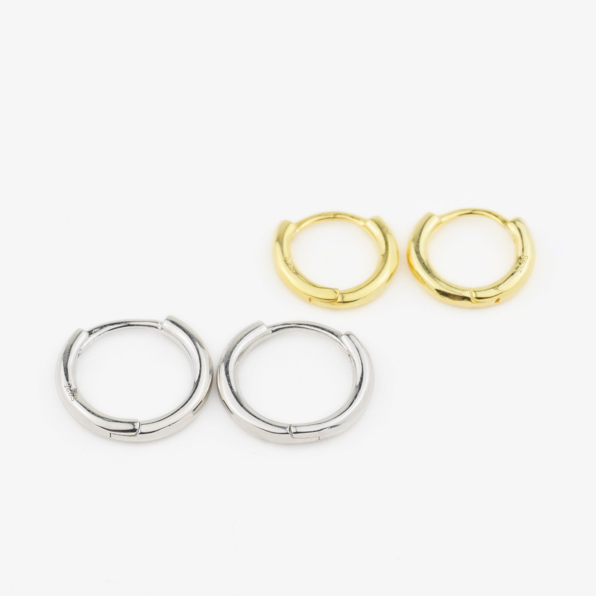 Our sterling silver huggie earrings, also available in gold, offer timeless simplicity. Crafted with a 2mm thickness, choose from 5 sizes (11mm, 13mm, 15mm, 17mm and 19mm) for effortless everyday style.