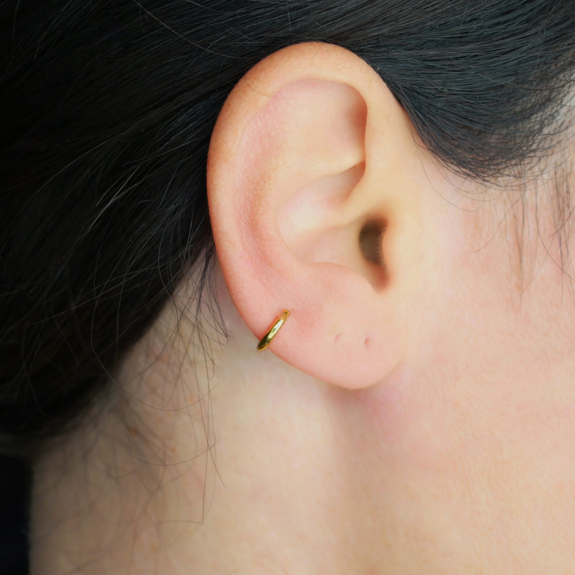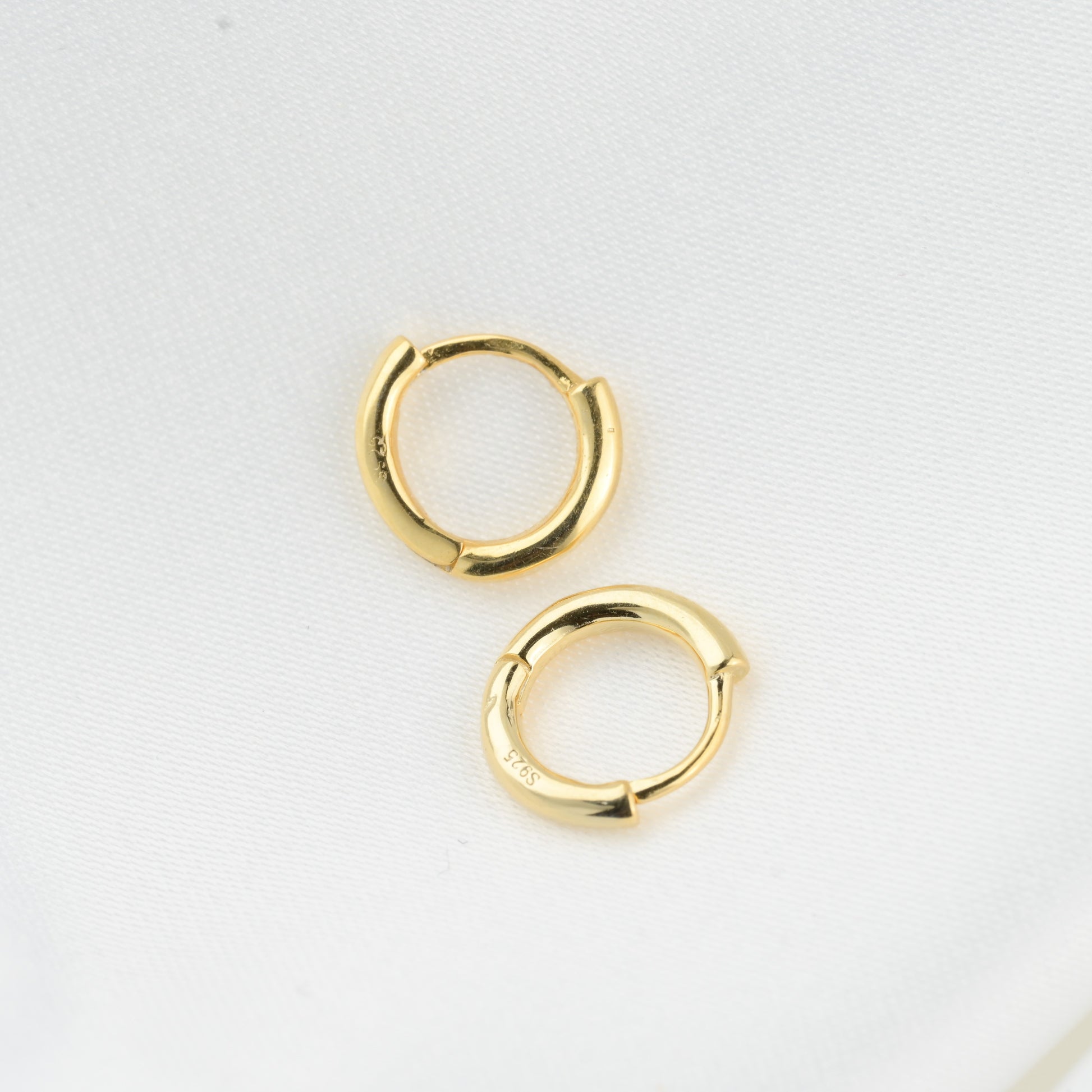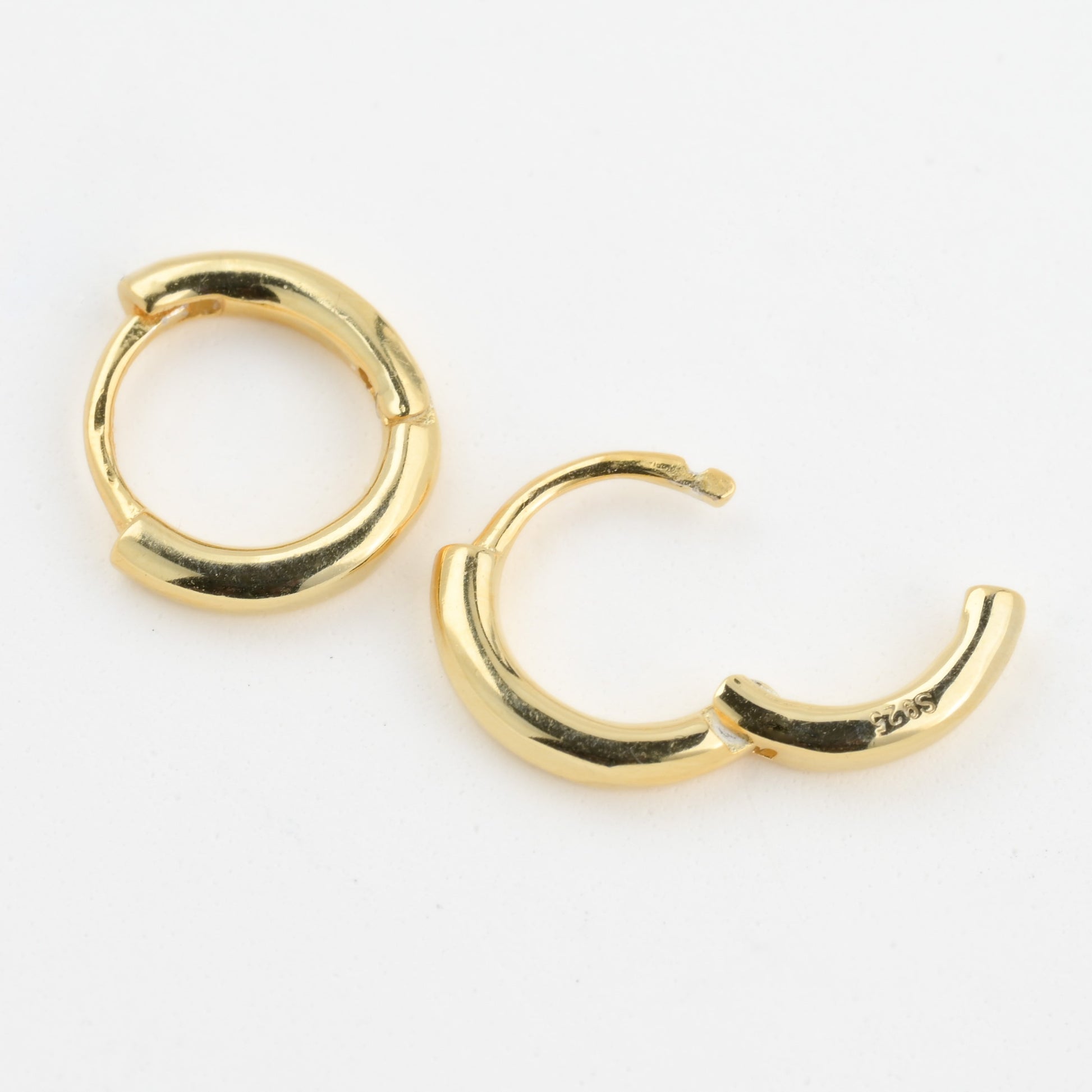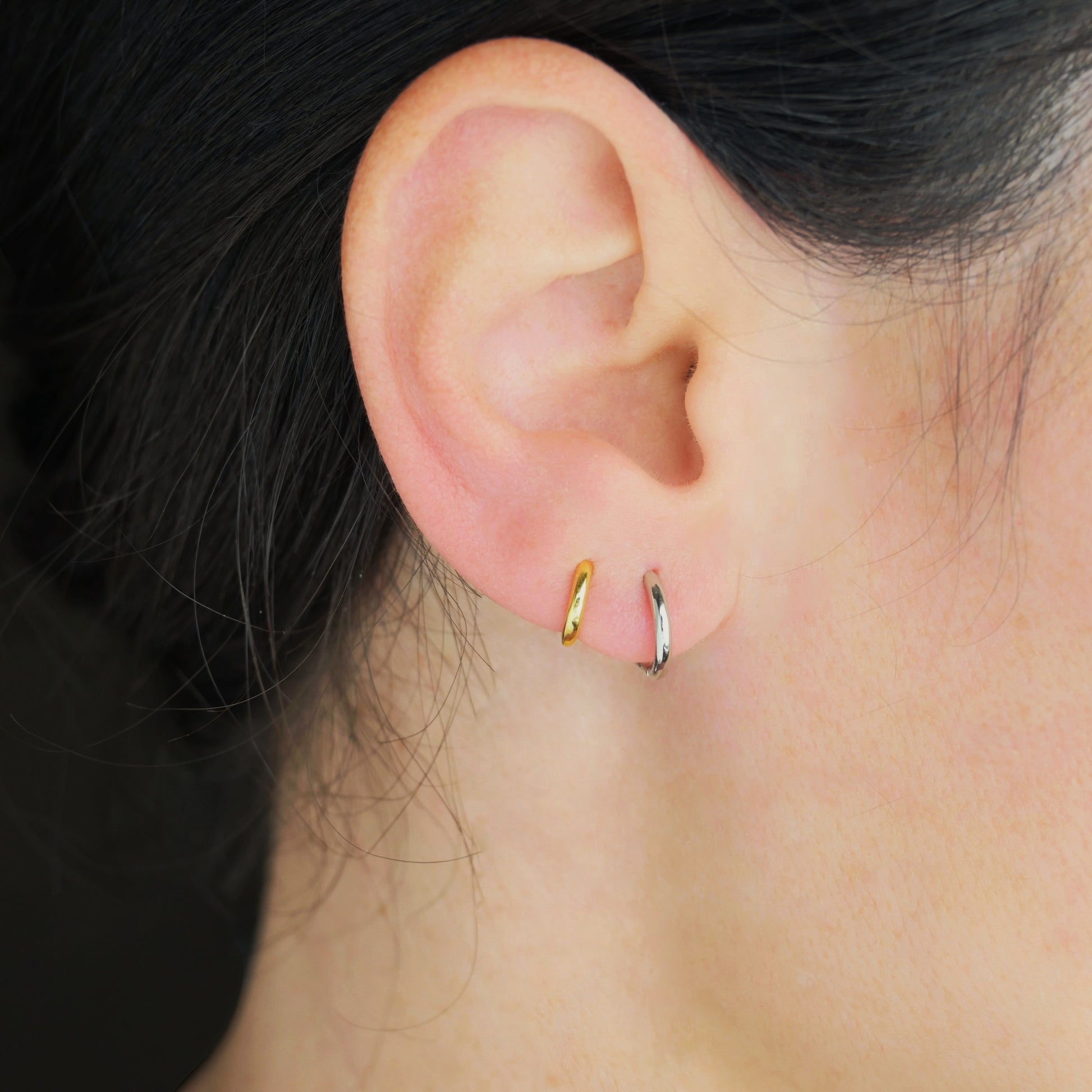 Our sterling silver huggie earrings, also available in gold, offer timeless simplicity. Crafted with a 2mm thickness, choose from 5 sizes (11mm, 13mm, 15mm, 17mm and 19mm) for effortless everyday style.