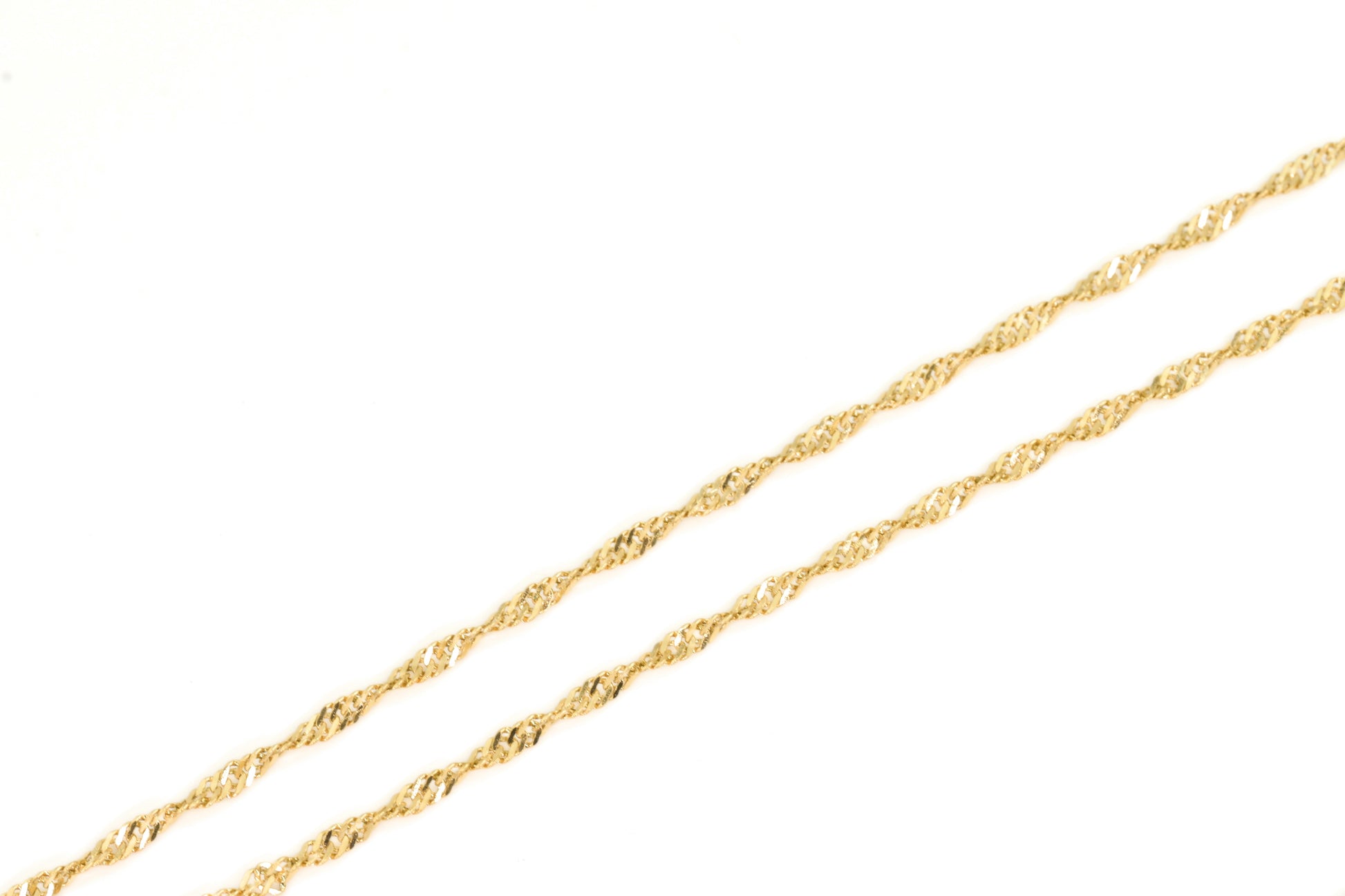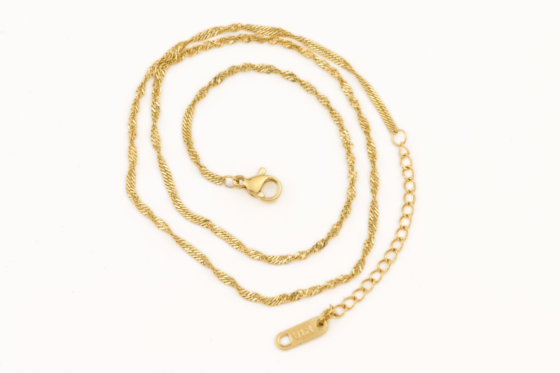 Discover timeless charm with our Dainty Singapore Chain Necklace. Delicately designed at 16 inches with a 2.25-inch extender, it effortlessly elevates your style. This versatile piece adds a touch of elegance, perfect for any occasion. Explore enduring beauty with our exquisite necklace.