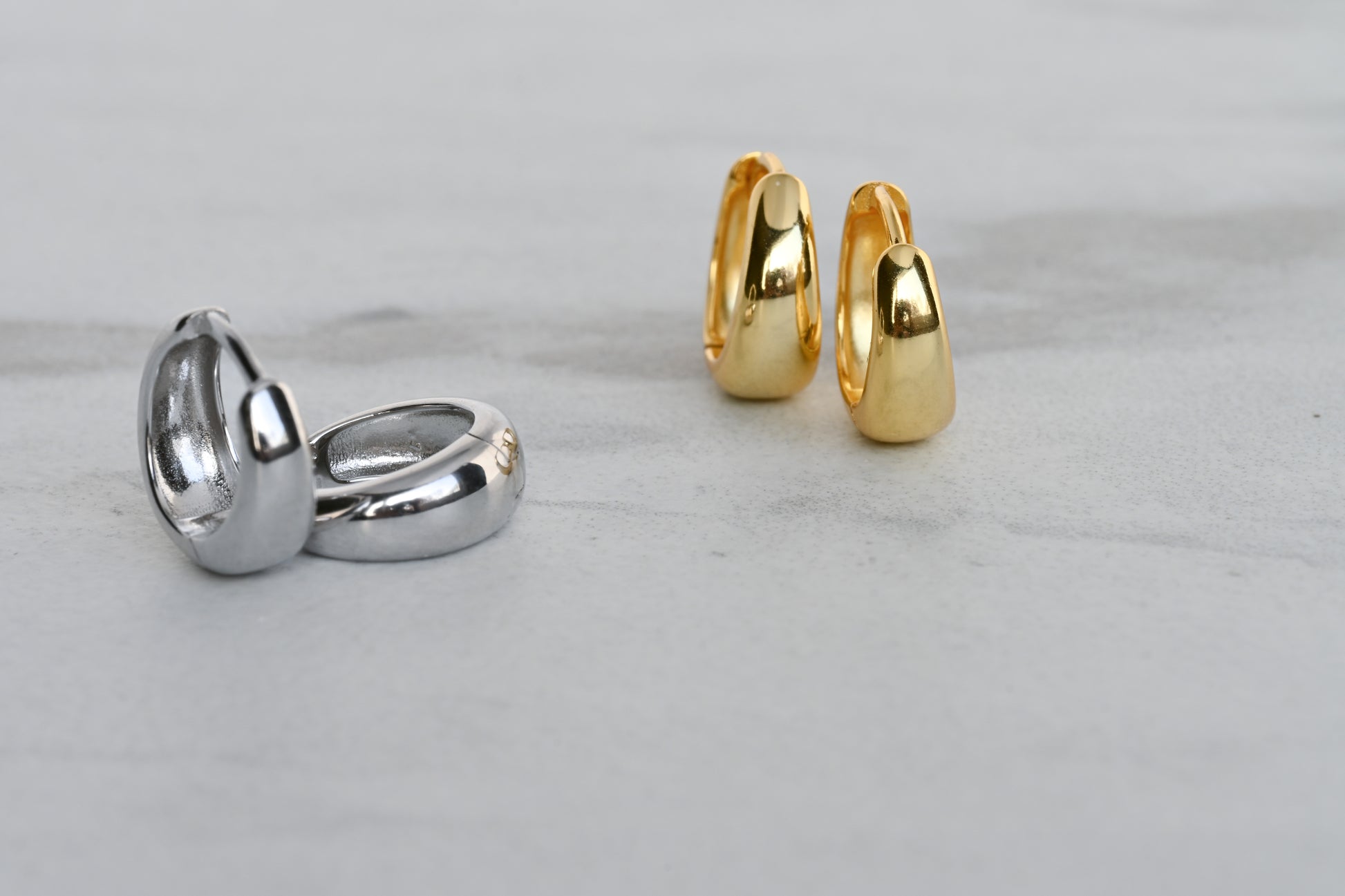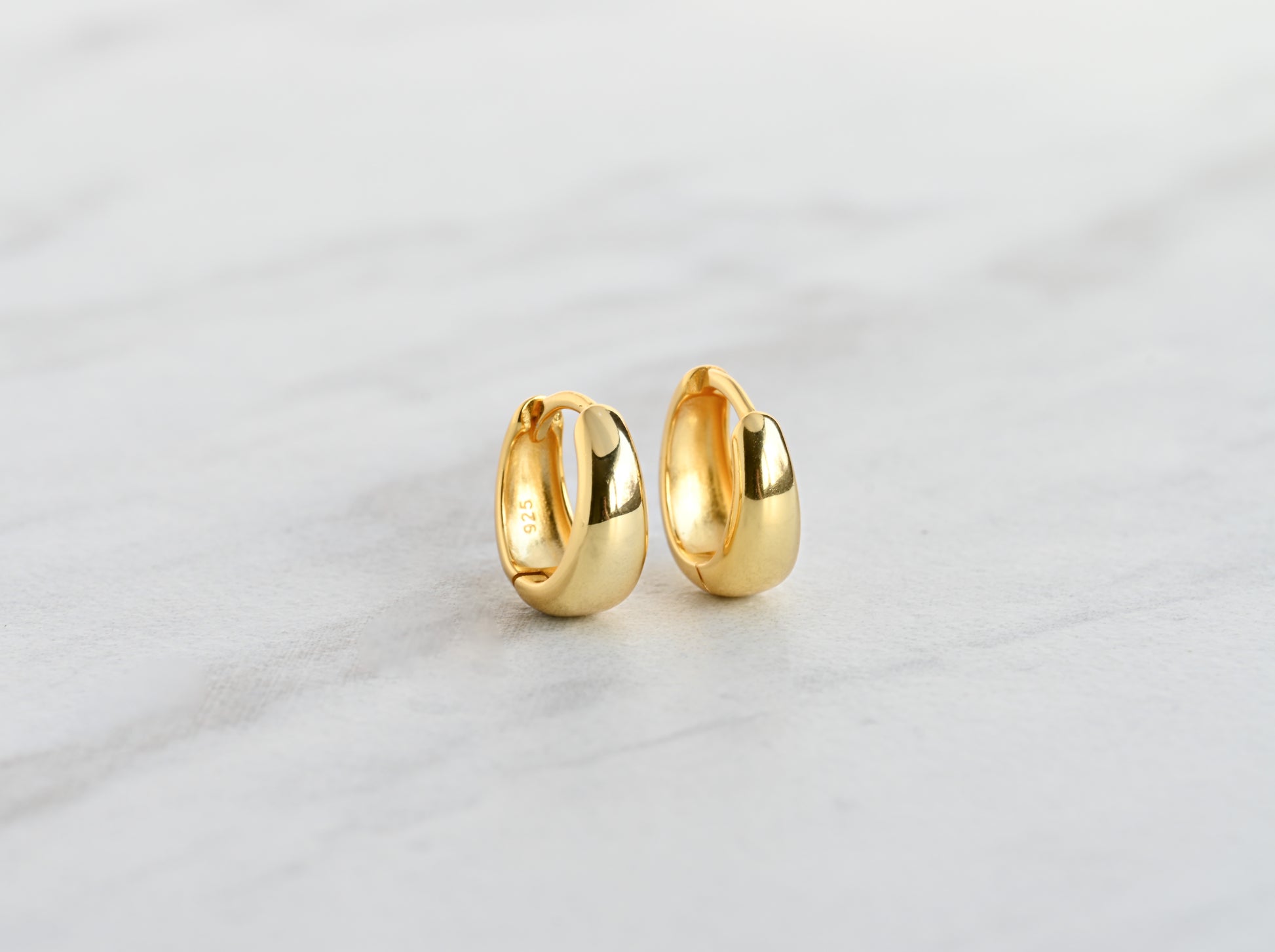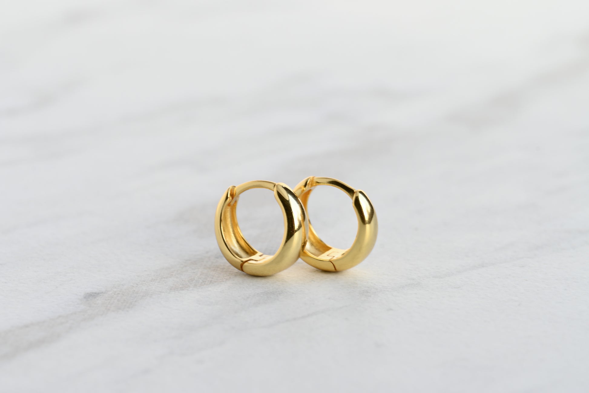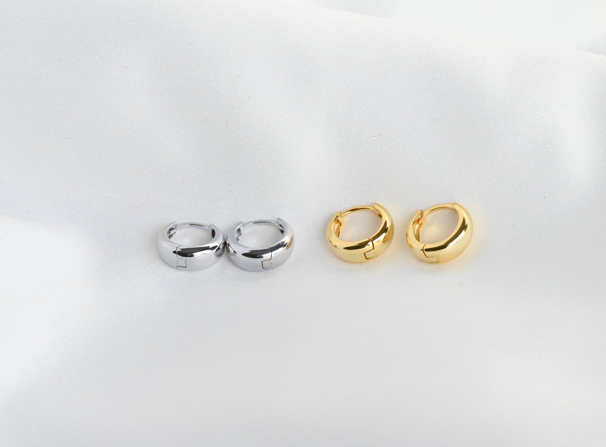 These petite huggie hoops are perfect for you if you are looking for a jewelry piece that is so basic and subtle yet will greatly elevate your outfit. Crafted in sterling silver and 18k Gold vermeil, these chunky small dome hoops come in one size (8 mm) and offer a subtle sparkle.