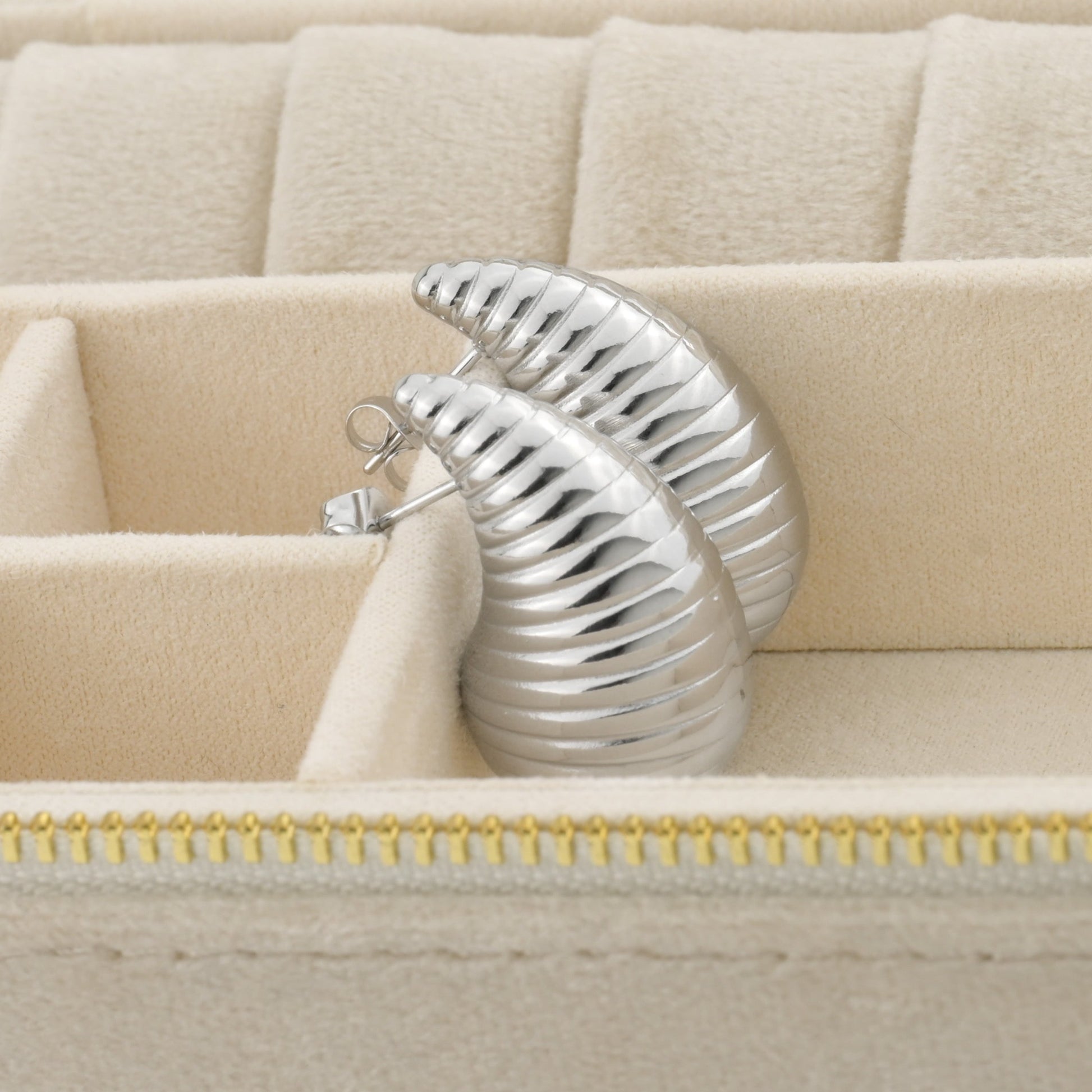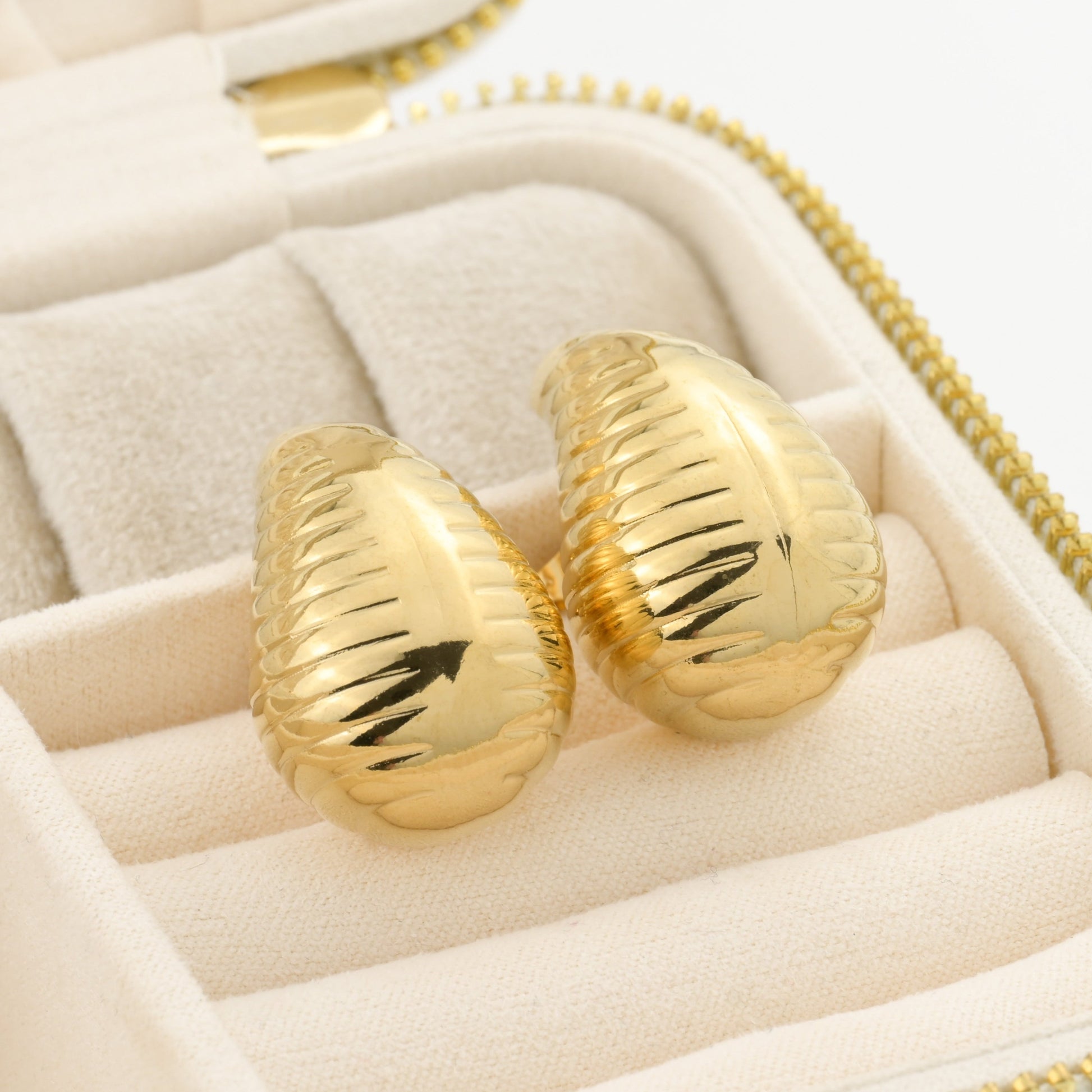 Elevate your style with our chunky hollow drop earrings in tarnish-resistant stainless steel. Available in 18k gold and silver in polished plain and textured, they're lightweight for all-day comfort. Embrace timeless elegance with a modern twist.
