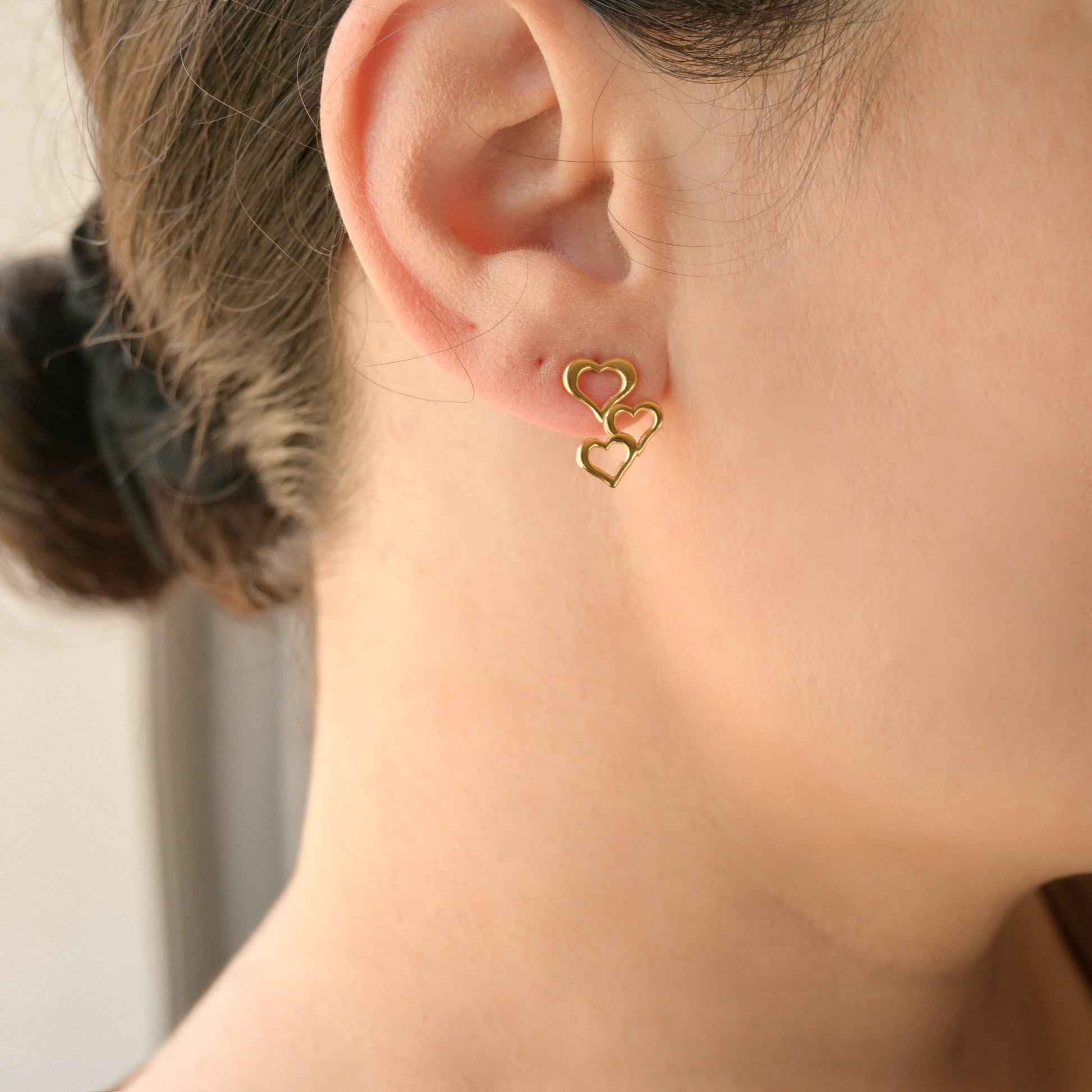 Tripe Heart Drop Earrings offer dainty style. These heart earrings, available in gold and silver, add a playful touch to any outfit.